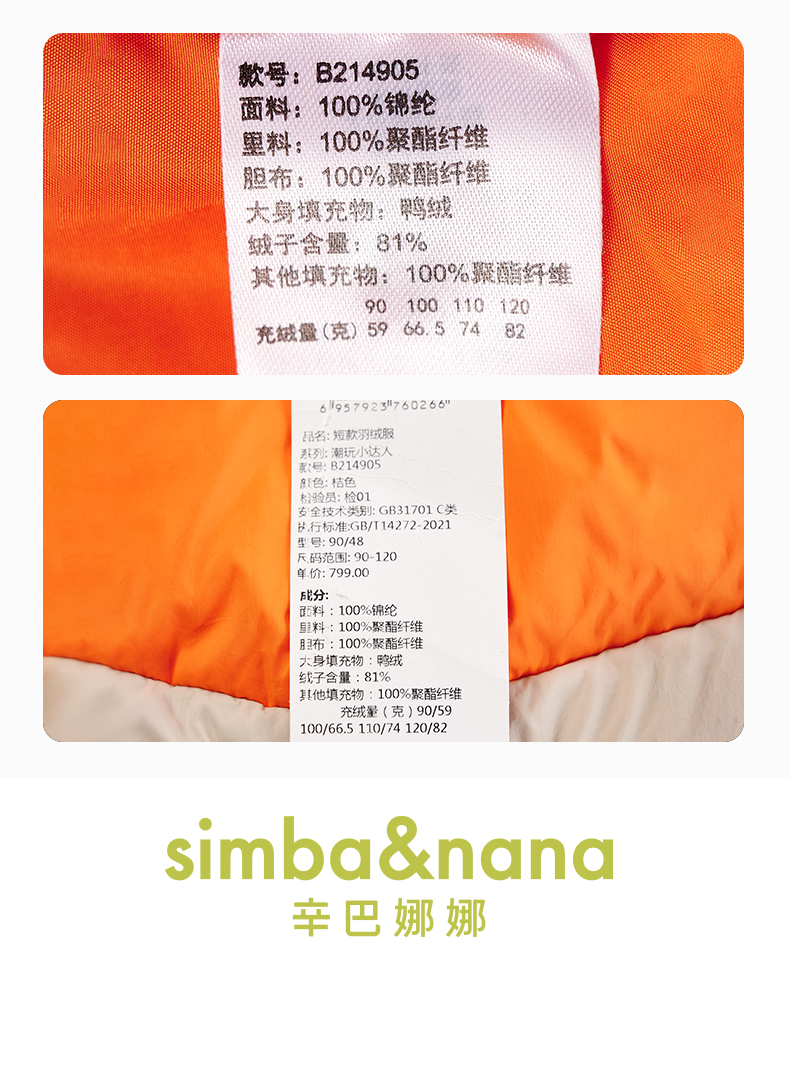 【辛巴娜娜】simbanana男童短款羽绒服冬季新款儿童防风保暖外套