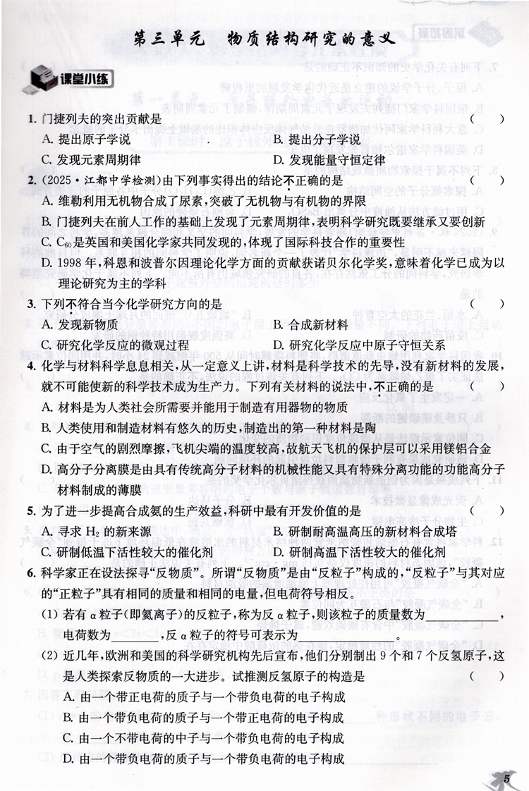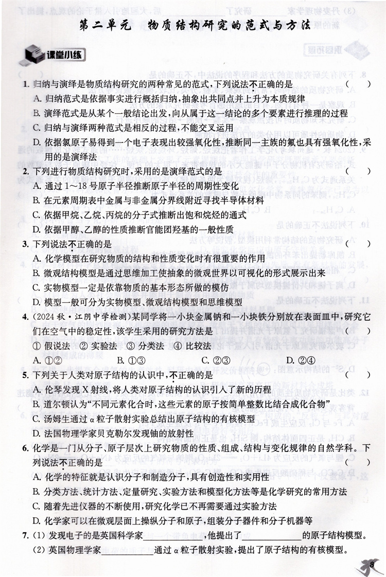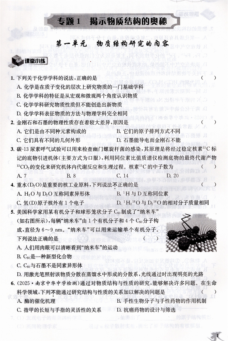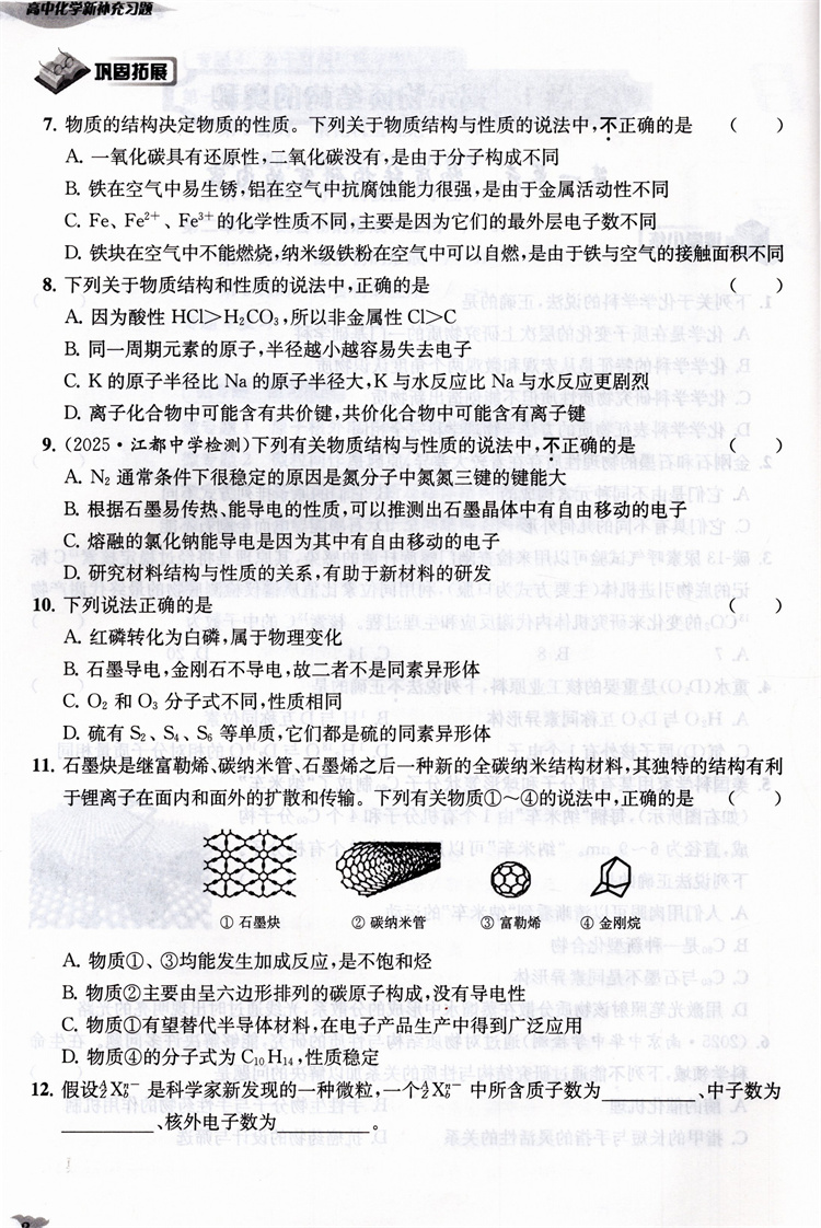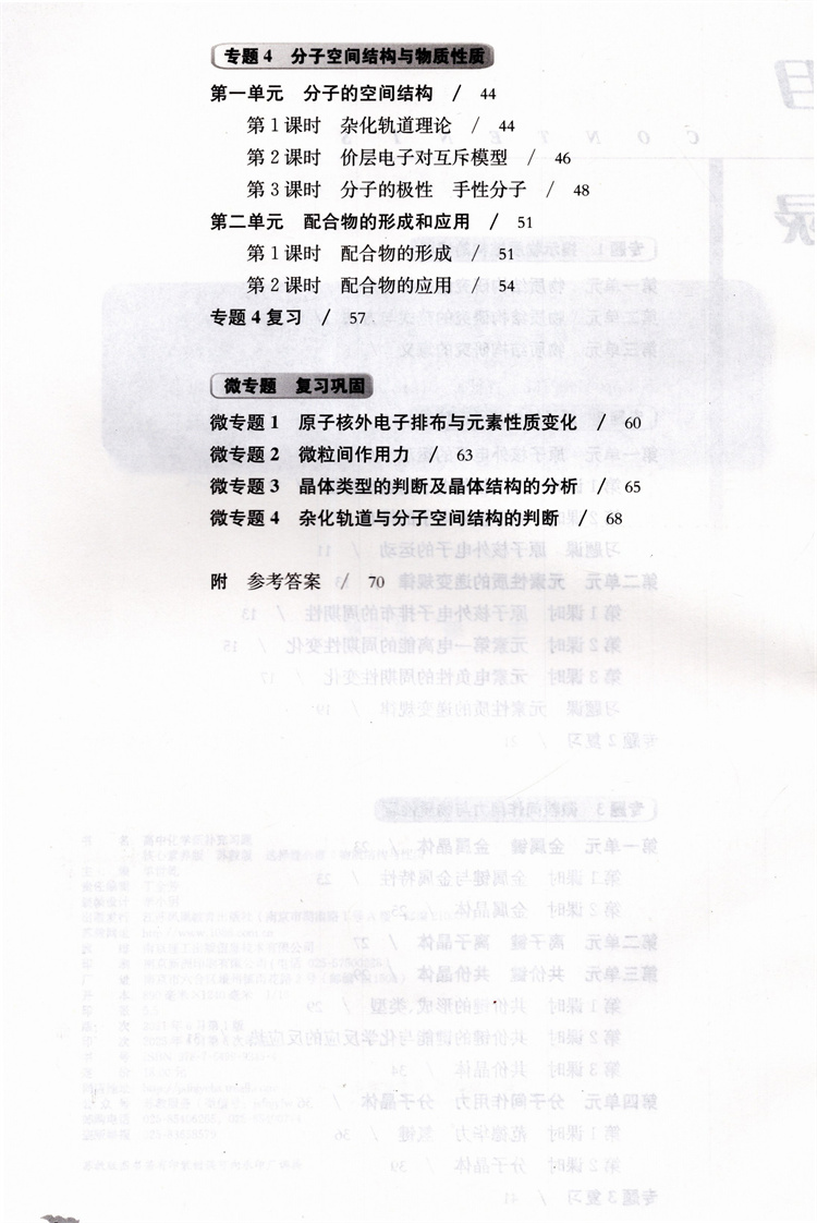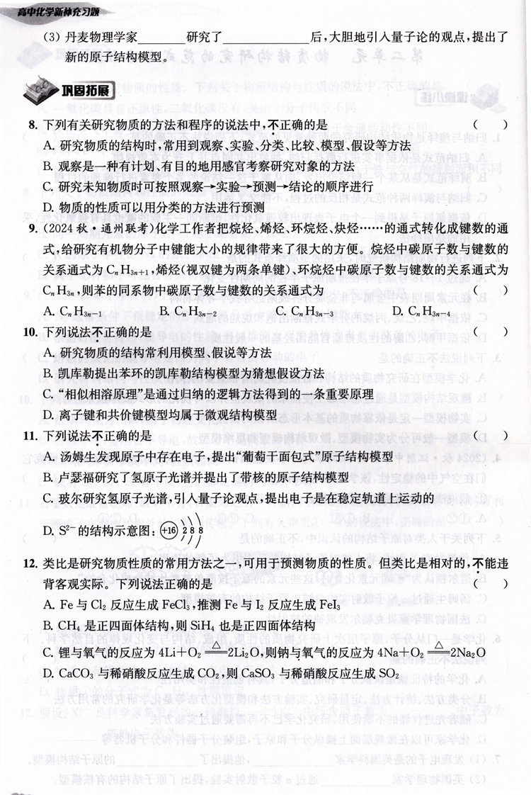 2025年 高中化学新补充习题 苏教版 含参考答案 选择性必修2物质结构与性质 高中教辅 核心素养版 江苏凤凰教育出版社