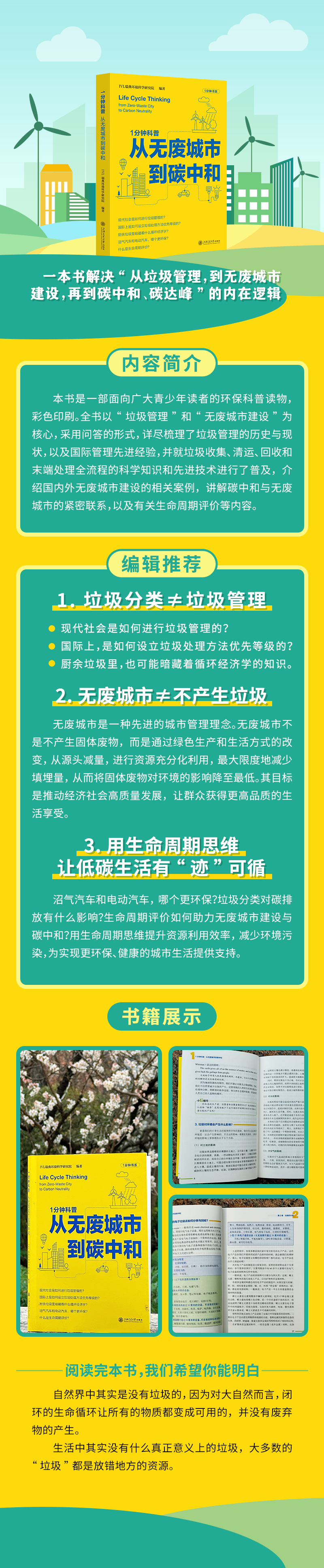 本书是一部面向广大青少年读者的环境保护科普读物,彩色印刷。全书以“垃圾管理”和“无废城市建设”为核心,采用问答的形式,详尽梳理了垃圾管理的历史与现状,以及国际管理先进经验,并就垃圾收集、清运、回收和末端处理全流程的科学知识和先进技术进行了普及,介绍国内外无废城市建设的相关案例,讲解碳中和与无废城市的紧密联系,以及有关生命周期评价等内容。