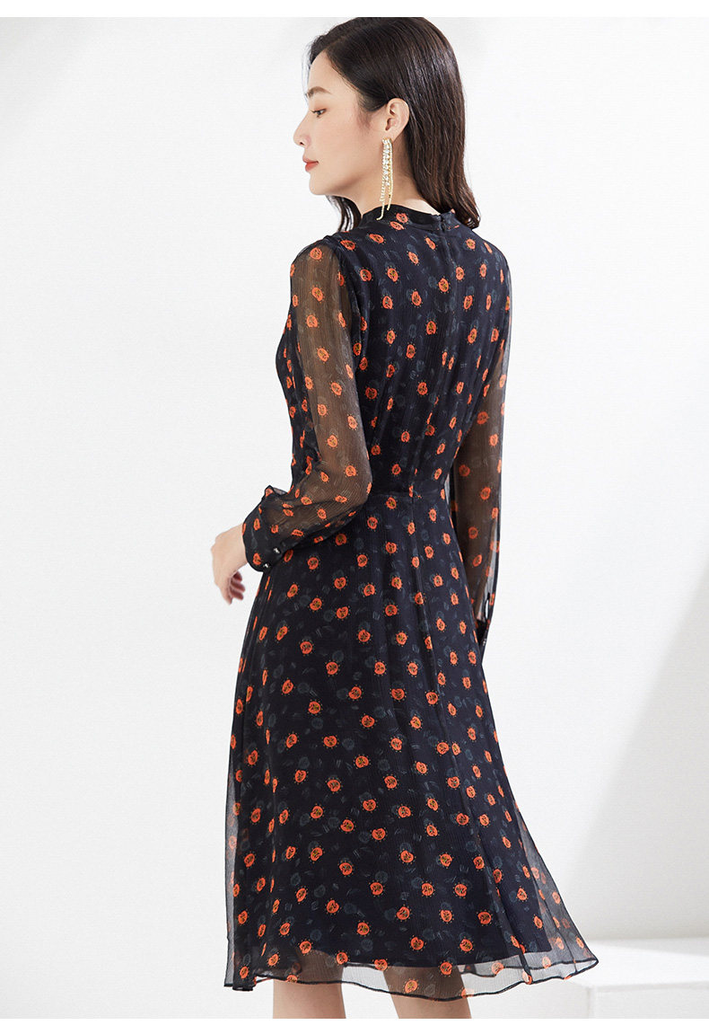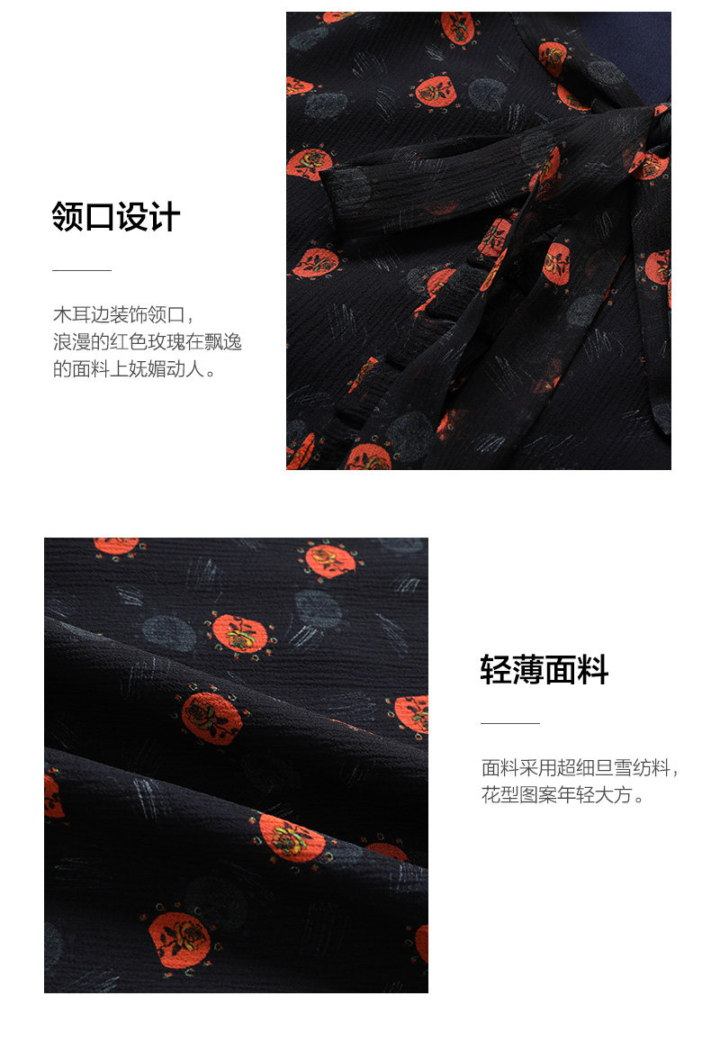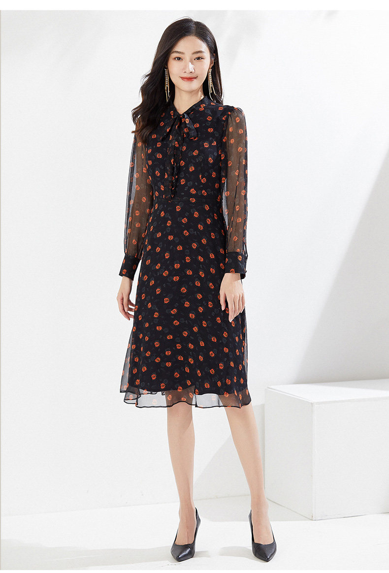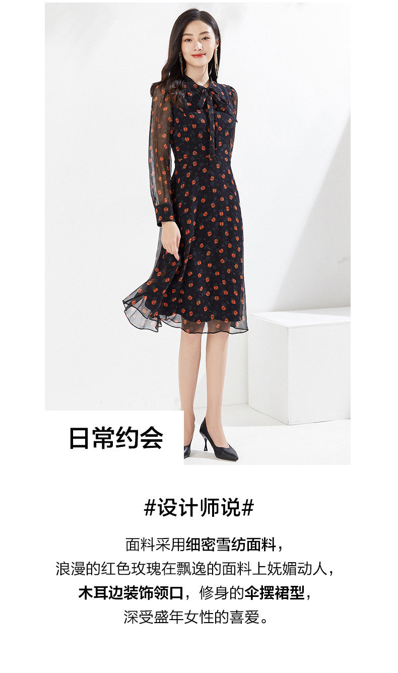 乔万尼春装新款连衣裙顺滑雪纺收腰中长裙EI3E122