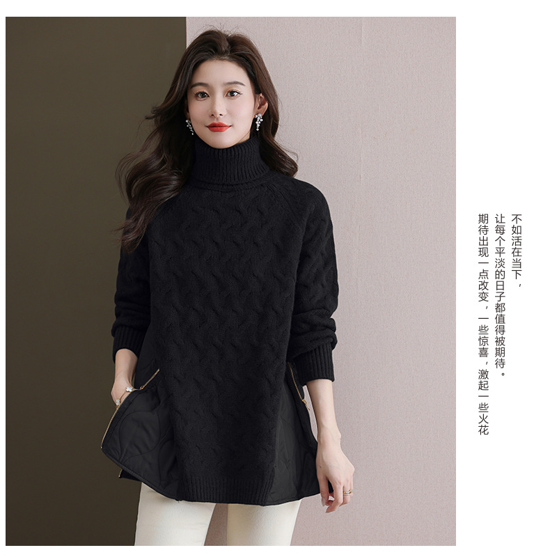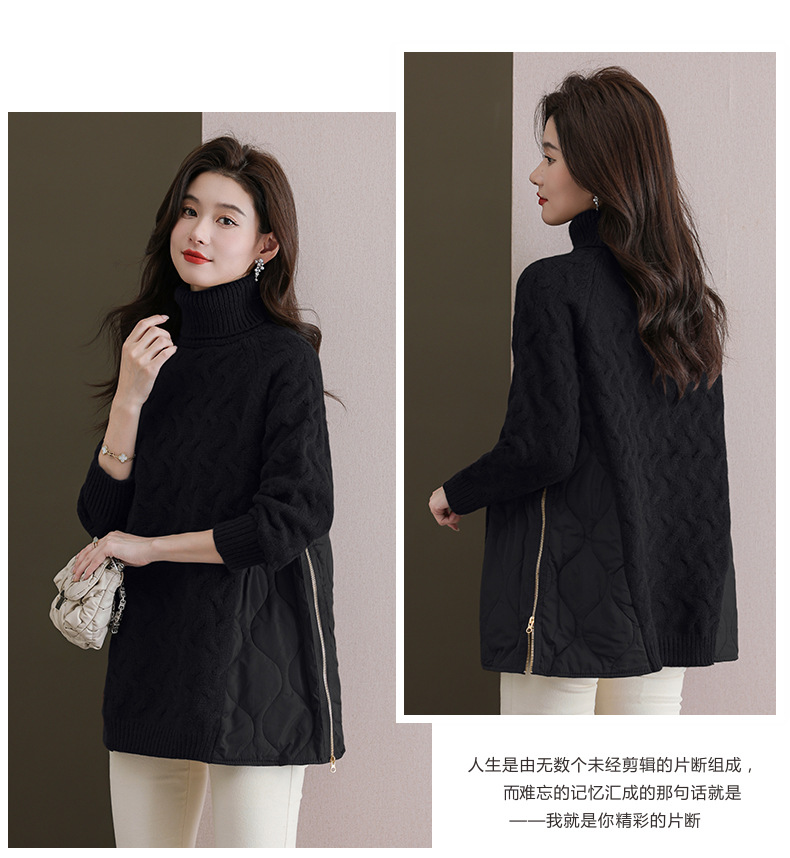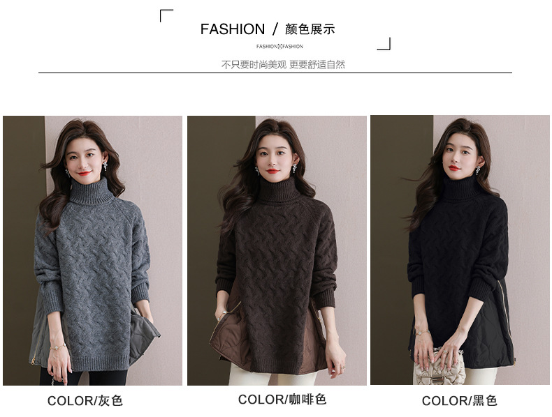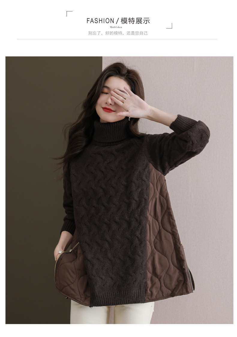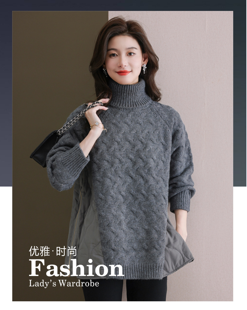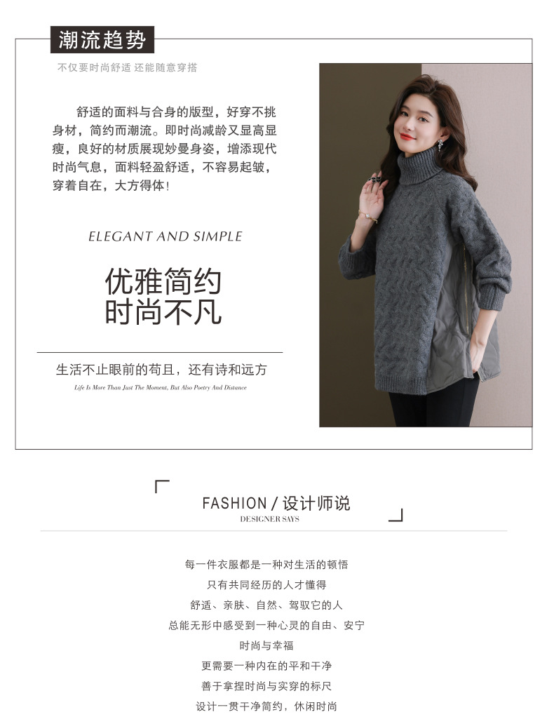 中长款棉服拼接高领毛衣,女秋冬慵懒风宽松外穿新款加厚打底衫CC-11-68122