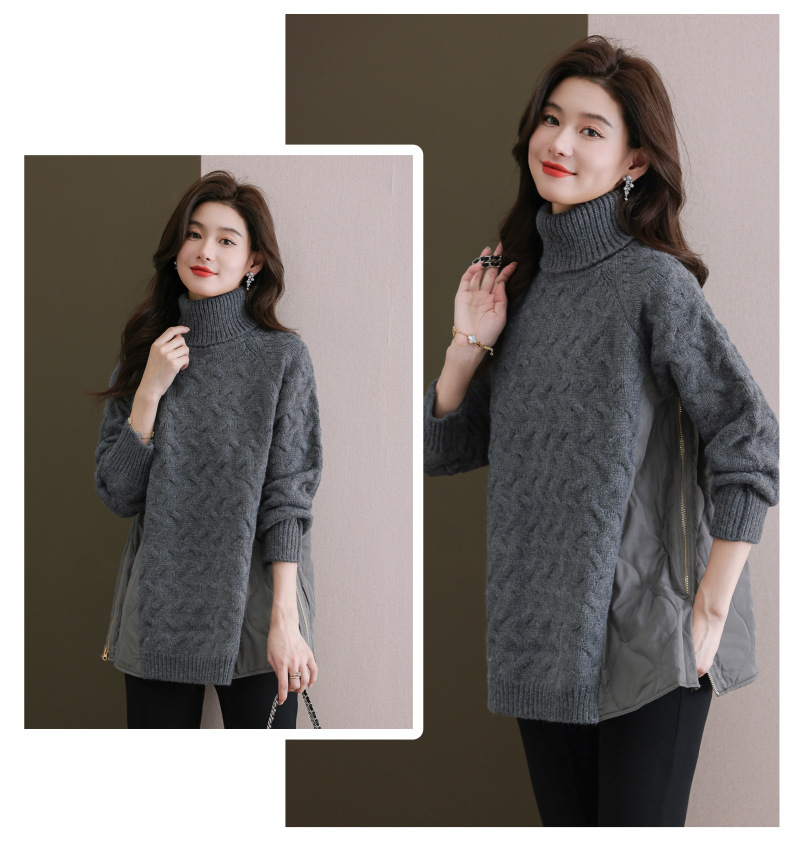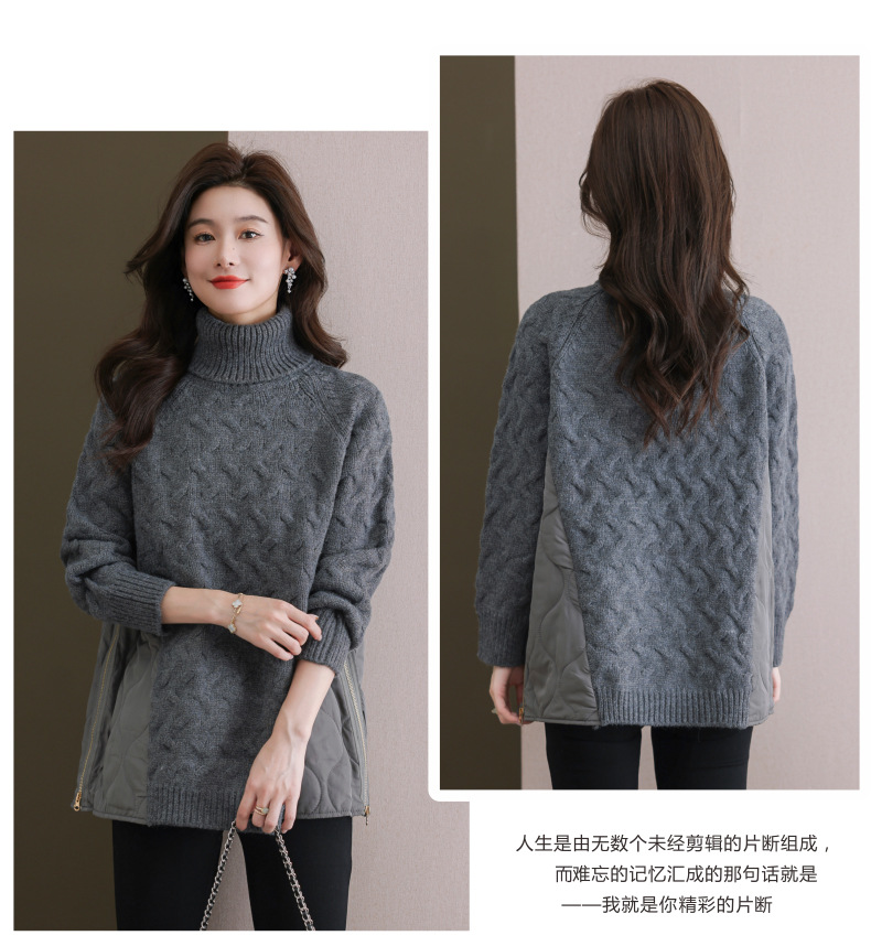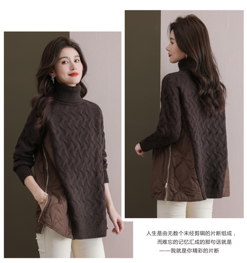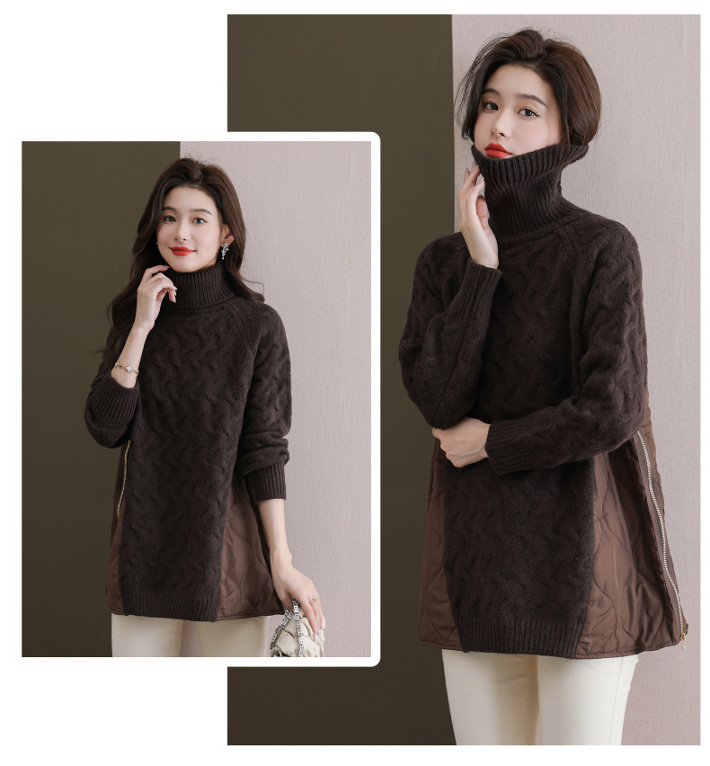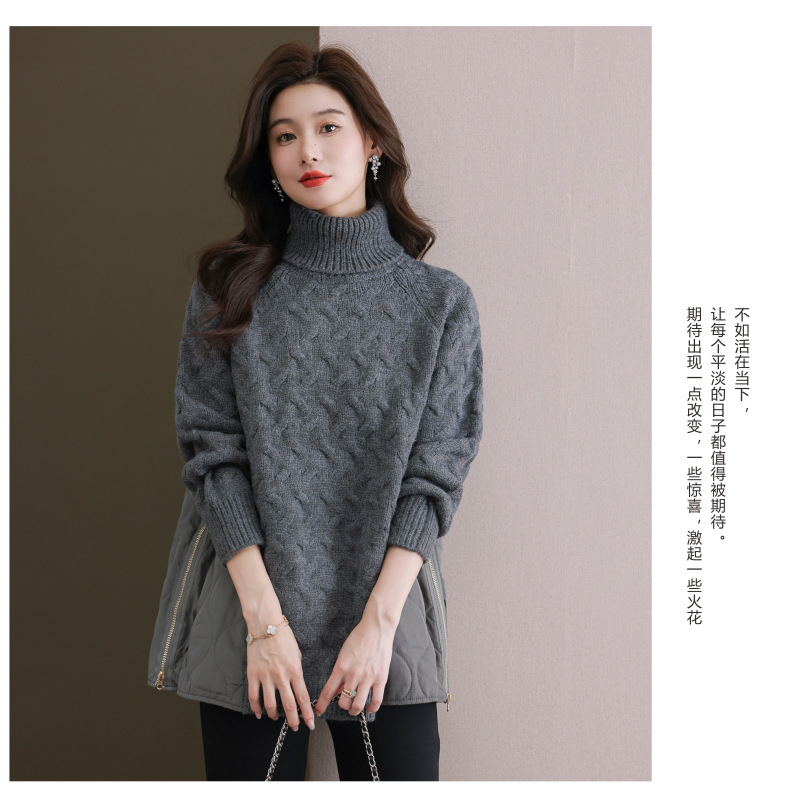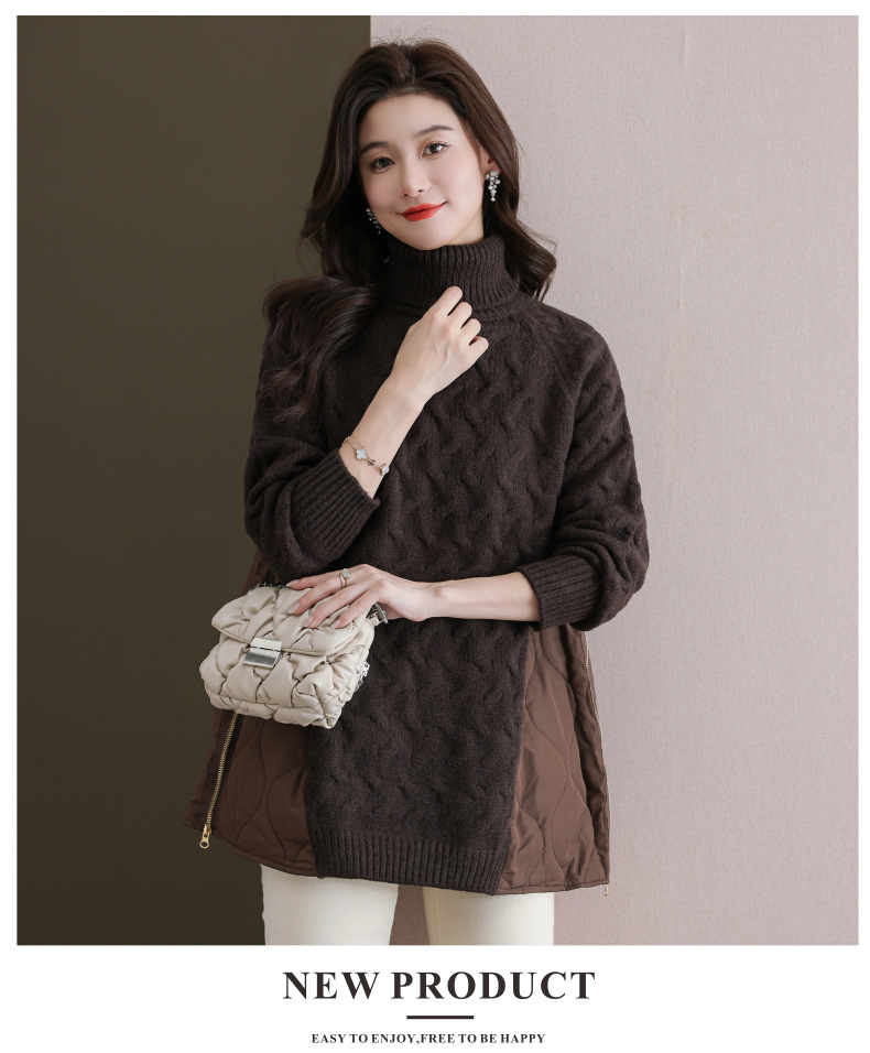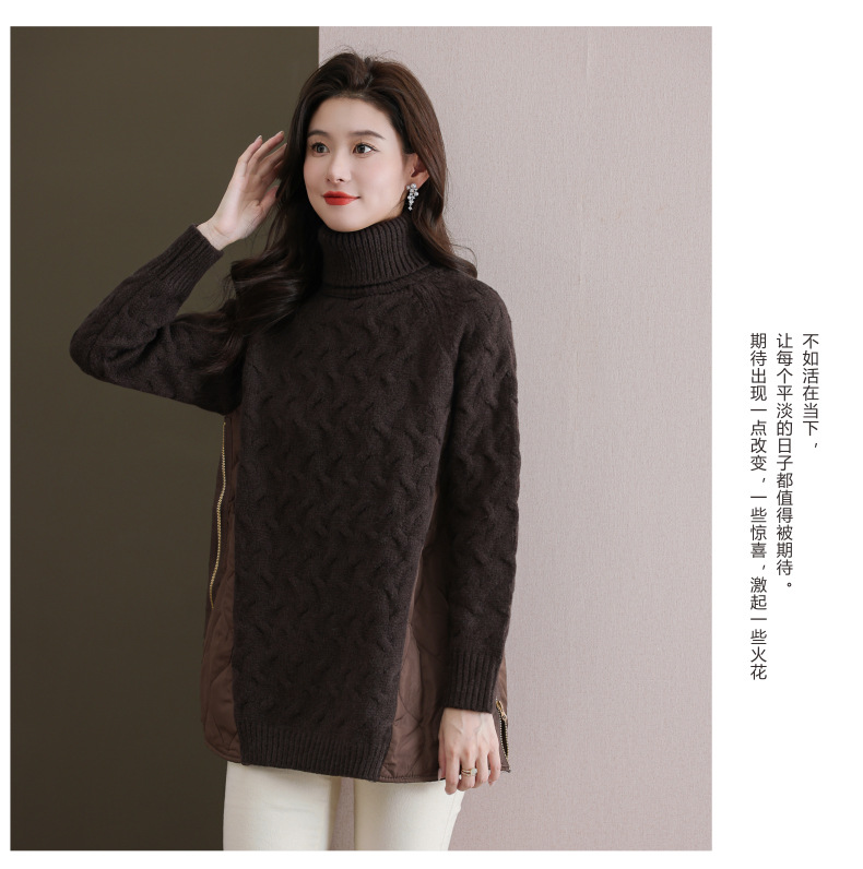 中长款棉服拼接高领毛衣,女秋冬慵懒风宽松外穿新款加厚打底衫CC-11-68122