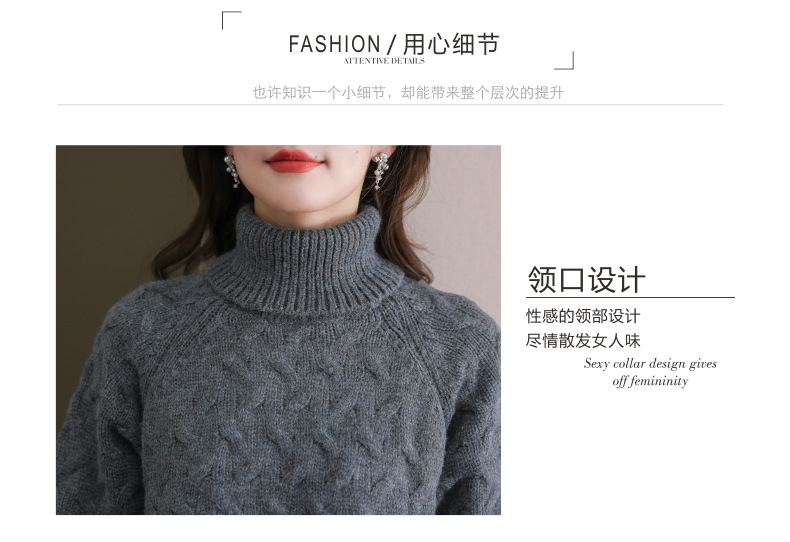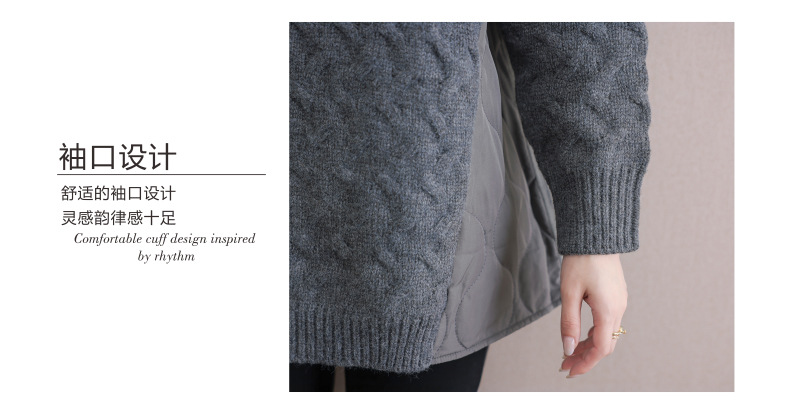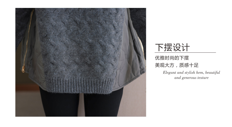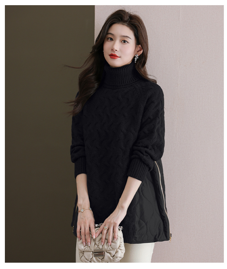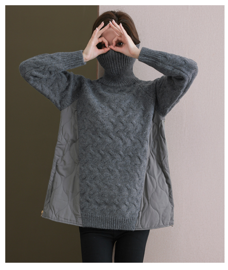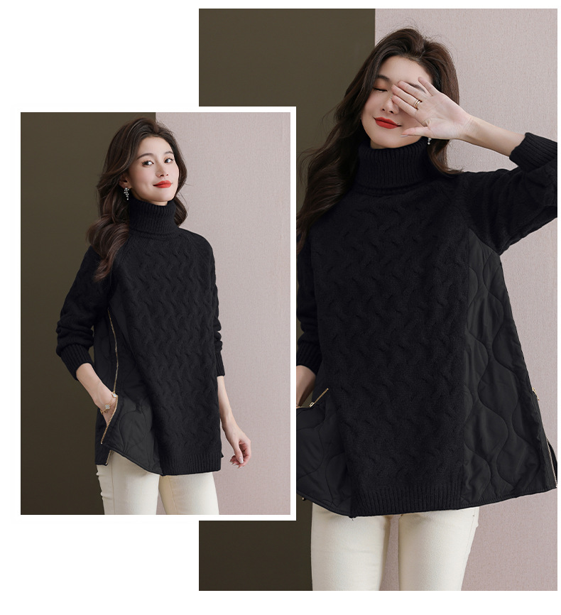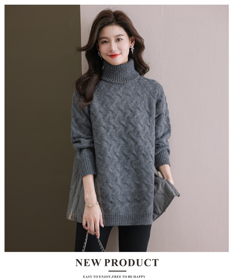 中长款棉服拼接高领毛衣,女秋冬慵懒风宽松外穿新款加厚打底衫CC-11-68122