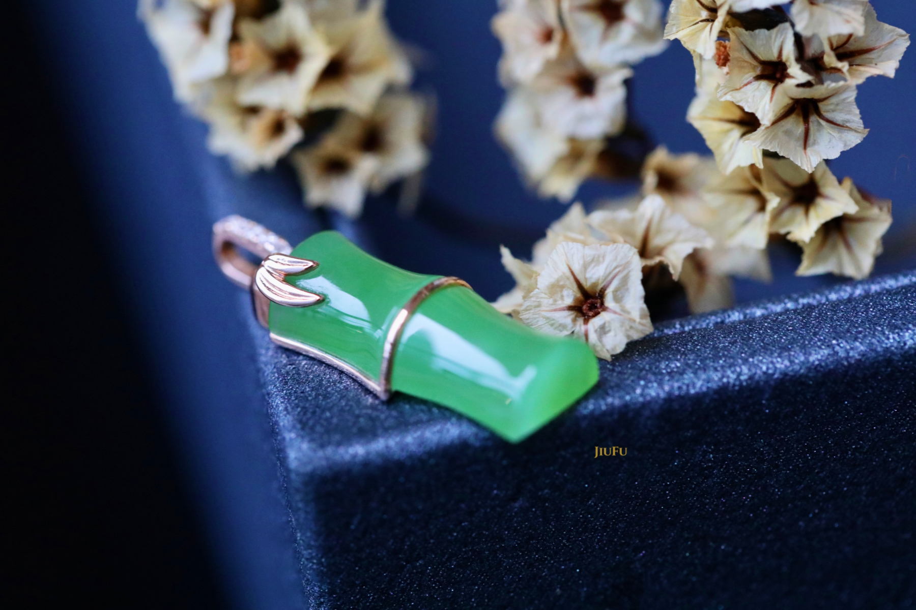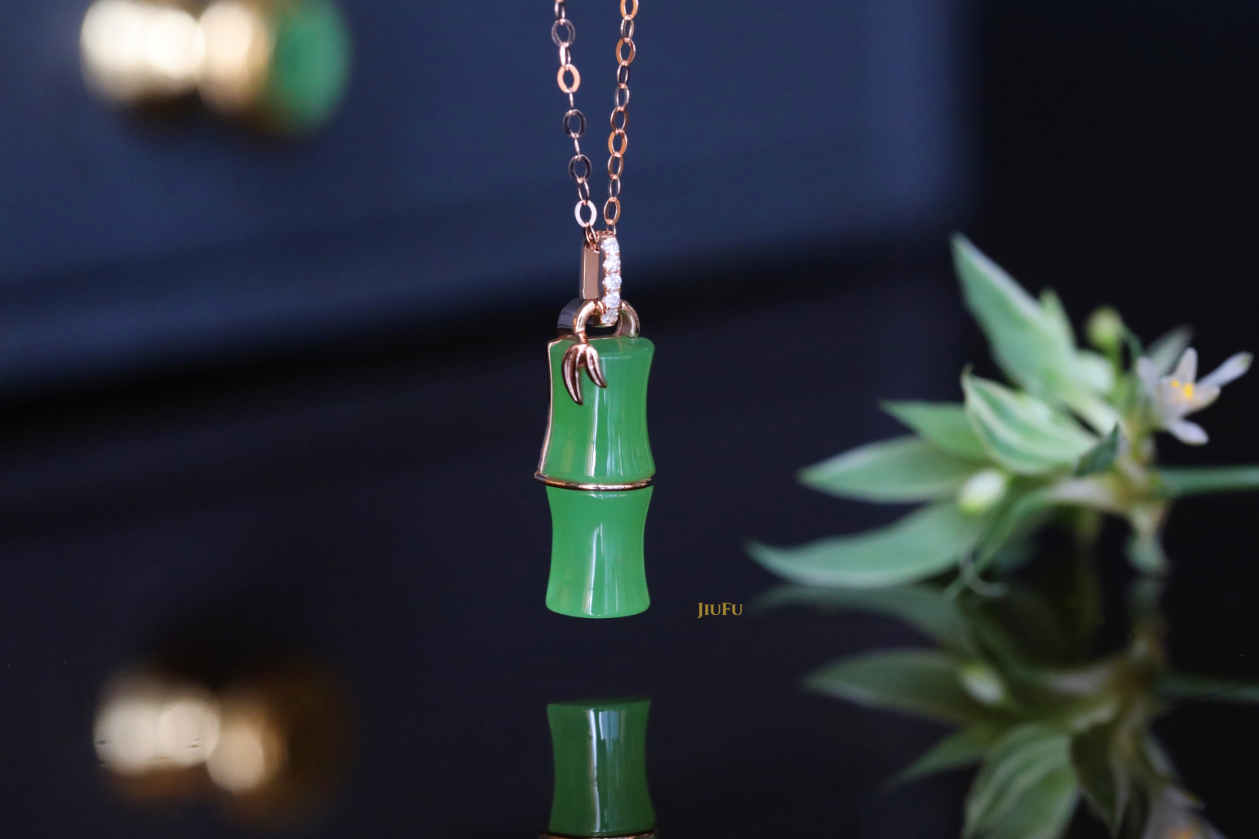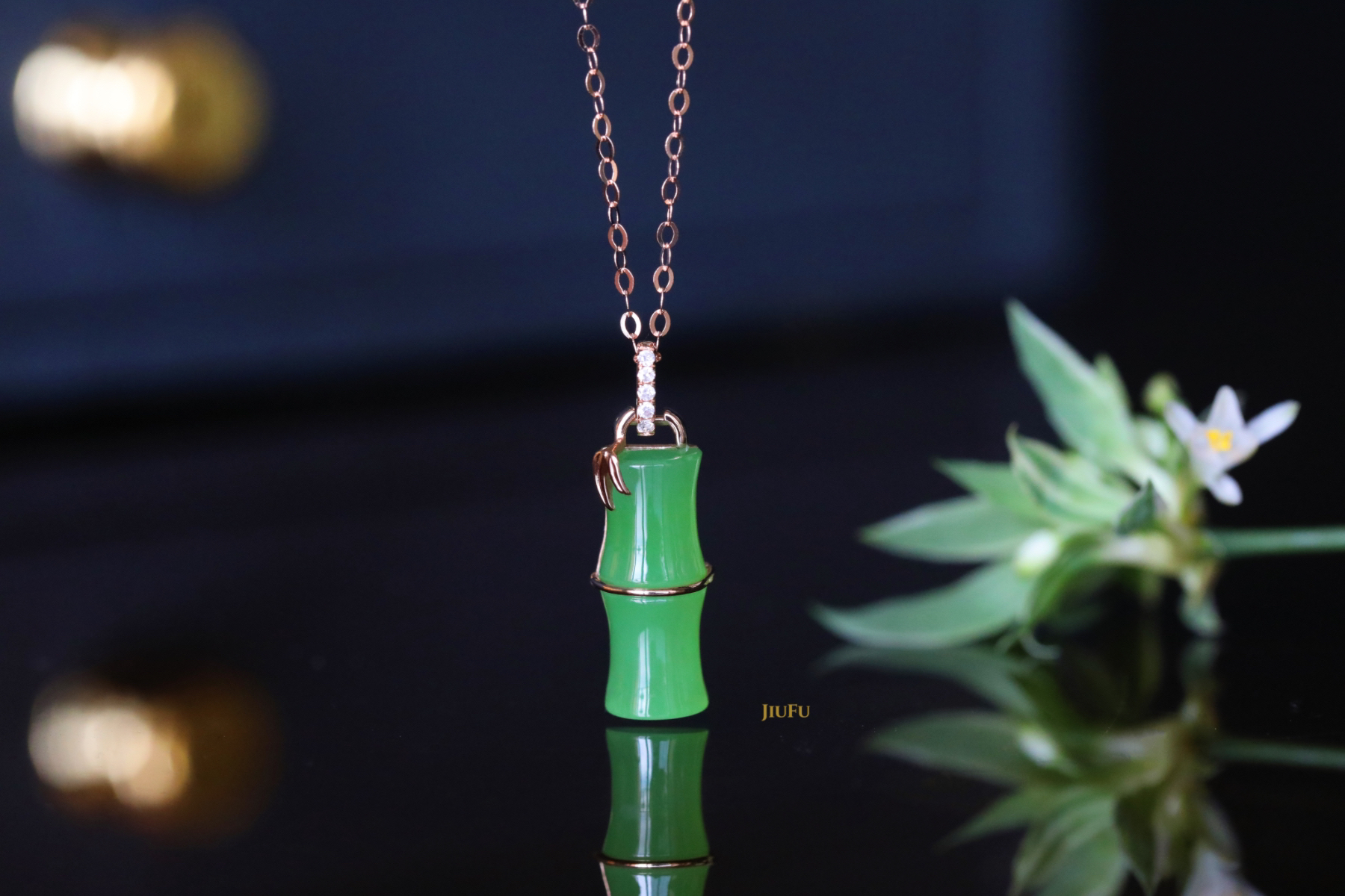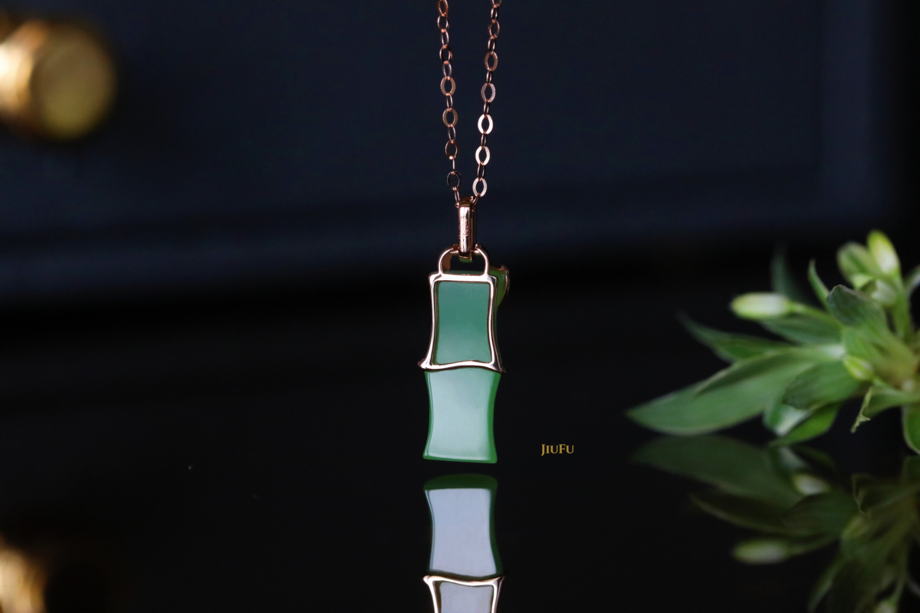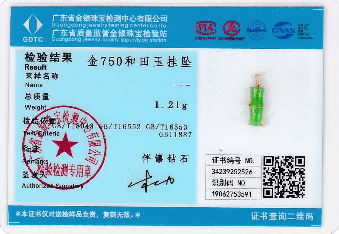 18K玫瑰金和田玉(碧玉)吊坠