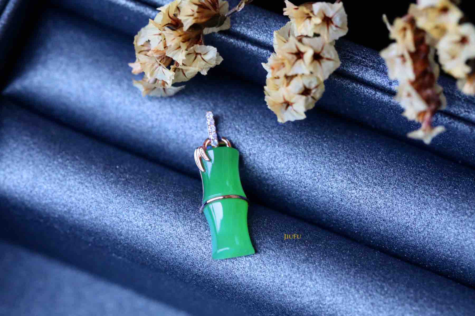 玉石尺寸:竹节6*15mm/苹果绿 配镶:钻石