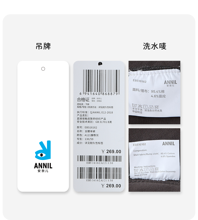 男童全腰针织单裤春季新款安奈儿童装EB516162