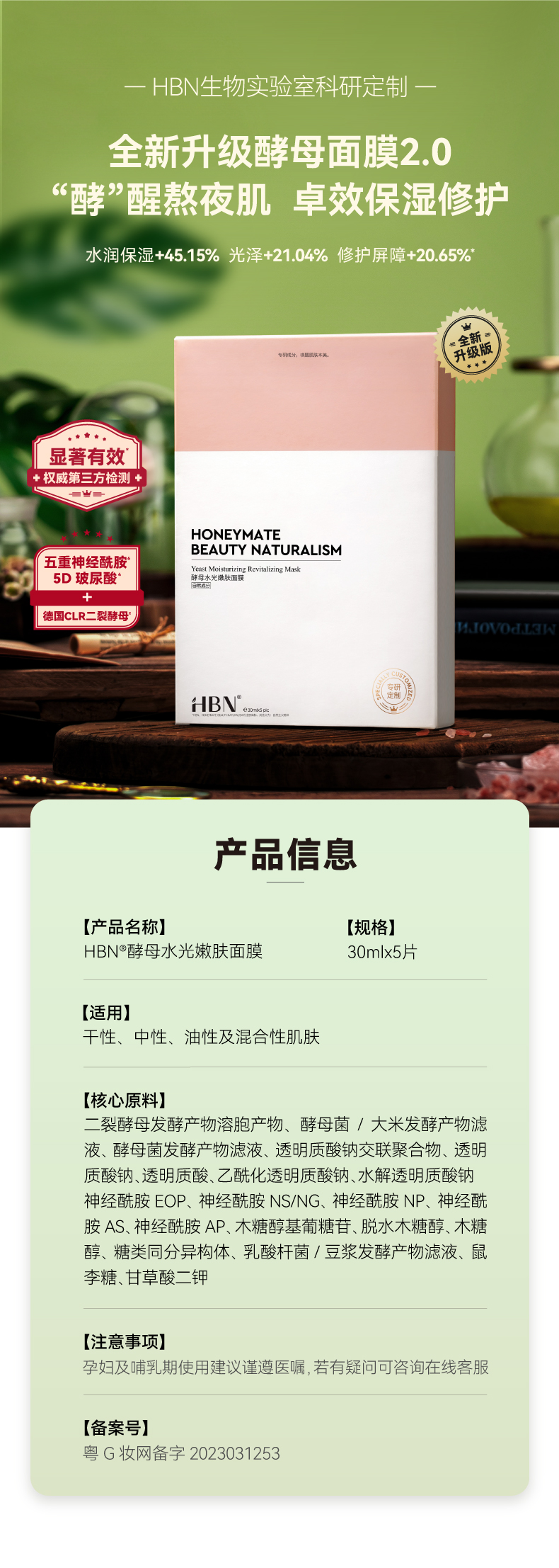 (小眠专属)HBN酵母水光面膜/多效焕亮面膜