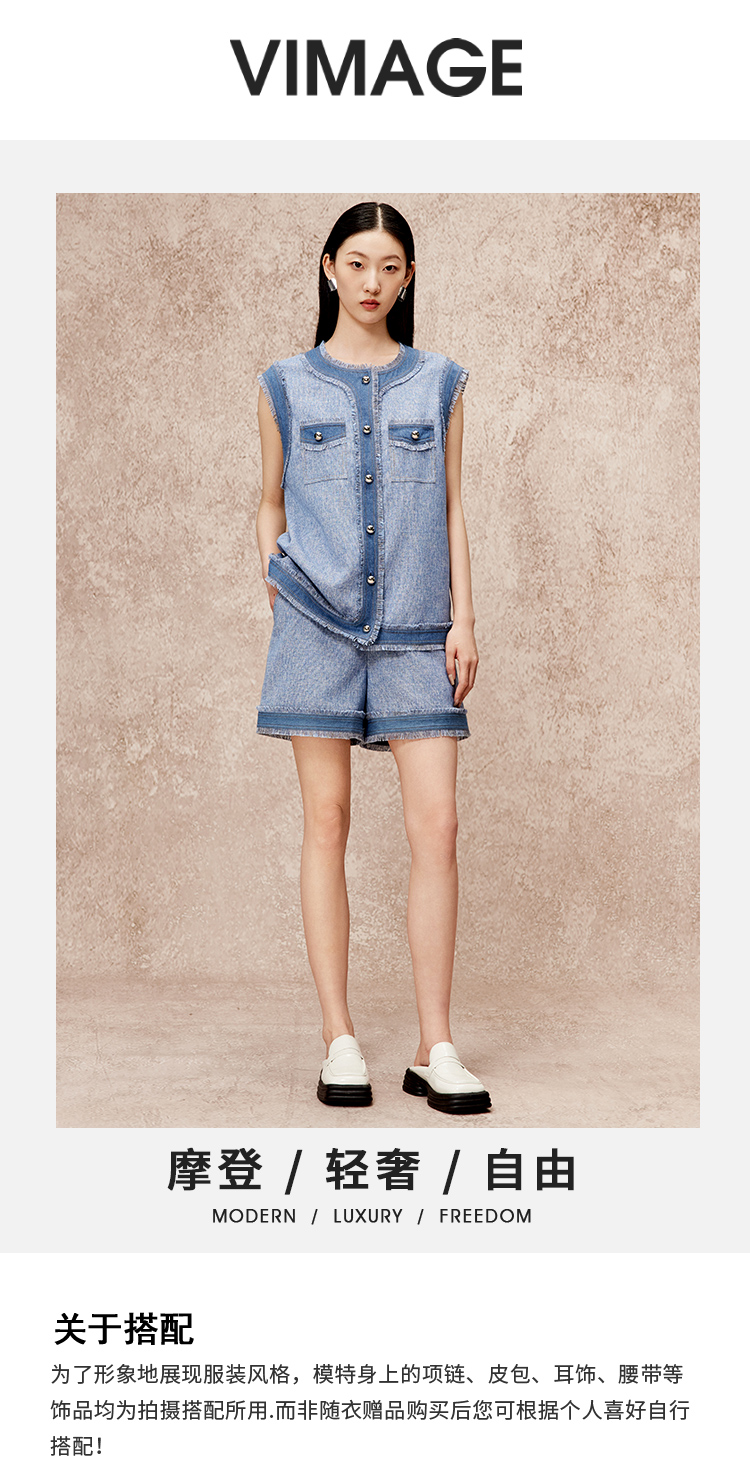 VIMAGE纬漫秋季新款廓形复古宽松百搭时尚马甲外套V2203835