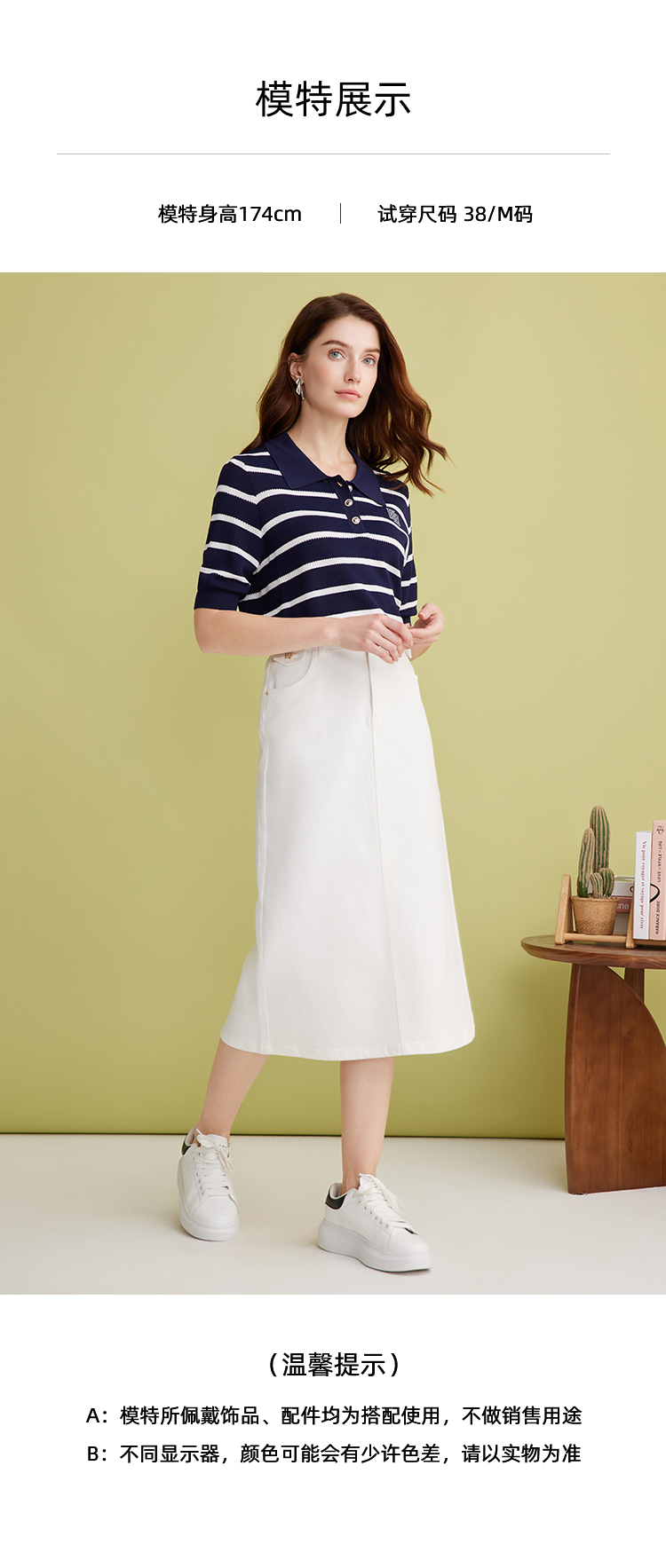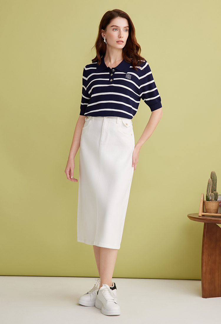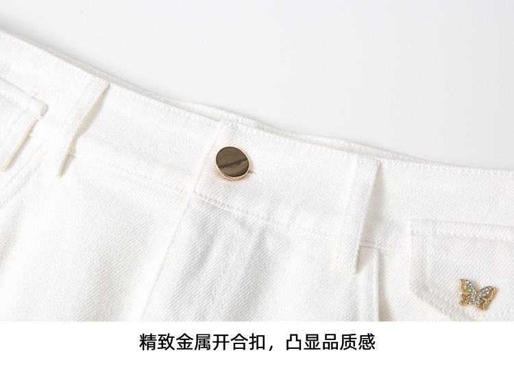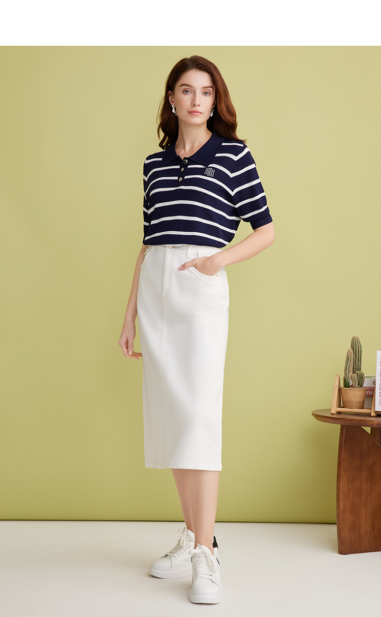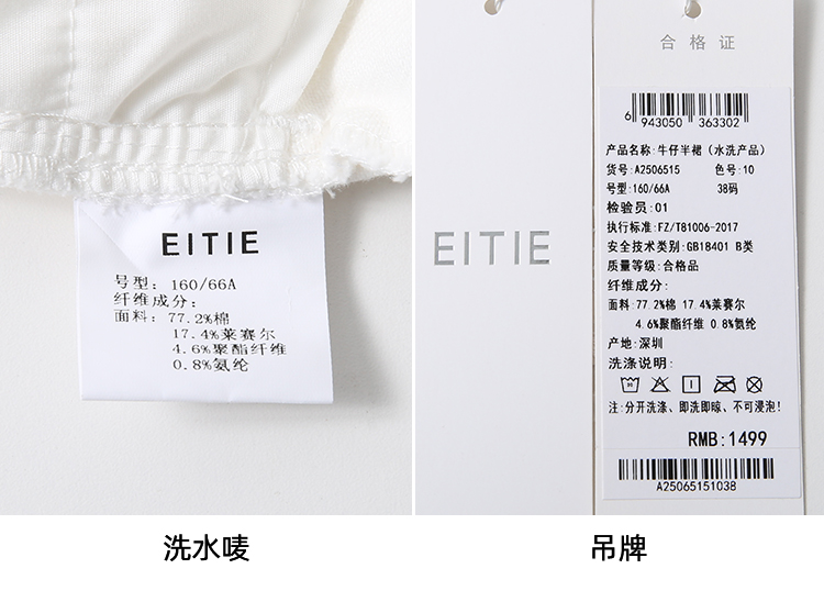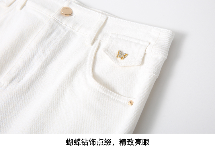 EITIE爱特爱简约白色显瘦高腰开叉a字过膝牛仔半身裙春季新款A2506515