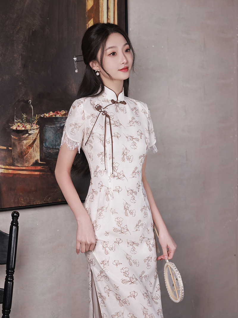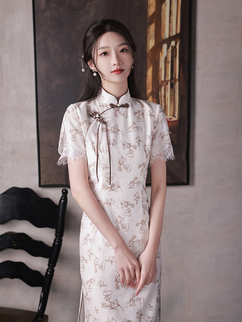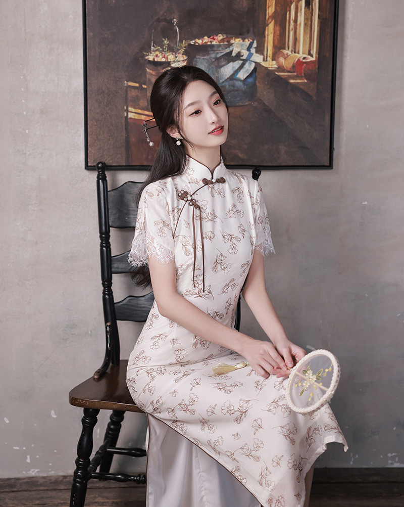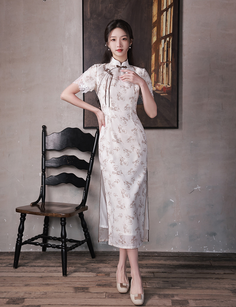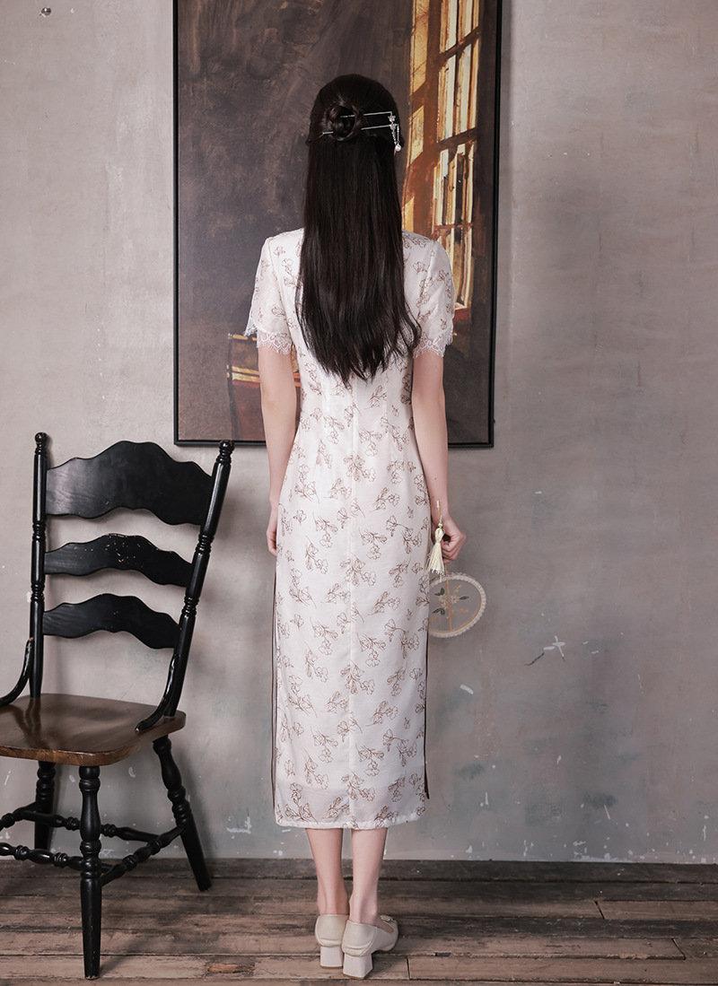 改良少女款,复古蕾丝休闲旗袍裙XL-23088