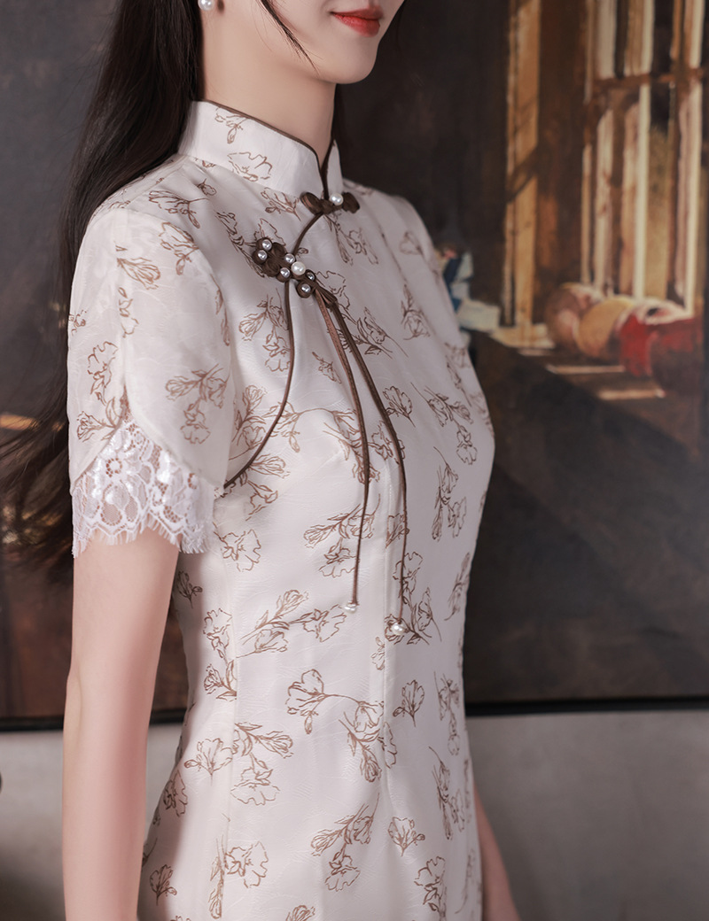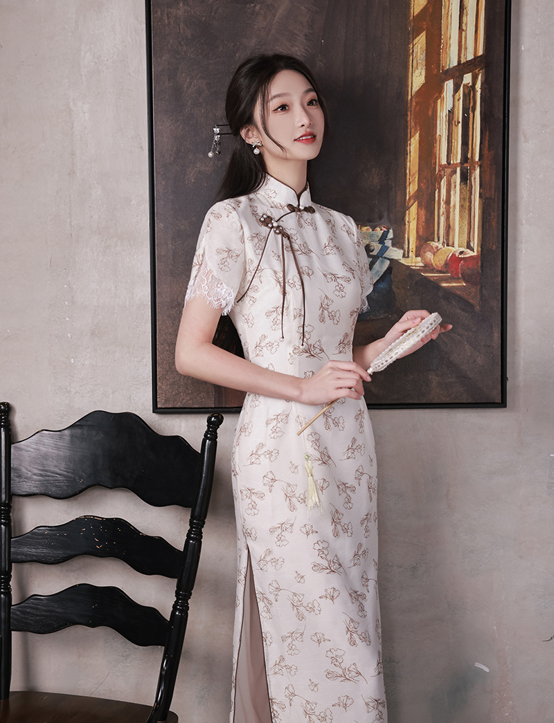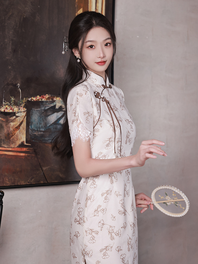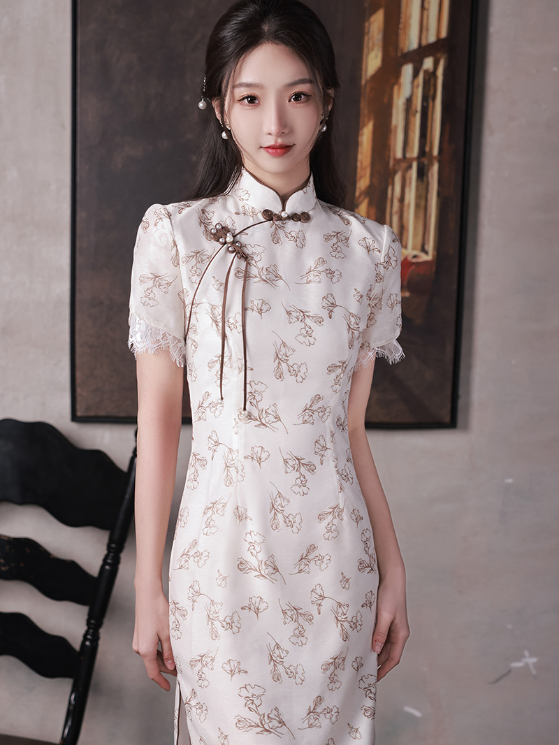 改良少女款,复古蕾丝休闲旗袍裙XL-23088
