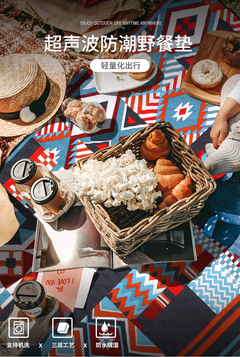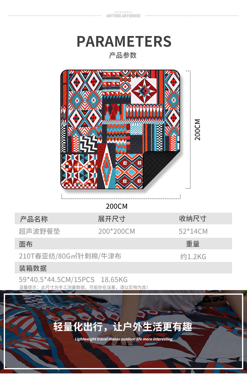 飞图乐民族风超声波复合野餐垫2*2mYCD0302