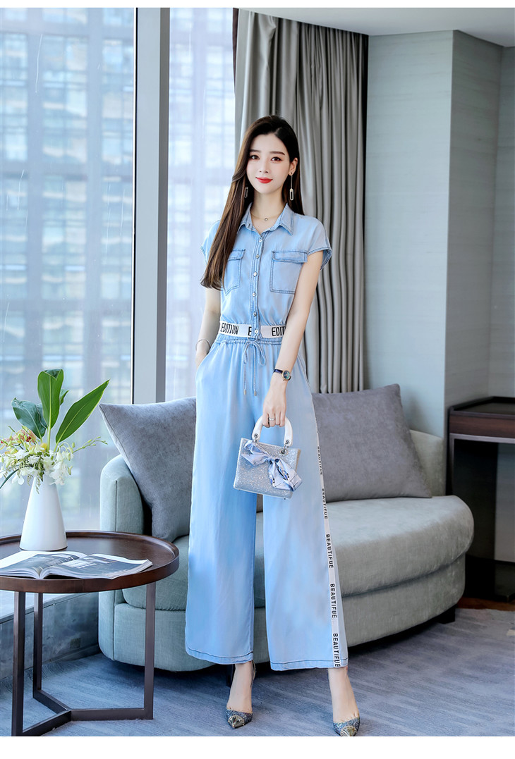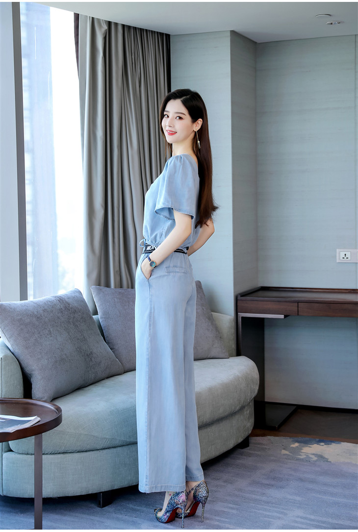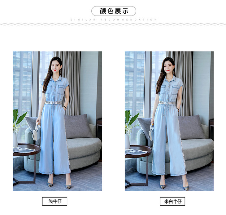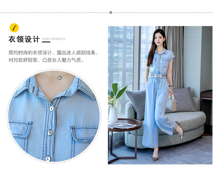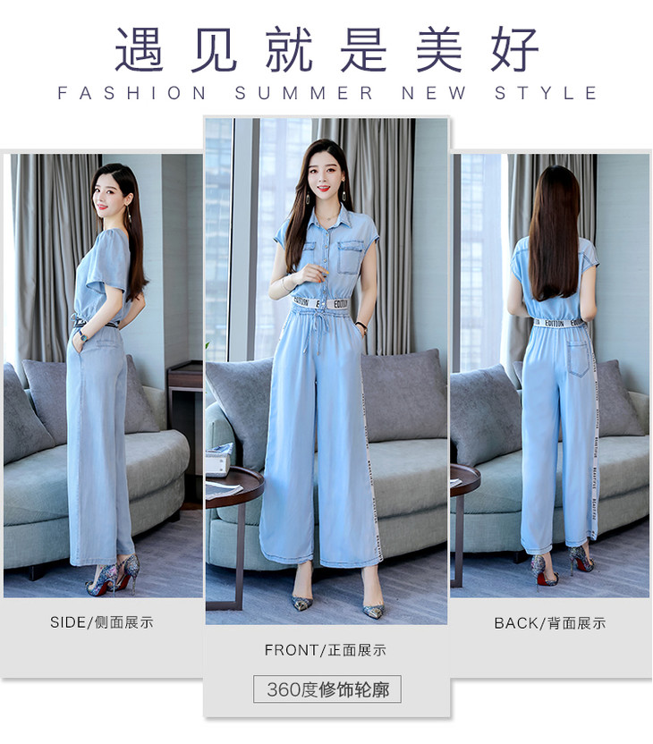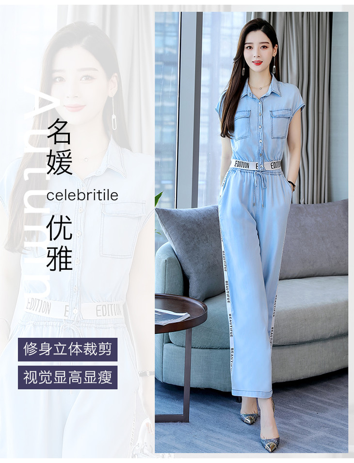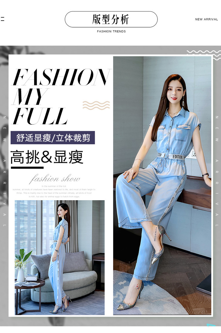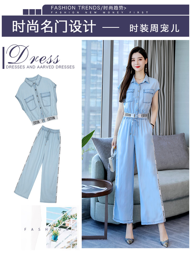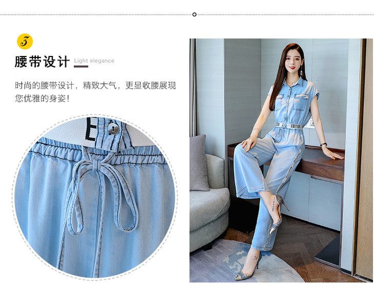 L-BBL6628夏季新款简约气质高腰牛仔两件套