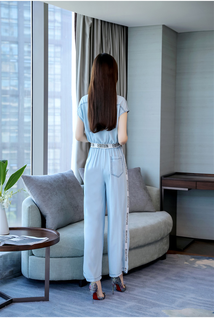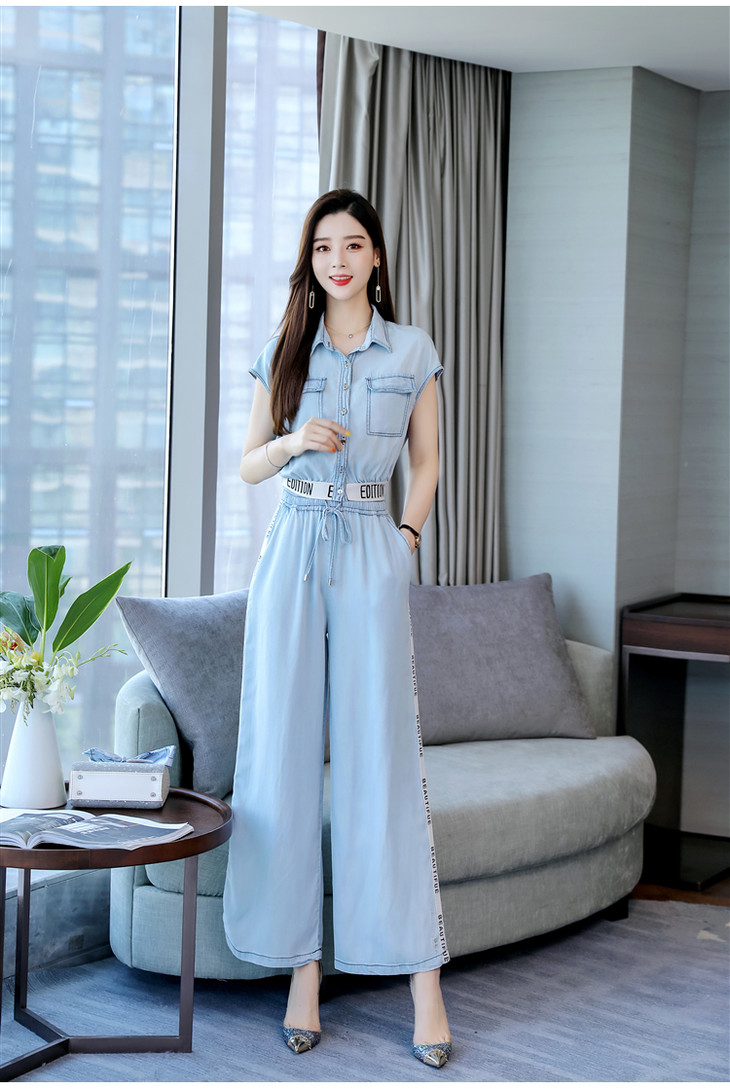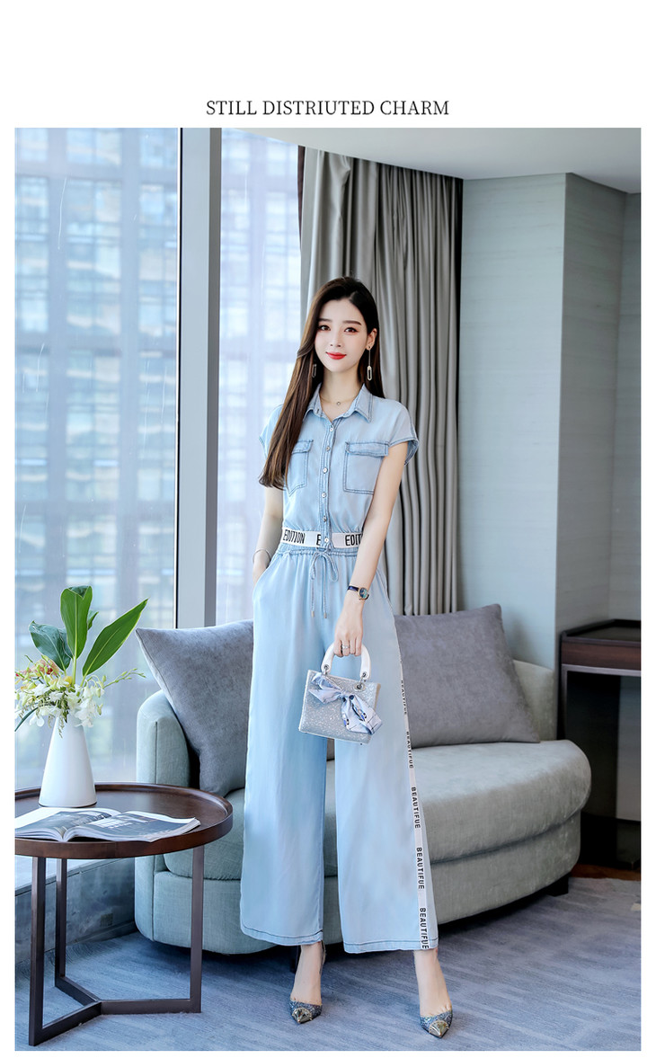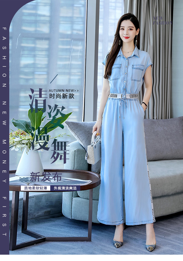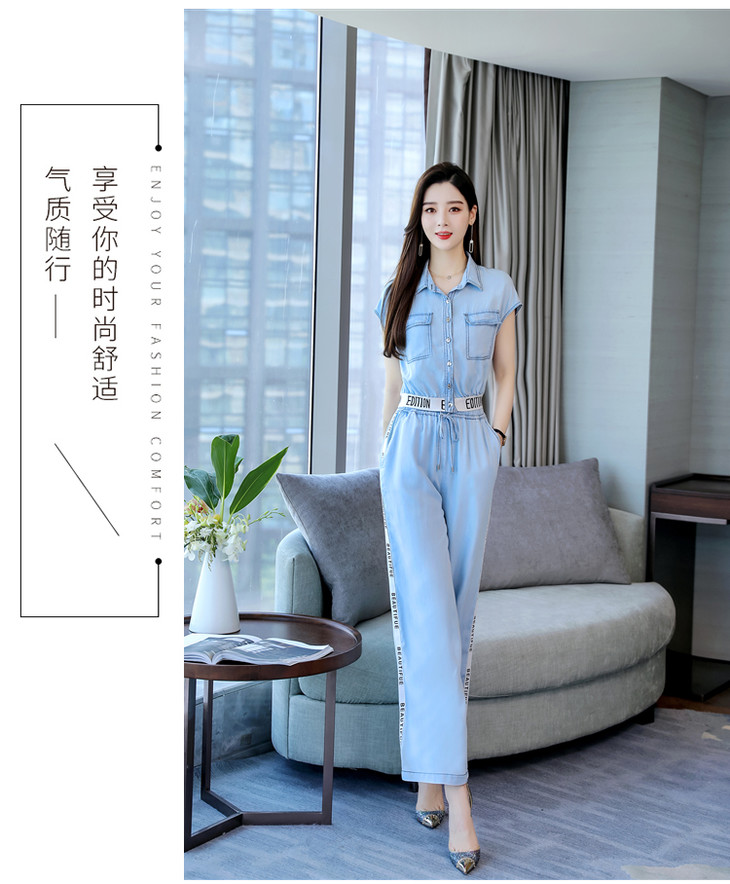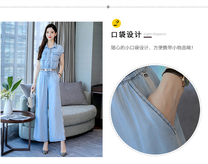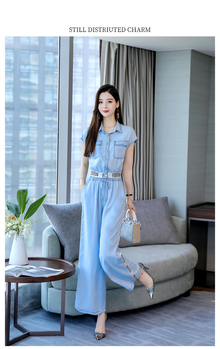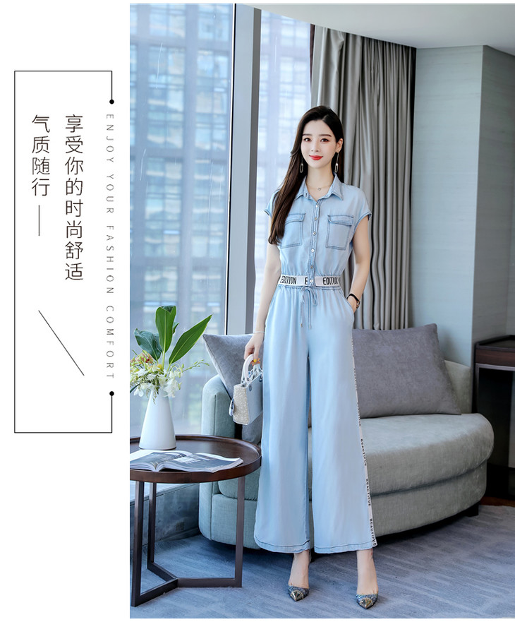 L-BBL6628夏季新款简约气质高腰牛仔两件套
