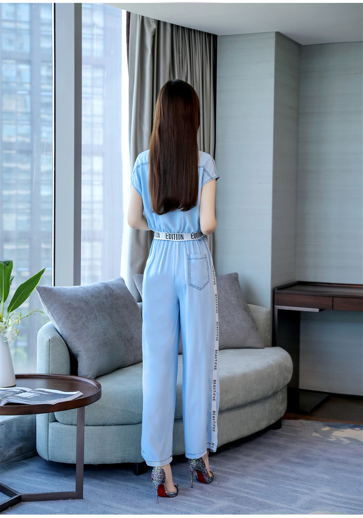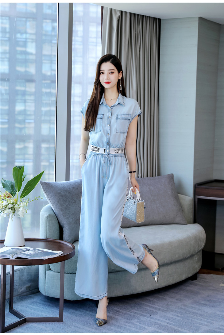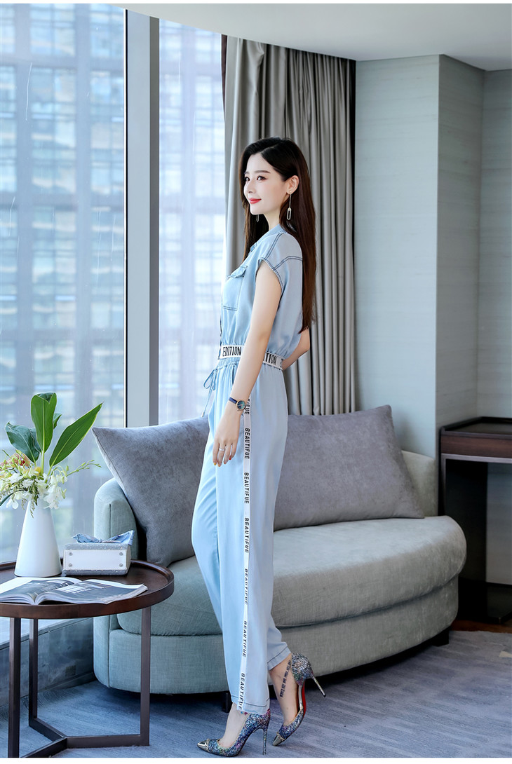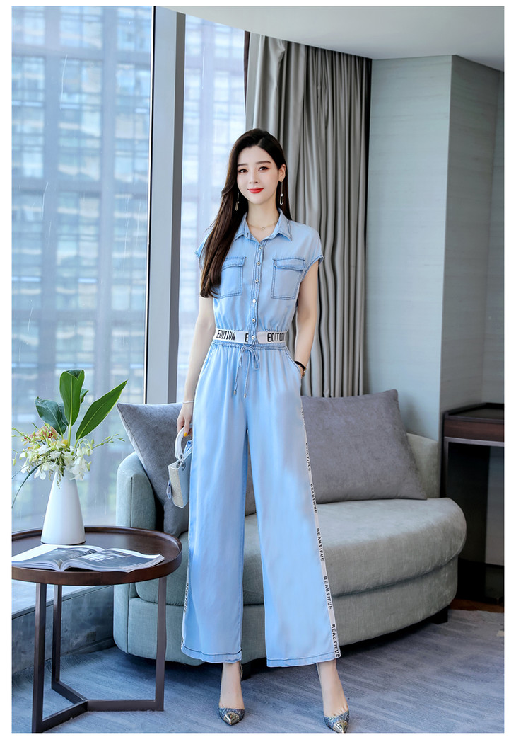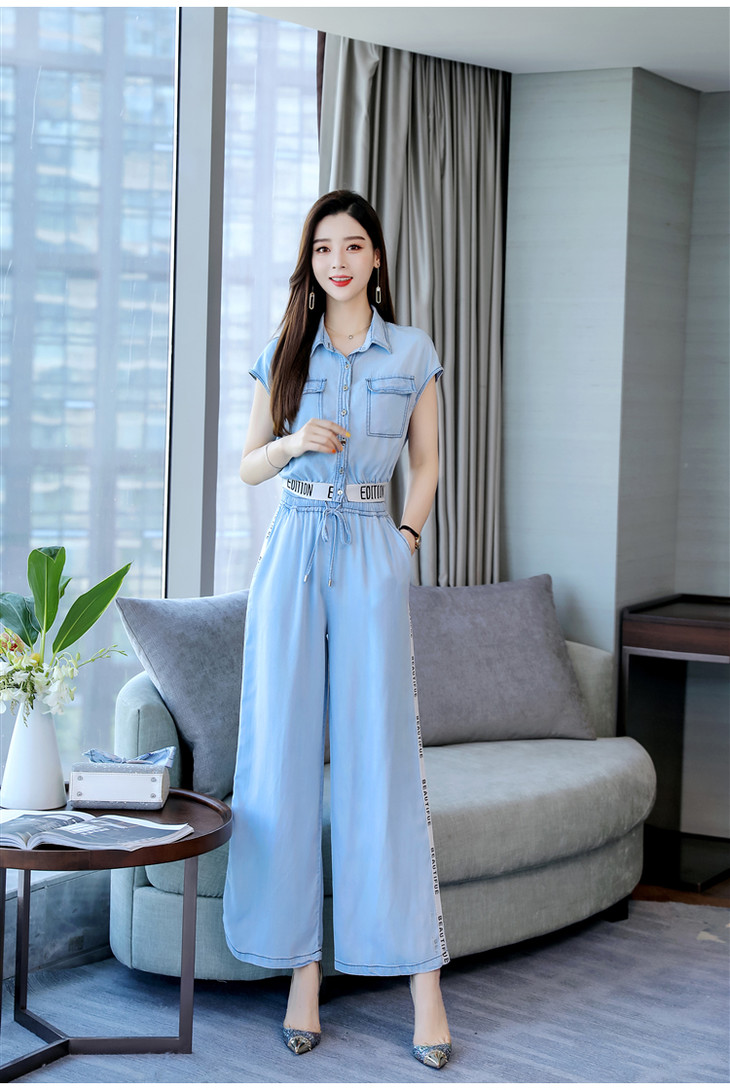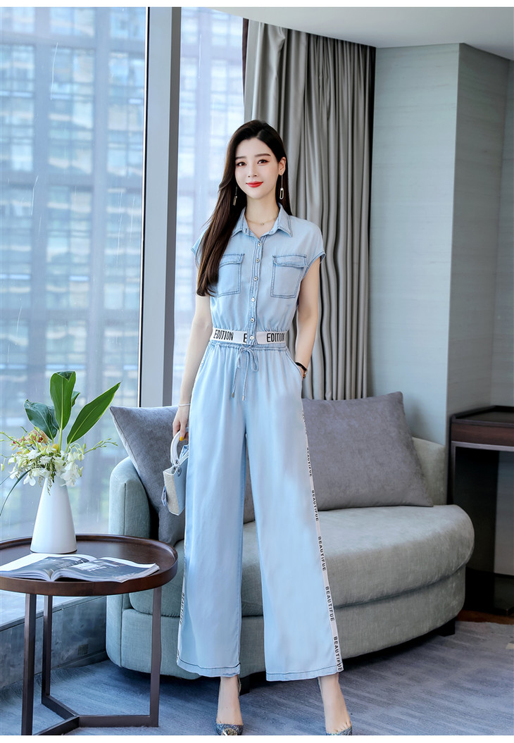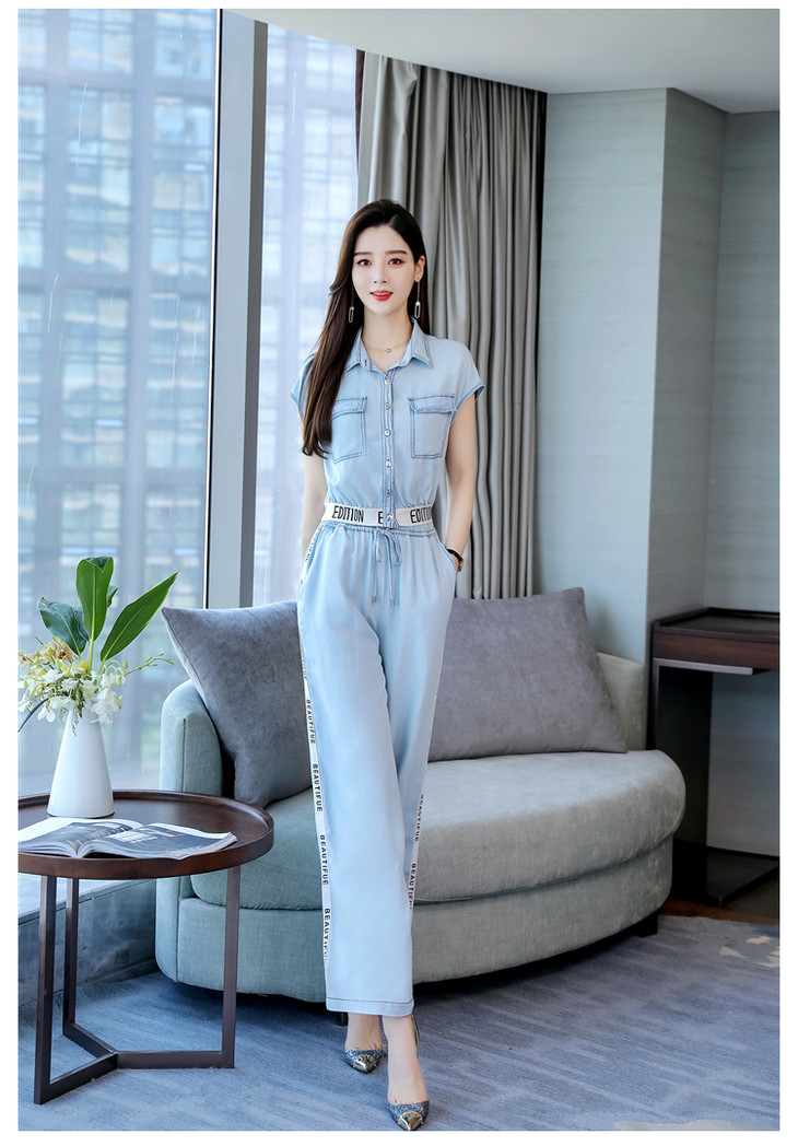 L-BBL6628夏季新款简约气质高腰牛仔两件套
