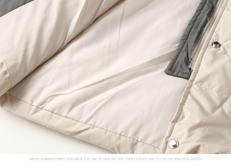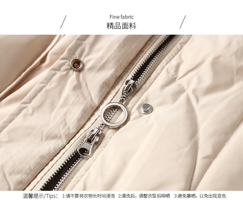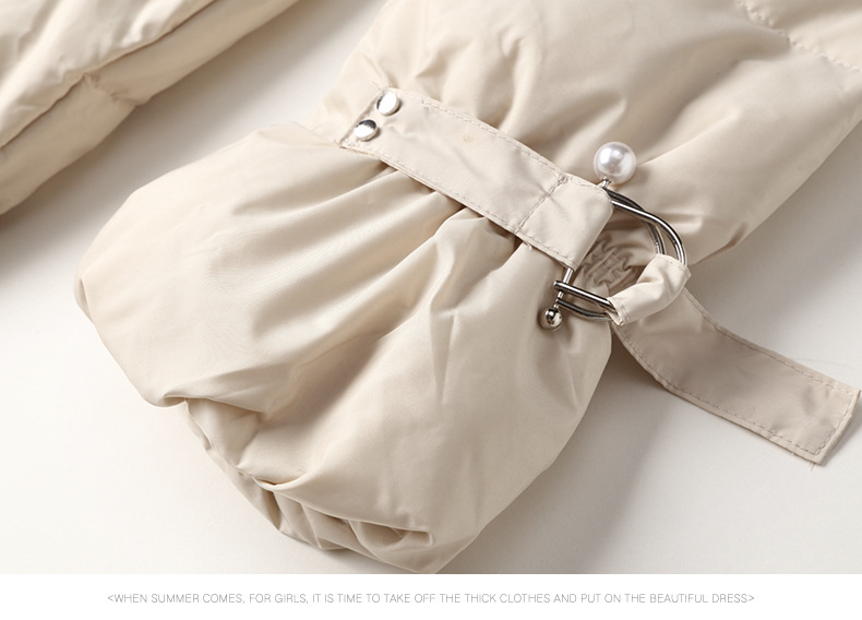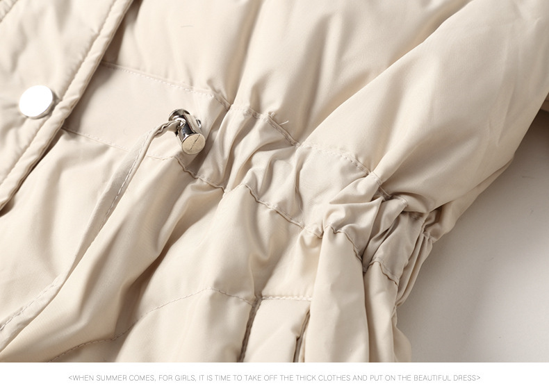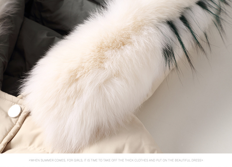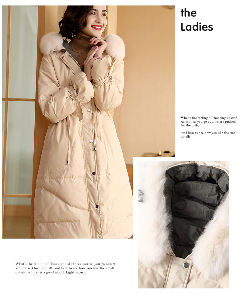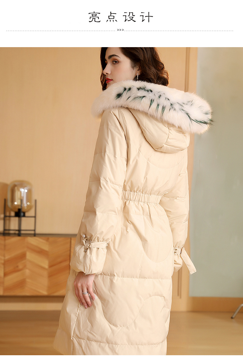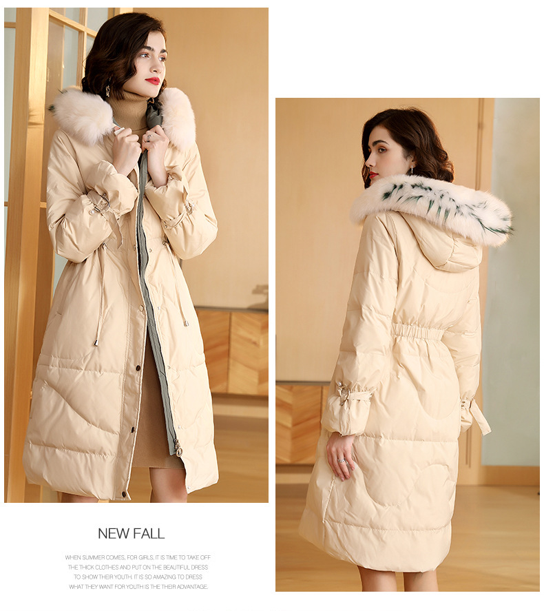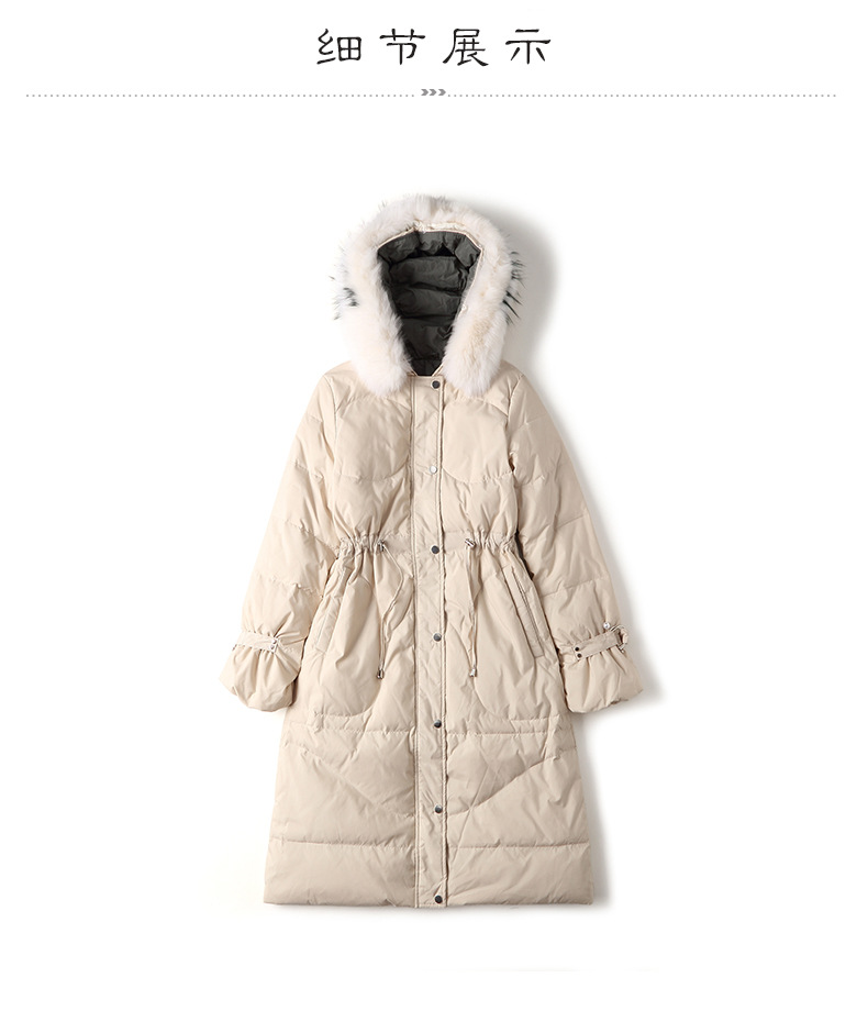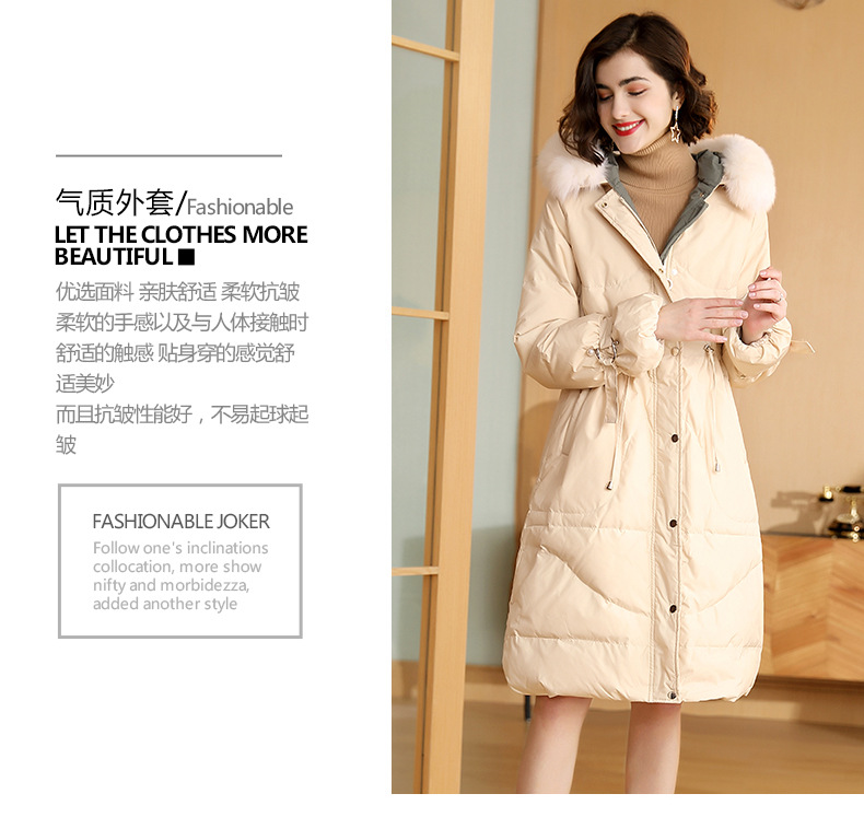 KE-661秋冬新款纯色系带大毛领连帽时尚长款羽绒服外套