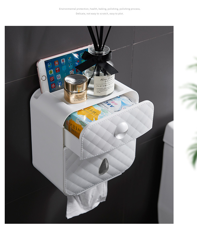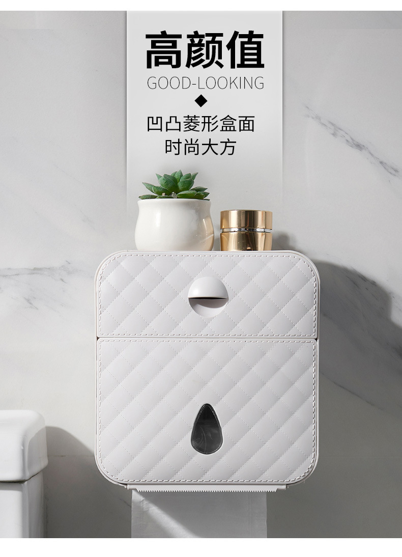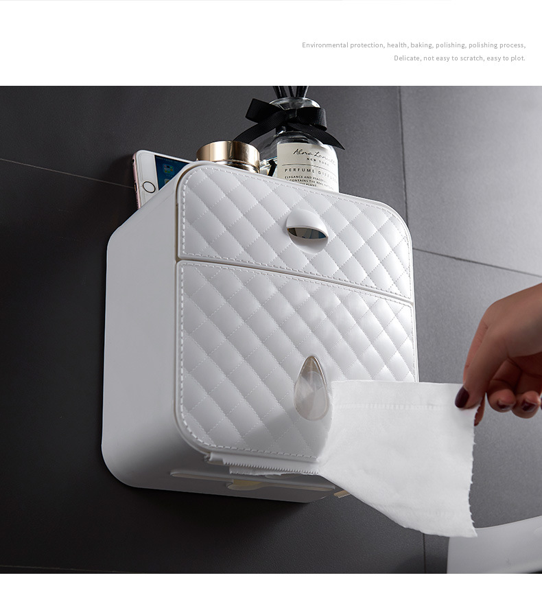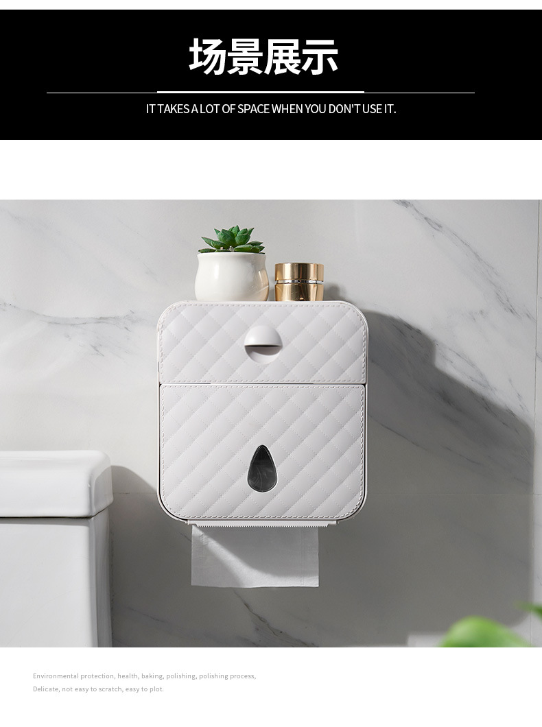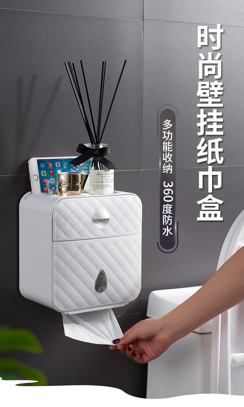 PL-167免打孔卫生间多功能仿皮纹纸巾盒 TZW