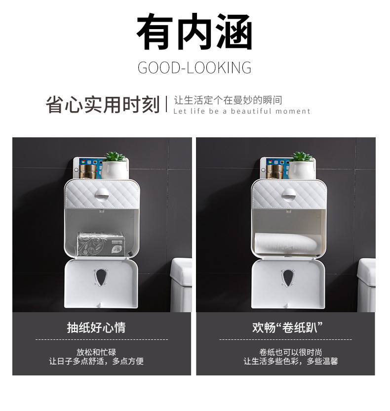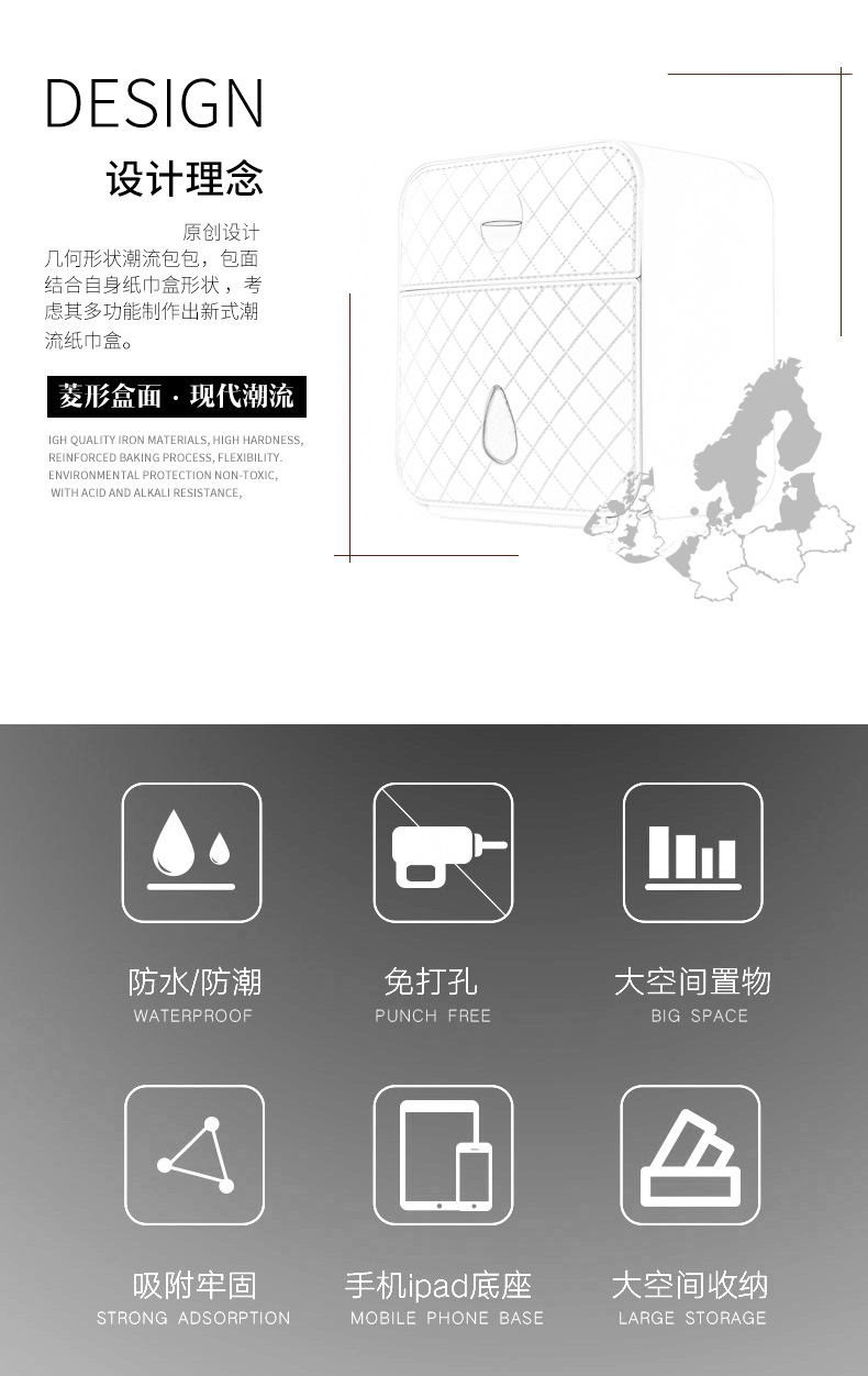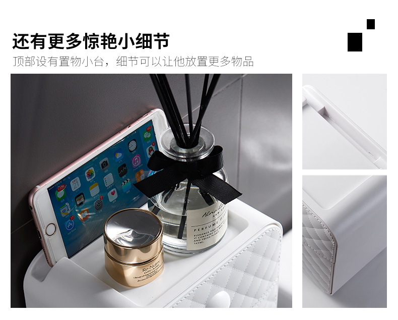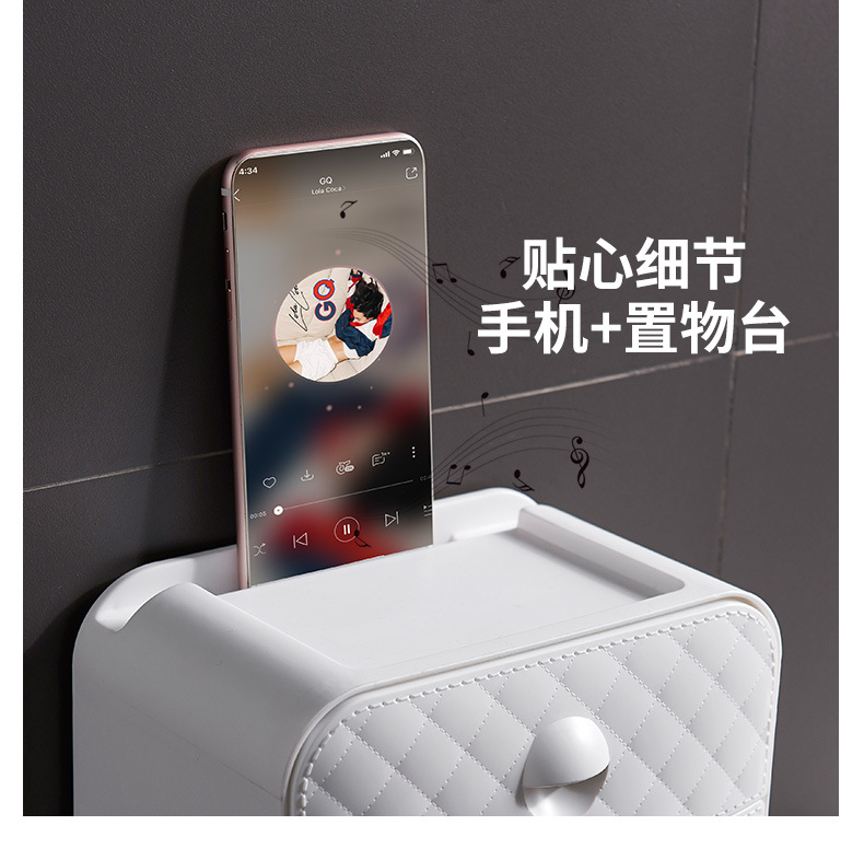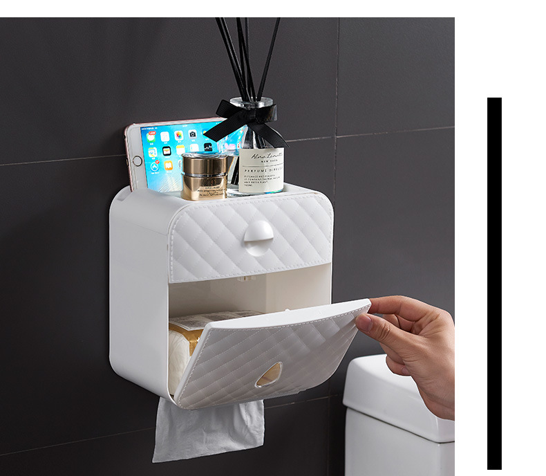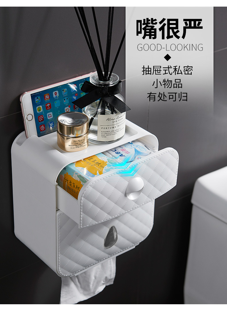 PL-167免打孔卫生间多功能仿皮纹纸巾盒 TZW