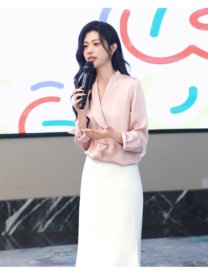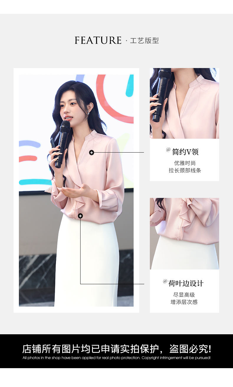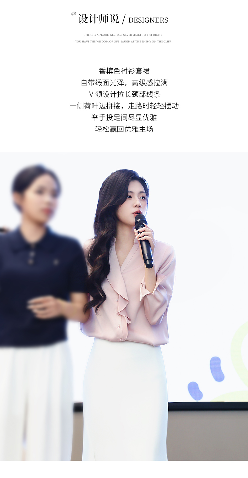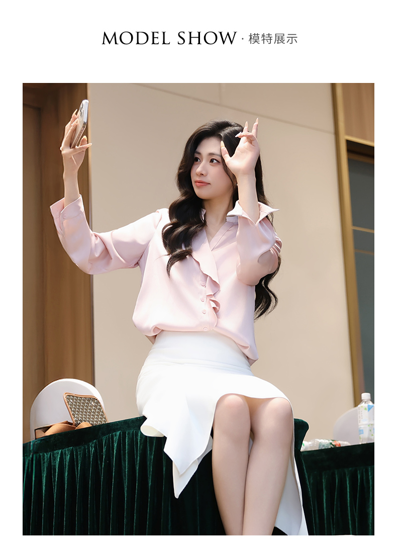 法小曼*子珍专款/新款衬衫女高级感轻奢减龄粉色缎面长袖衬衣套装2025新款鱼尾裙