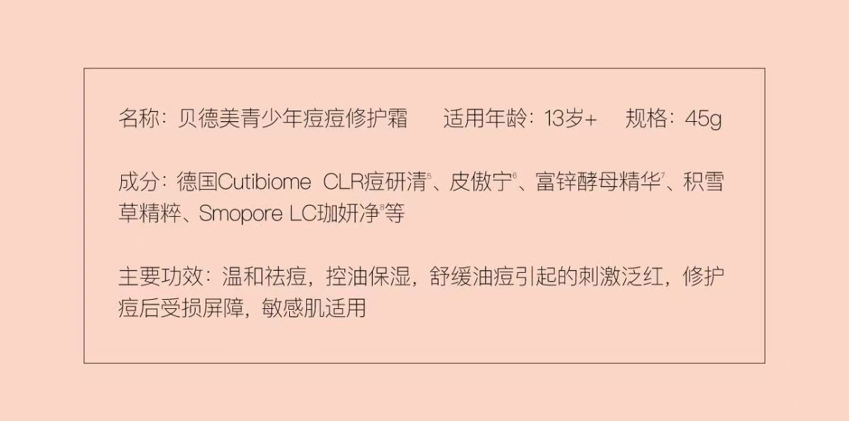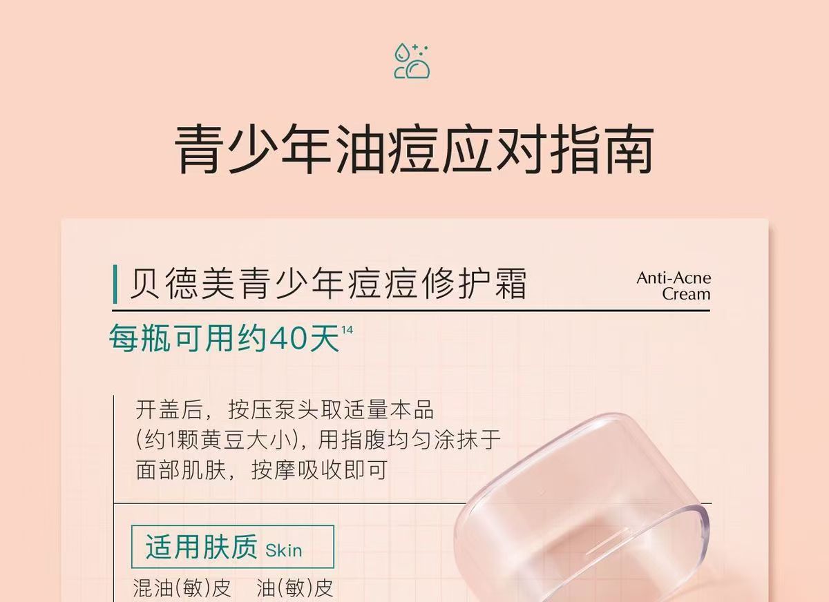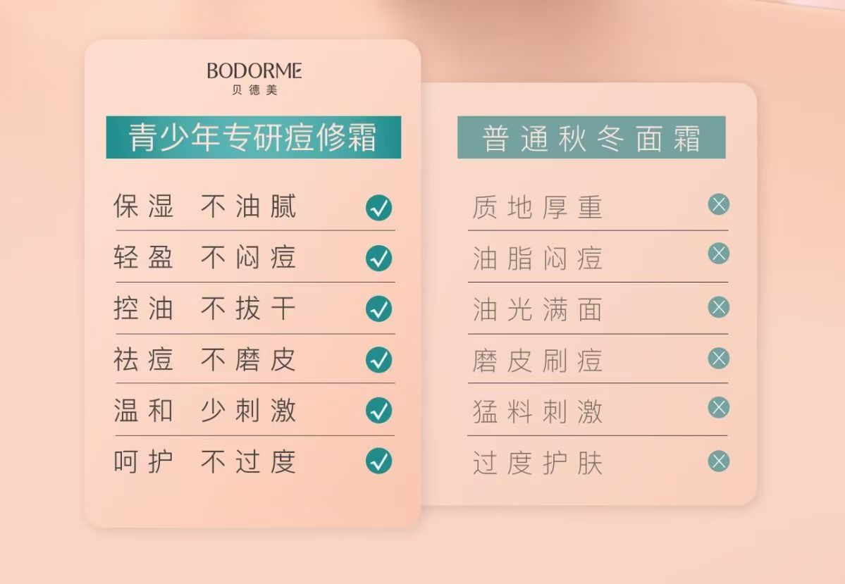 贝德美青少年儿童面霜祛除痘印保湿滋润痘痘修护精华霜