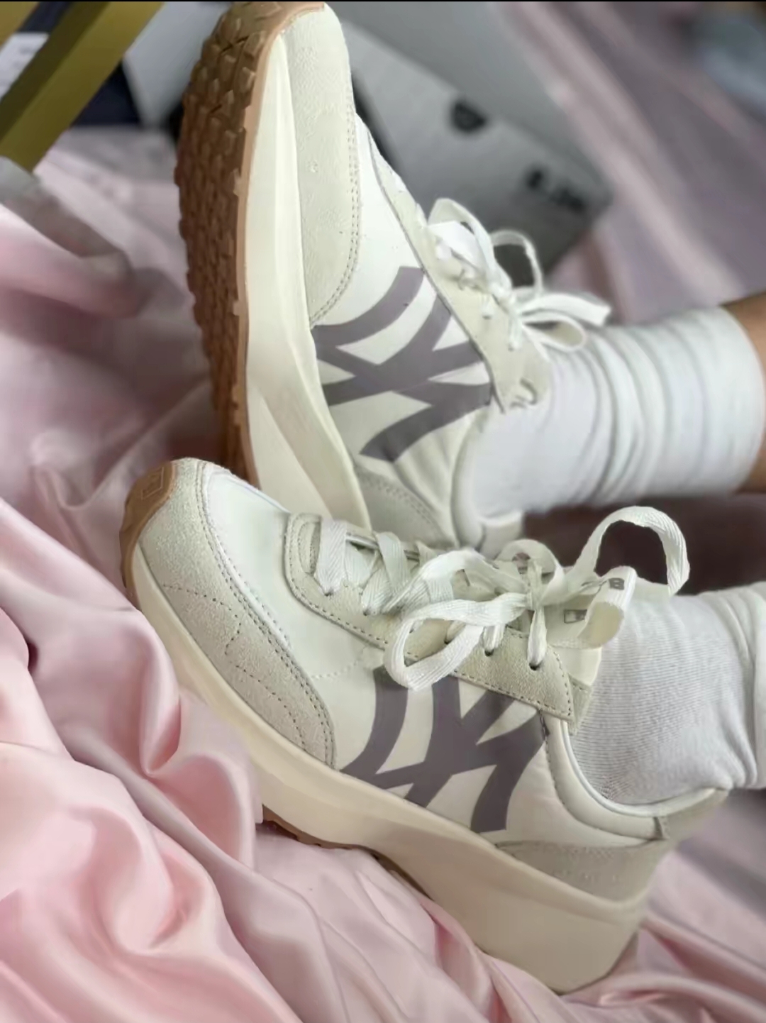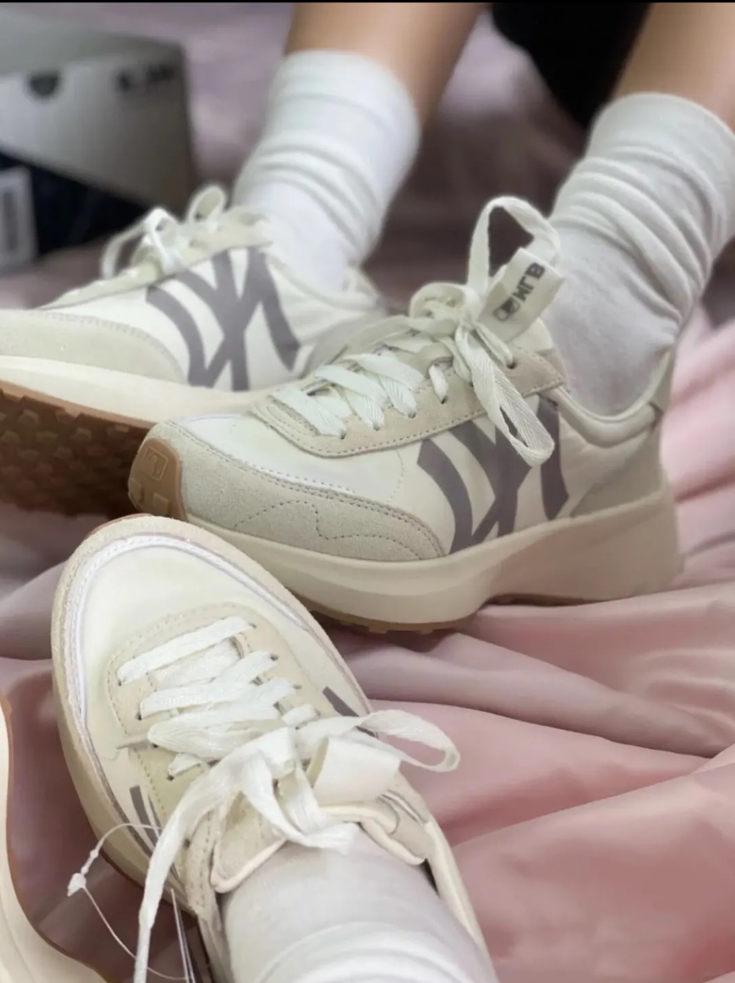 【授权商品】MLB NY大标米白百搭男女运动时尚休闲帆布跑步鞋32SHX1111-50I