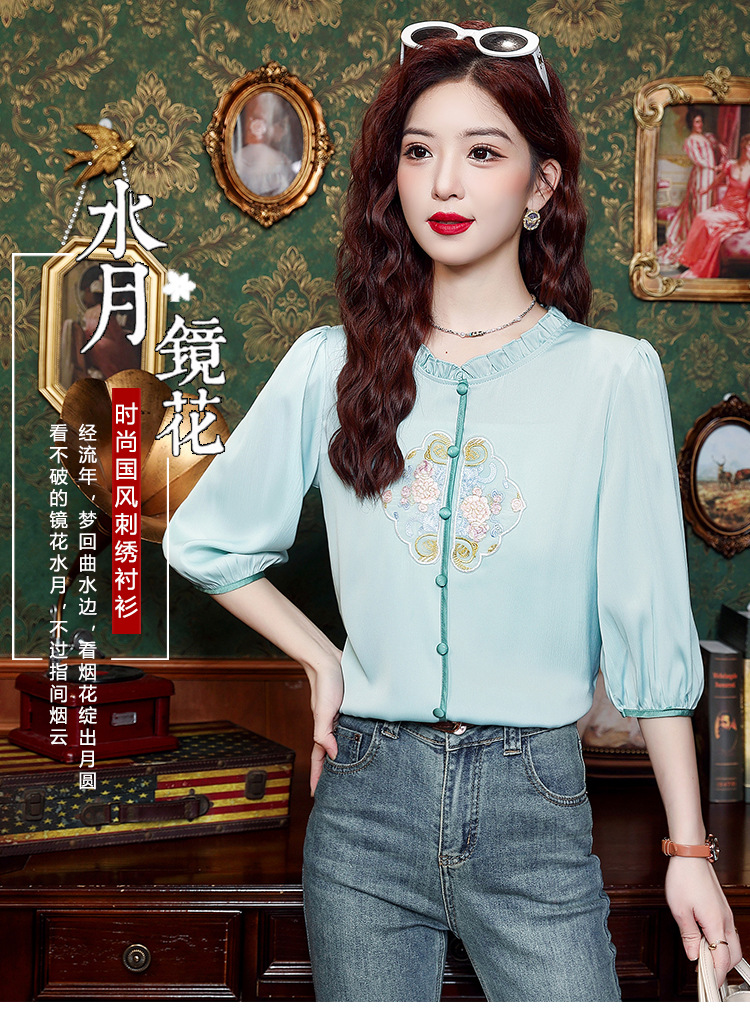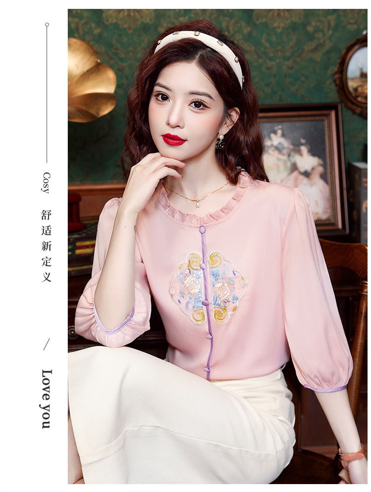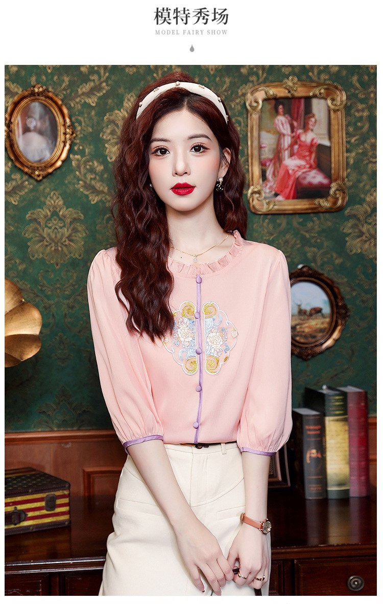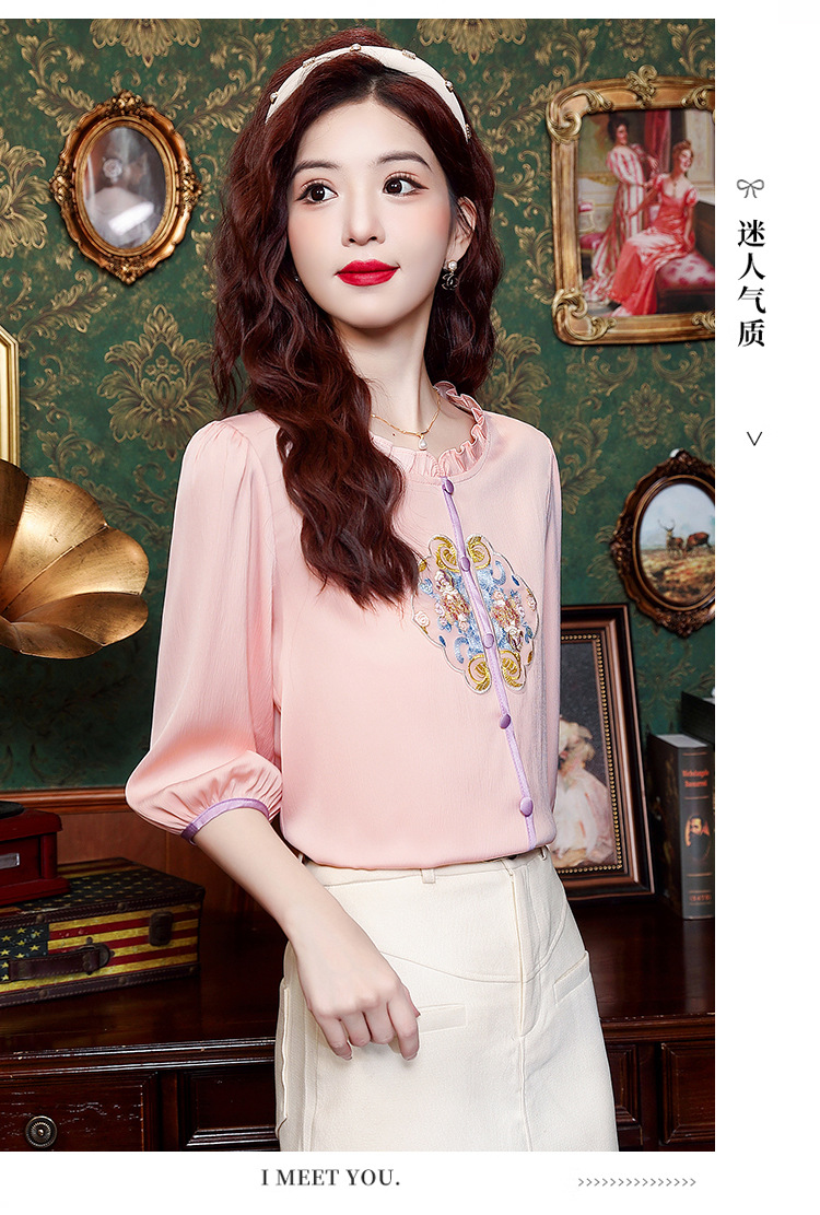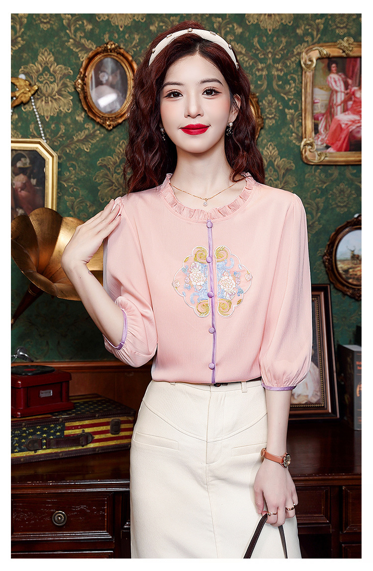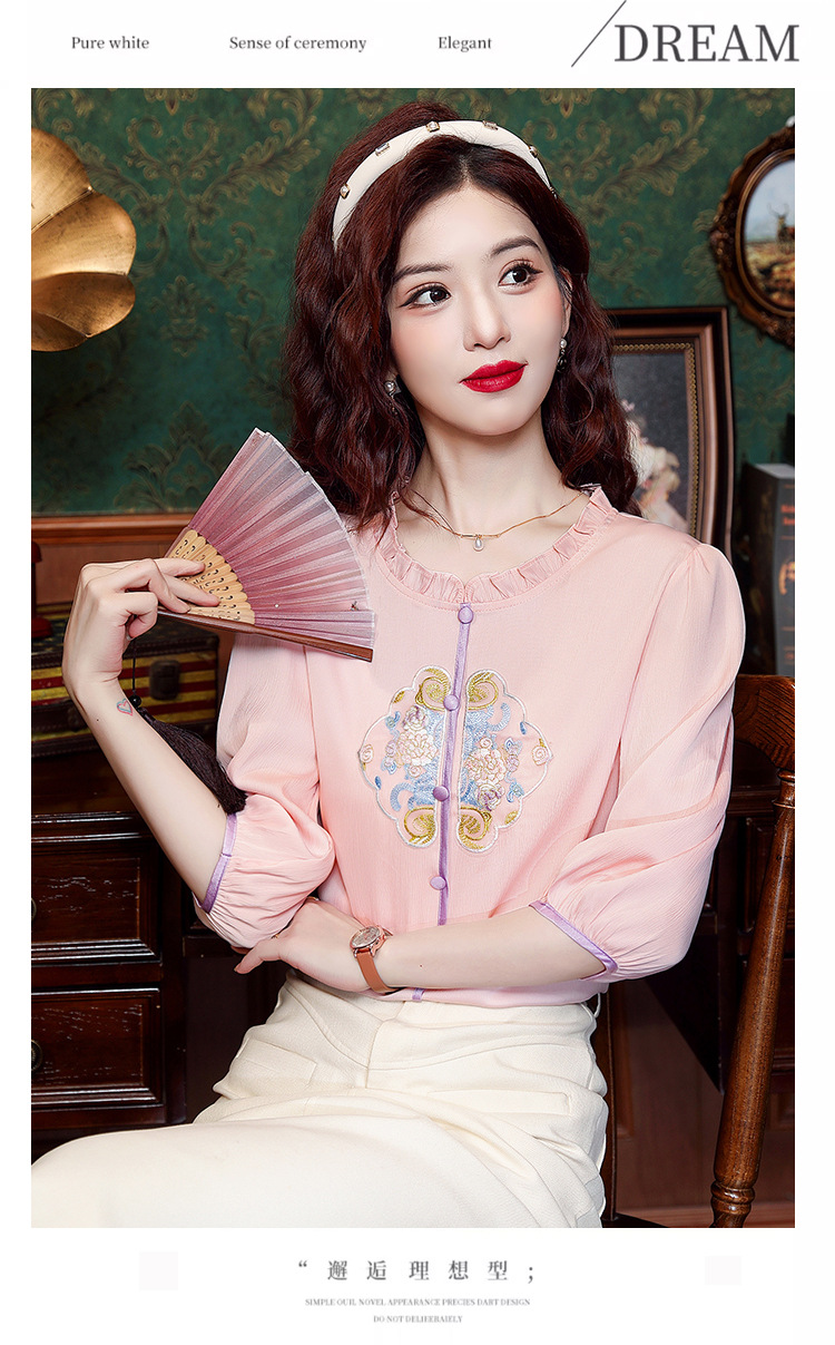 新中式国风刺绣雪纺甜美上衣K-E324N1043
