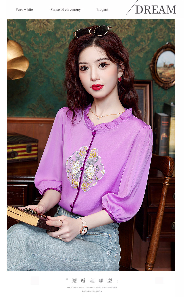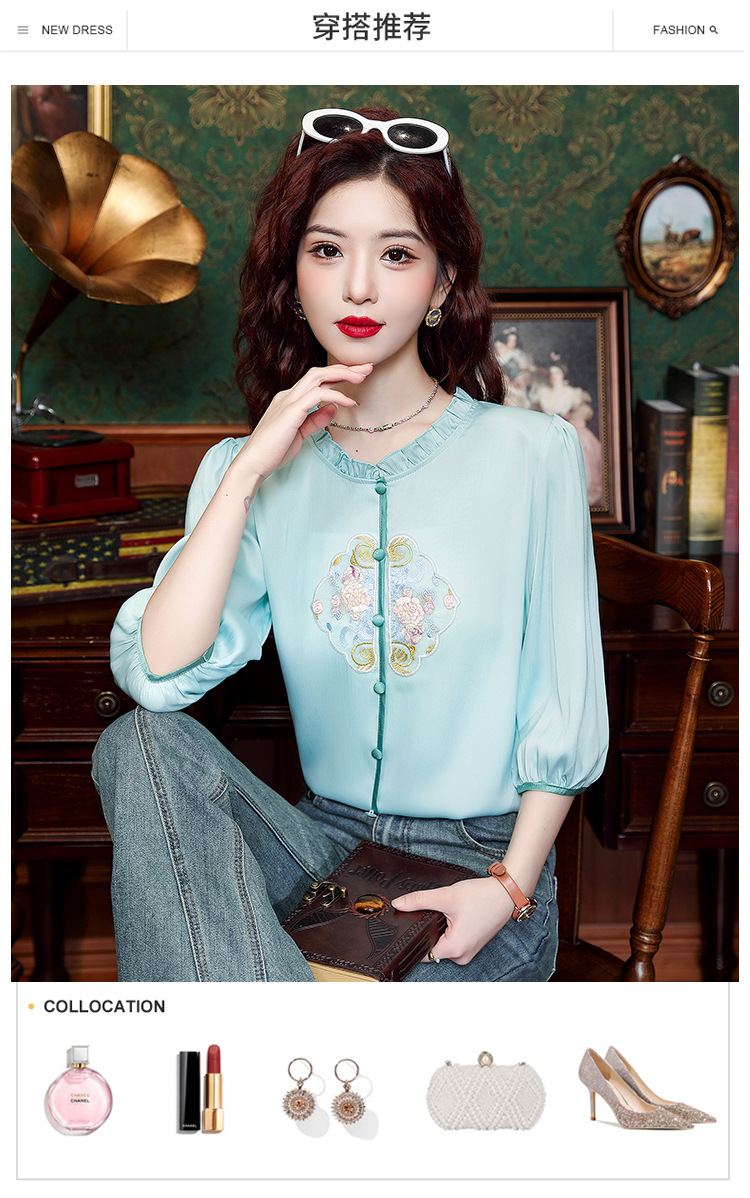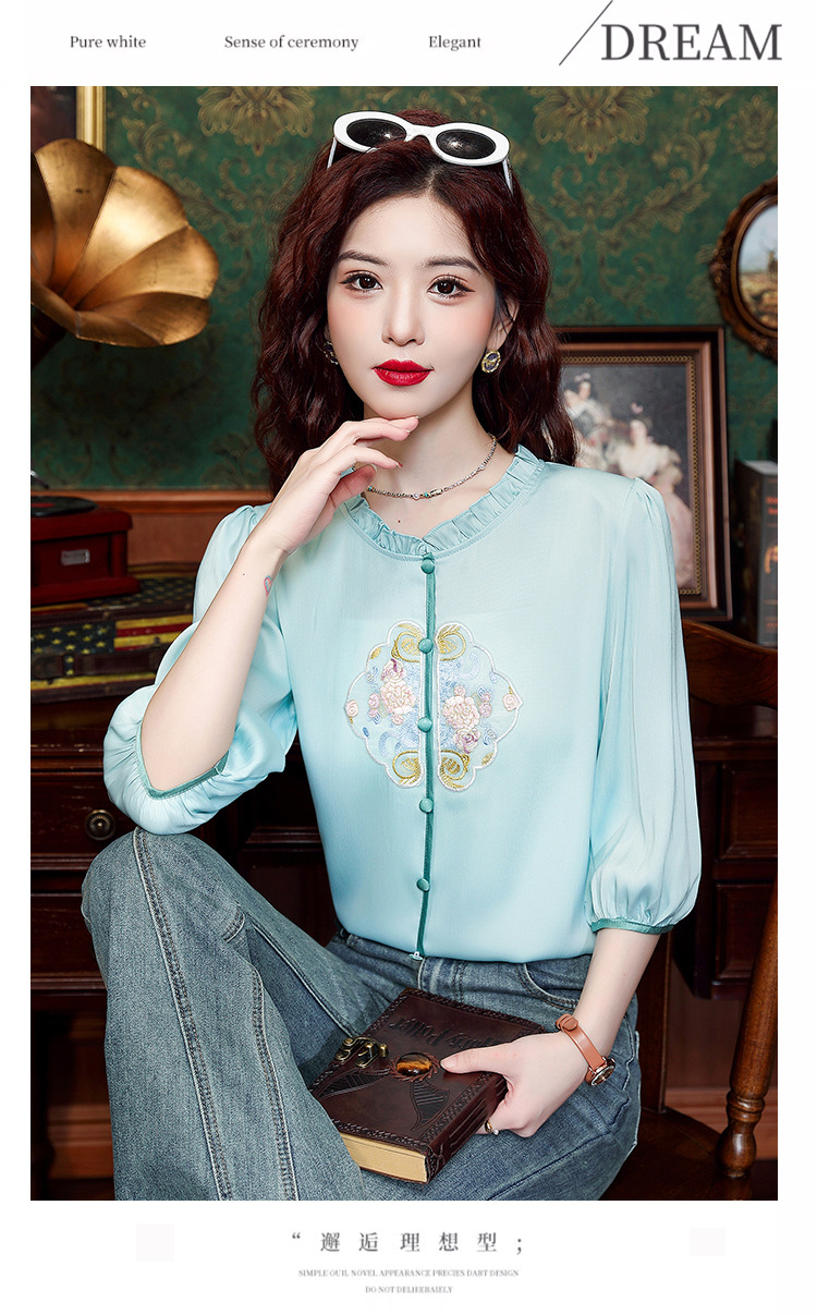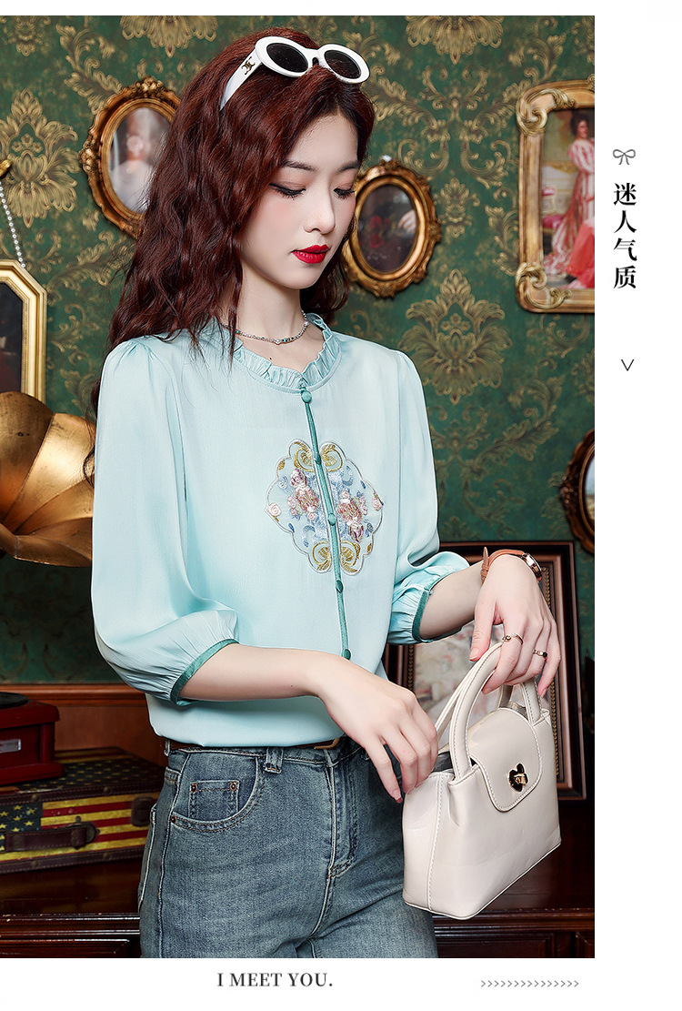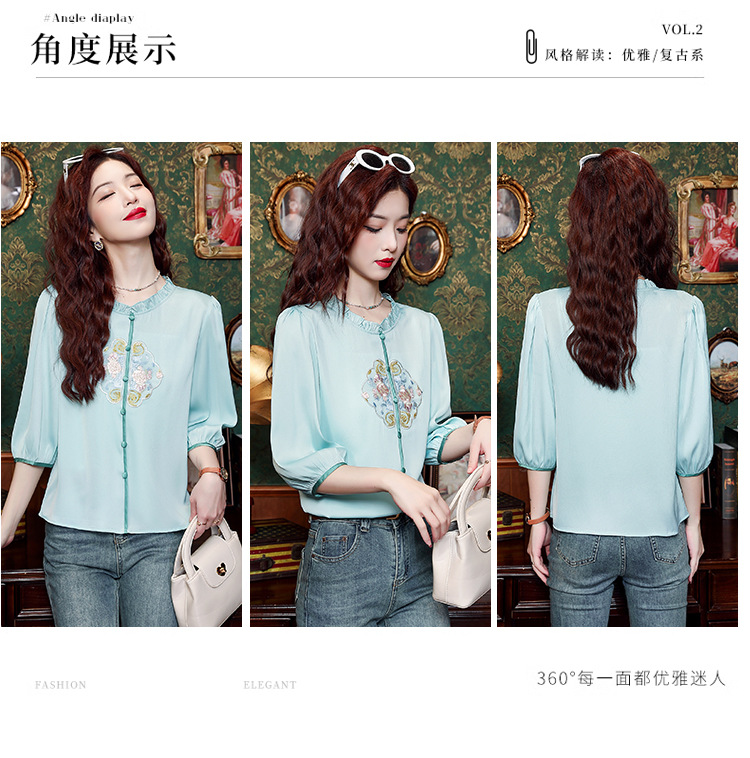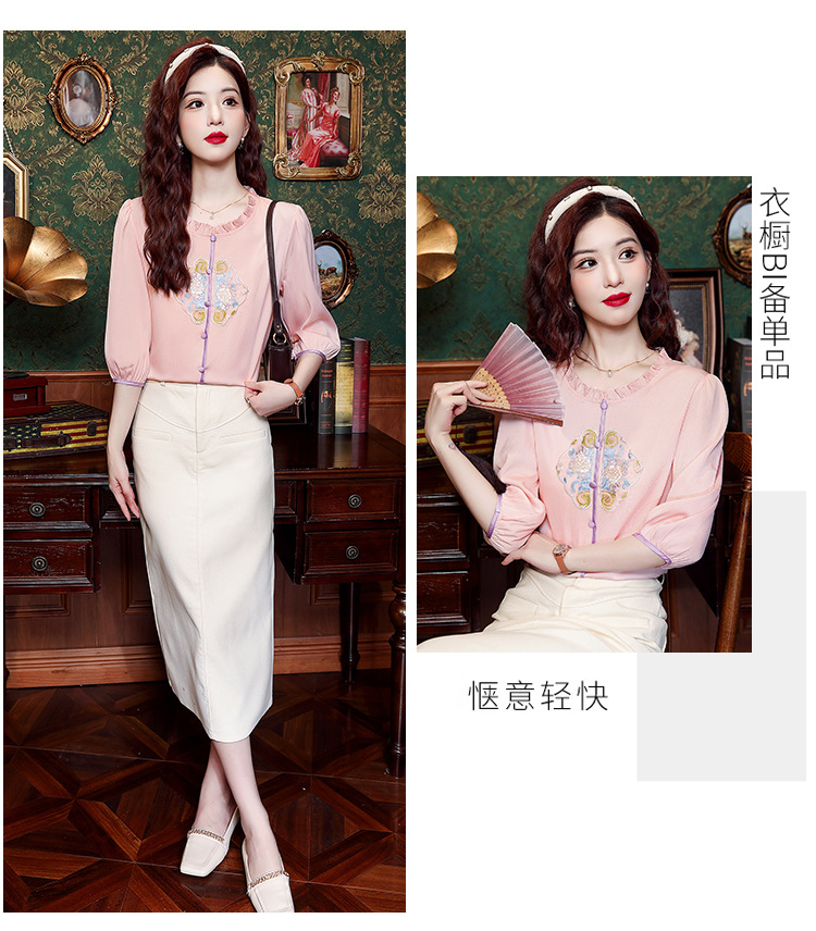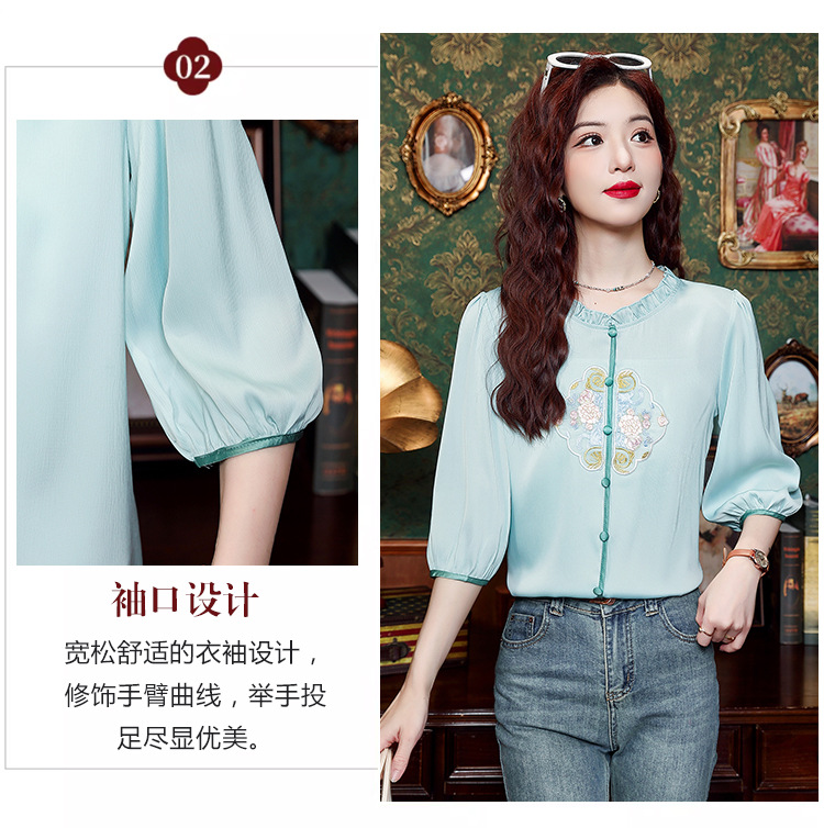 新中式国风刺绣雪纺甜美上衣K-E324N1043