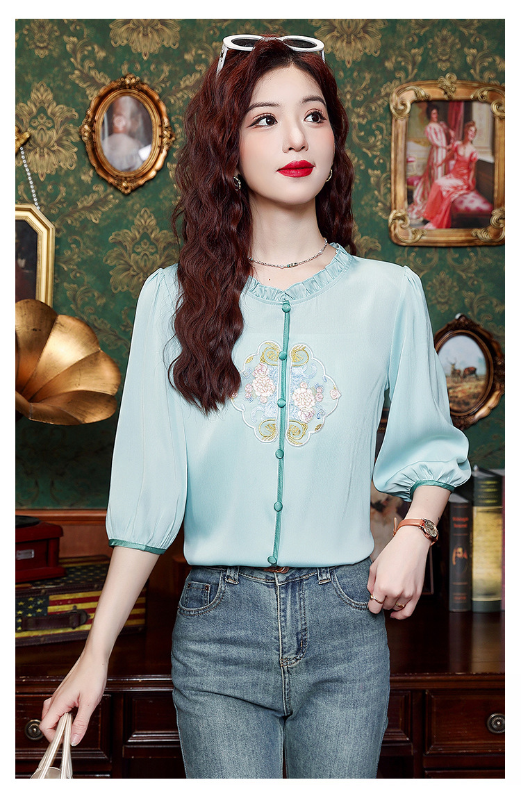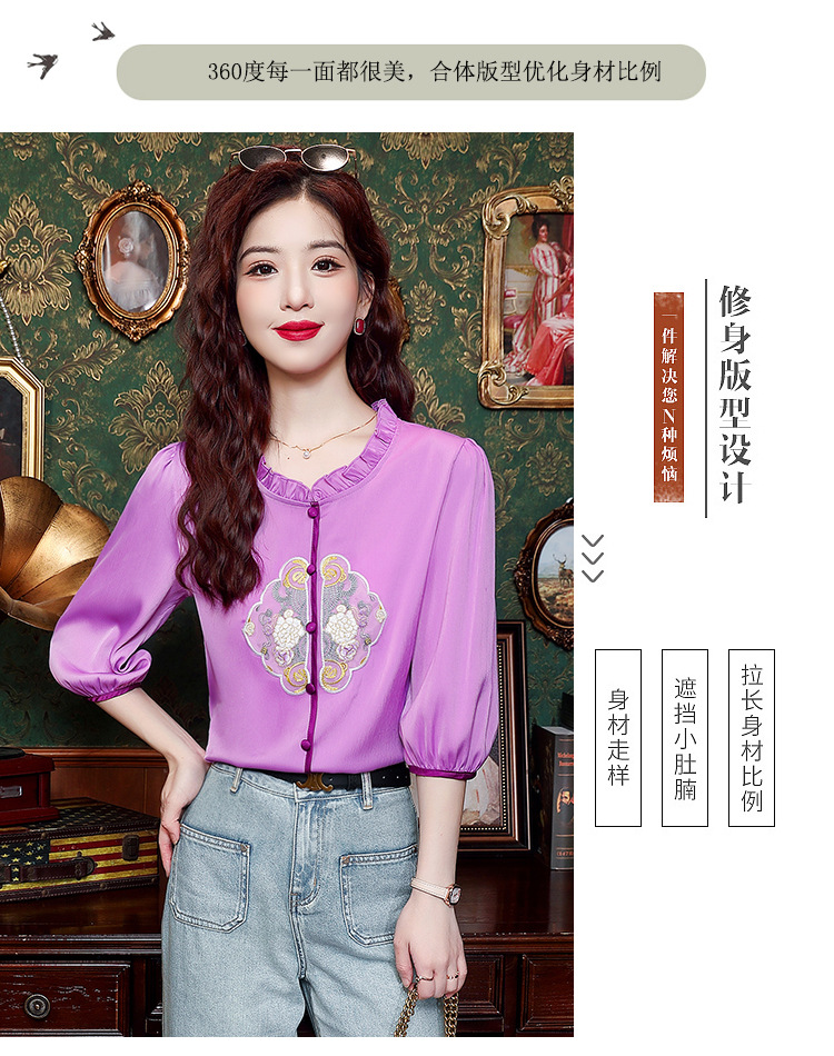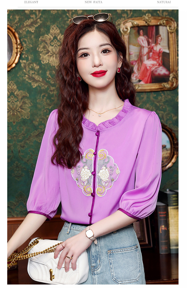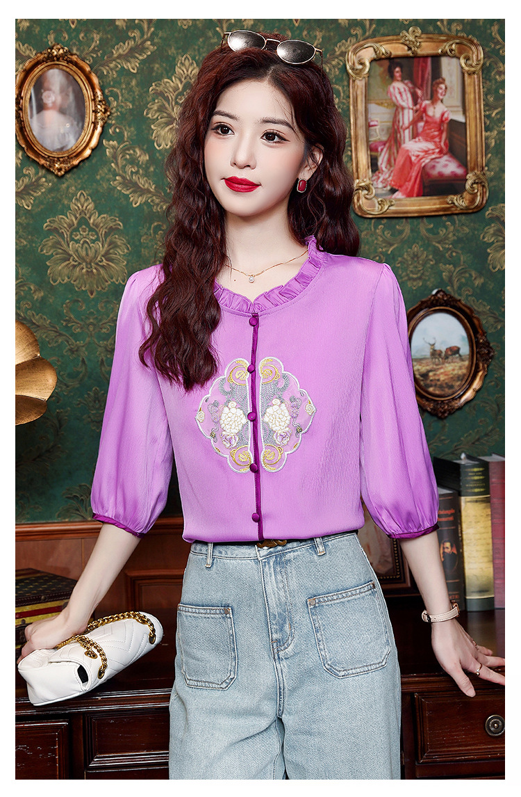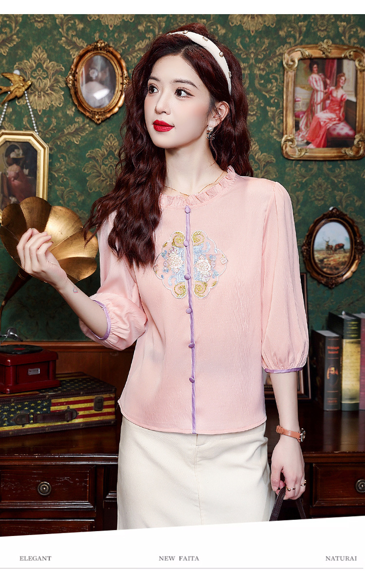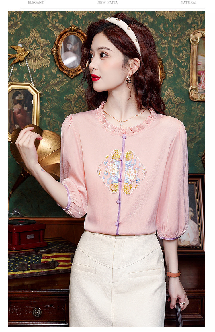 新中式国风刺绣雪纺甜美上衣K-E324N1043