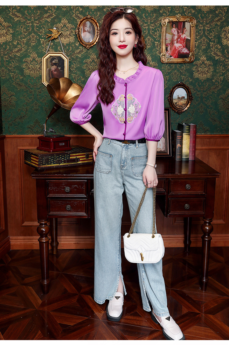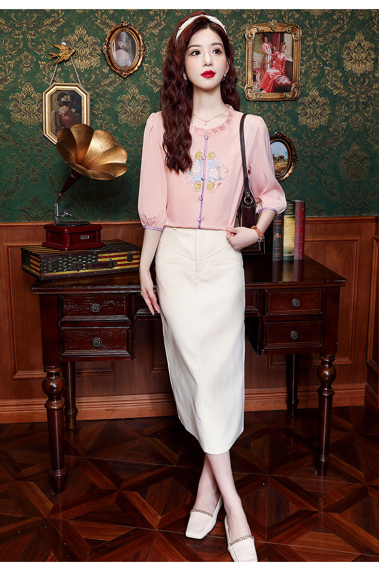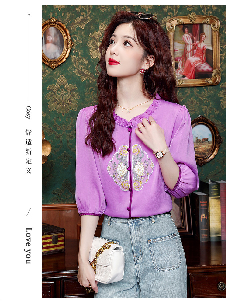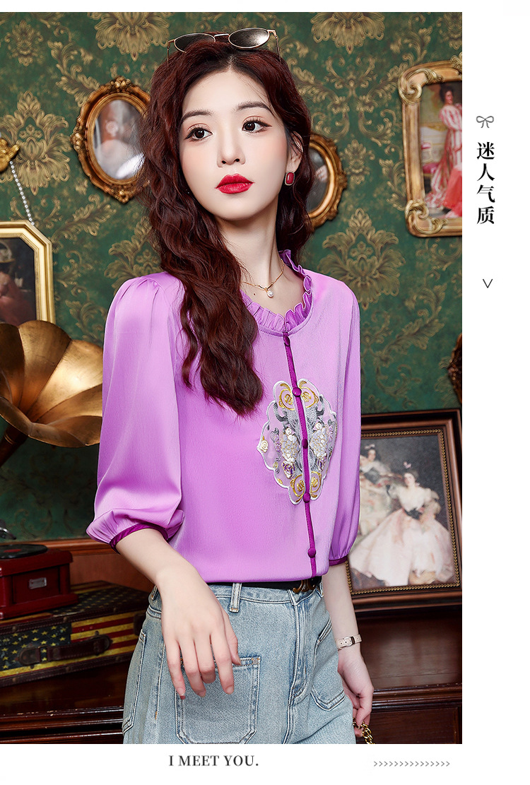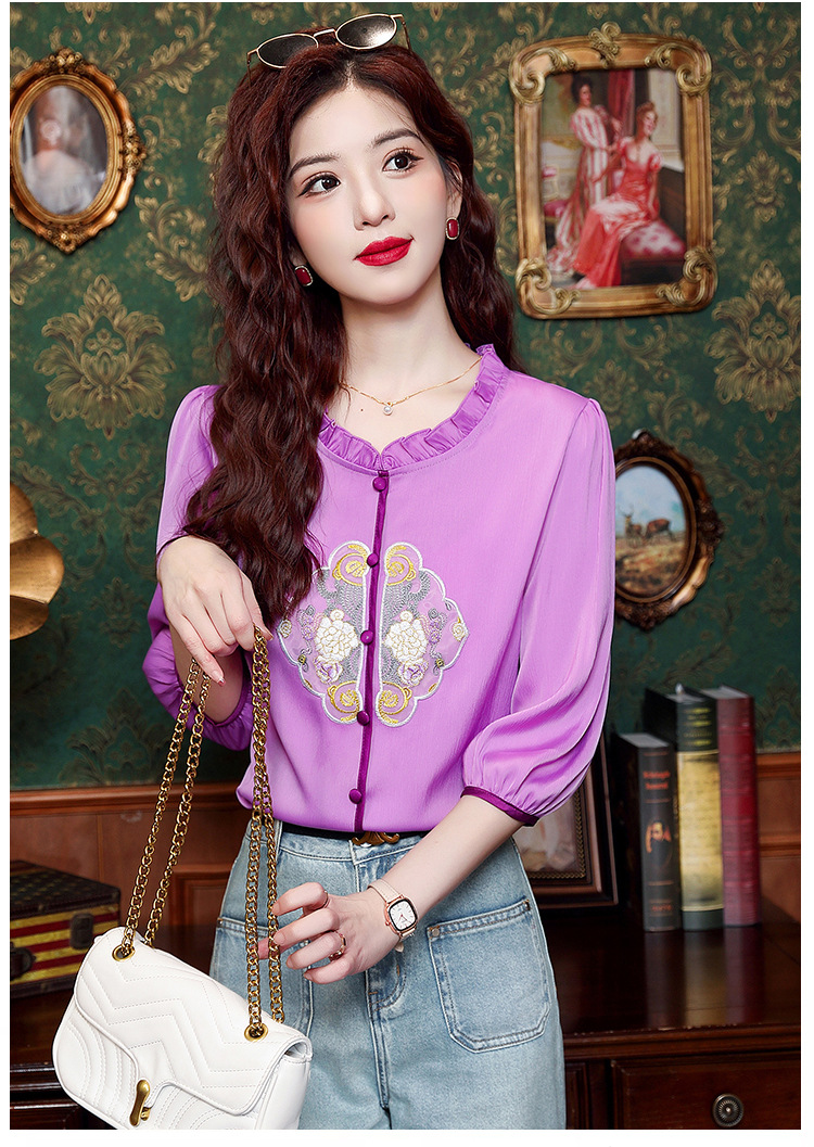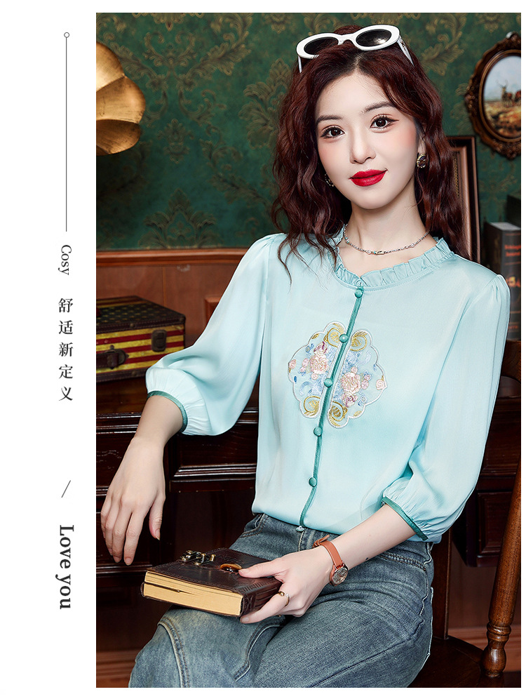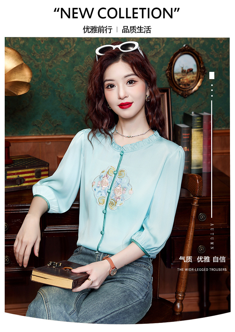新中式国风刺绣雪纺甜美上衣K-E324N1043