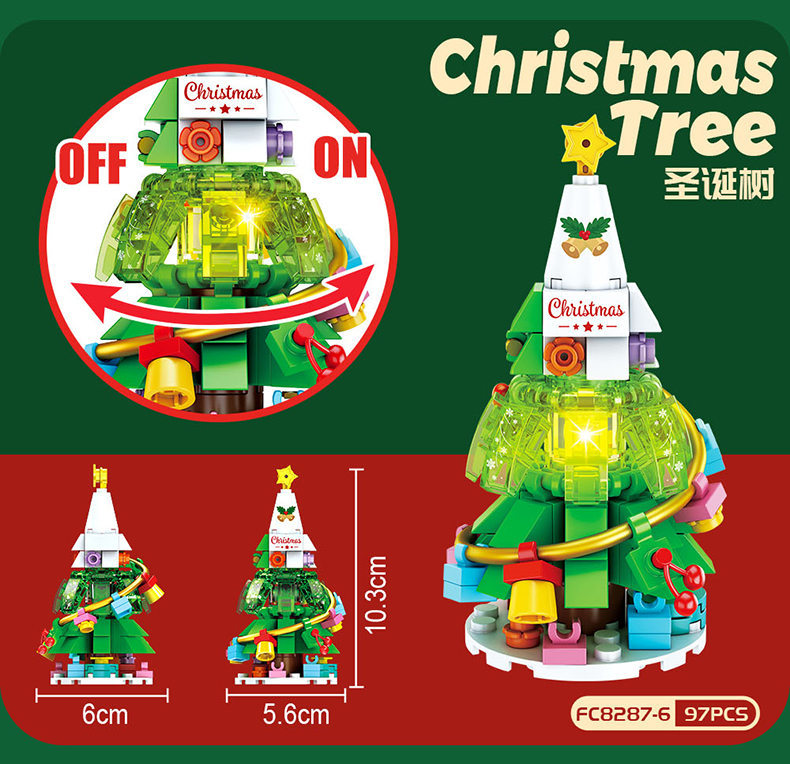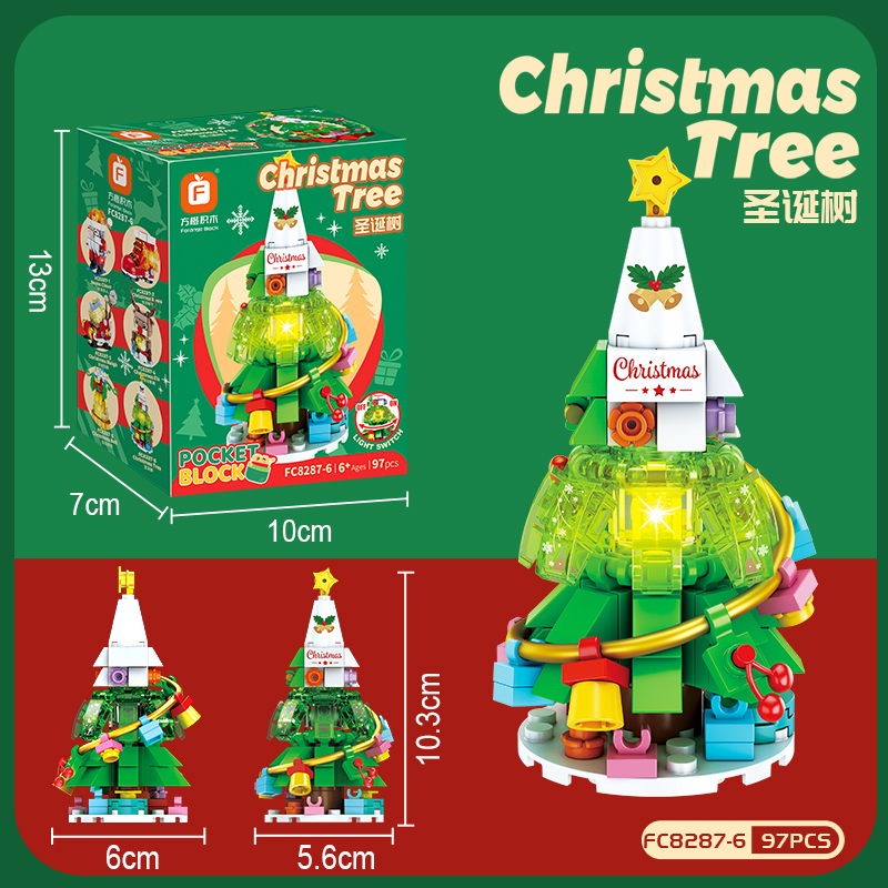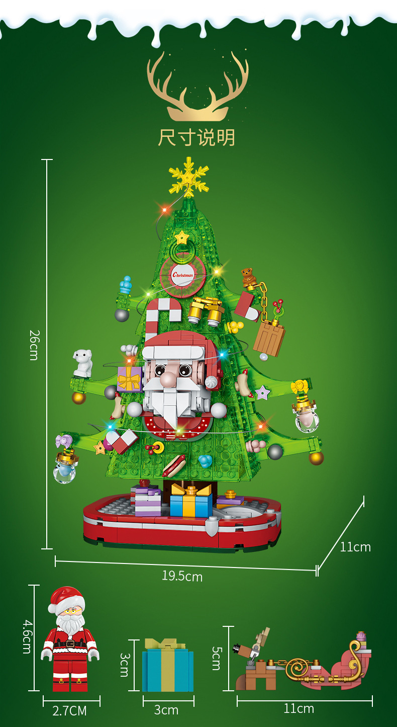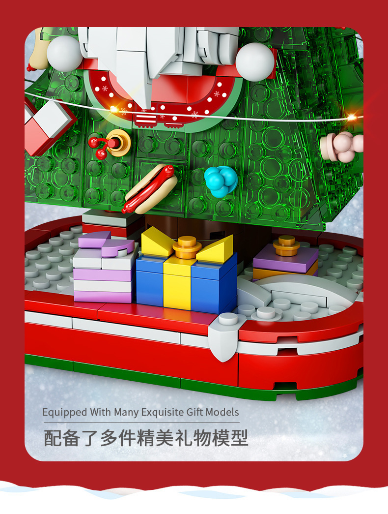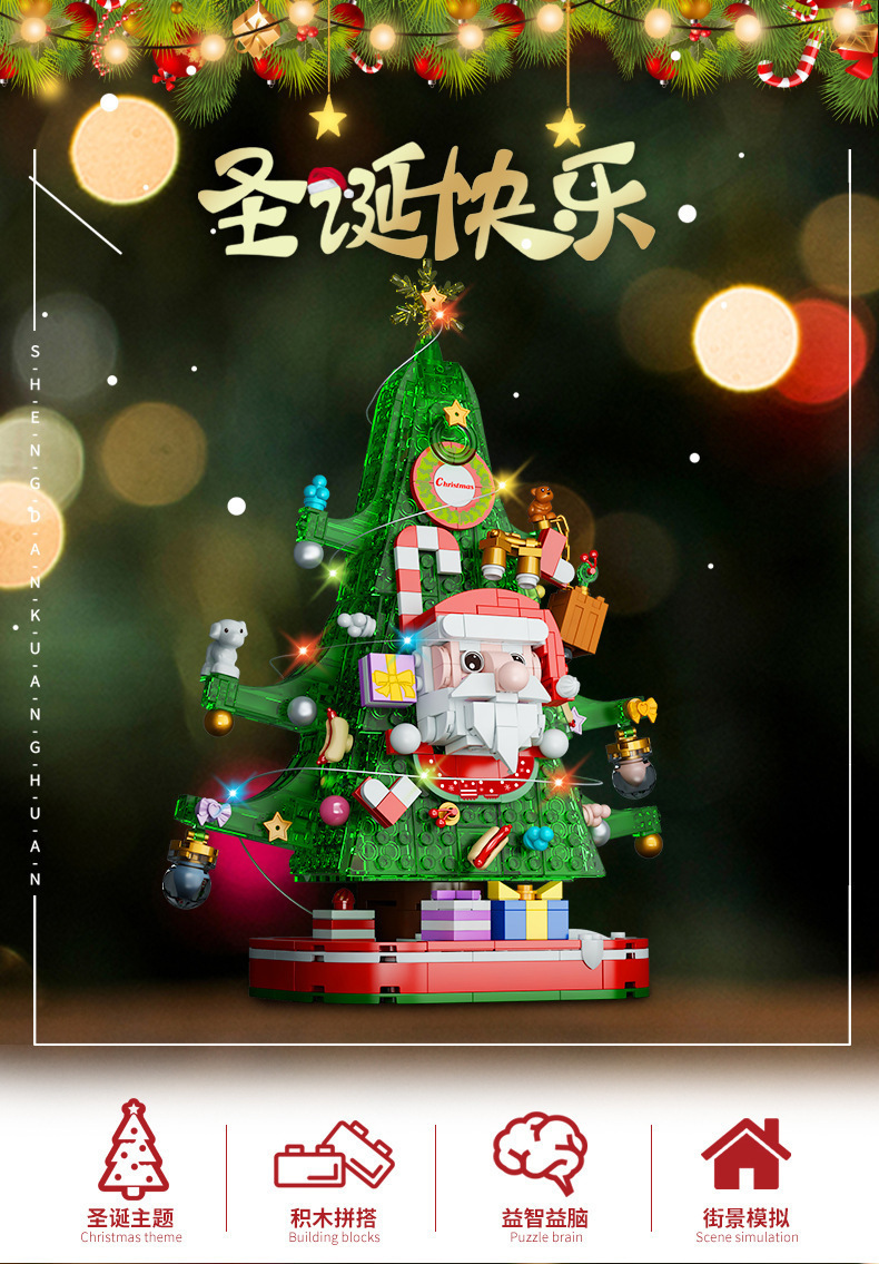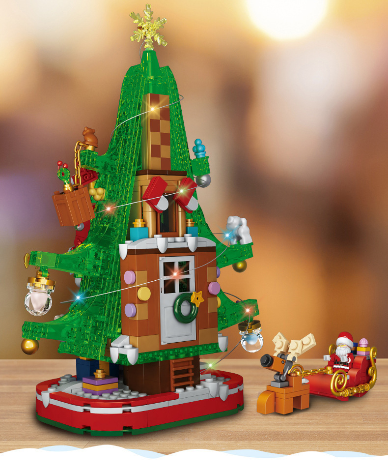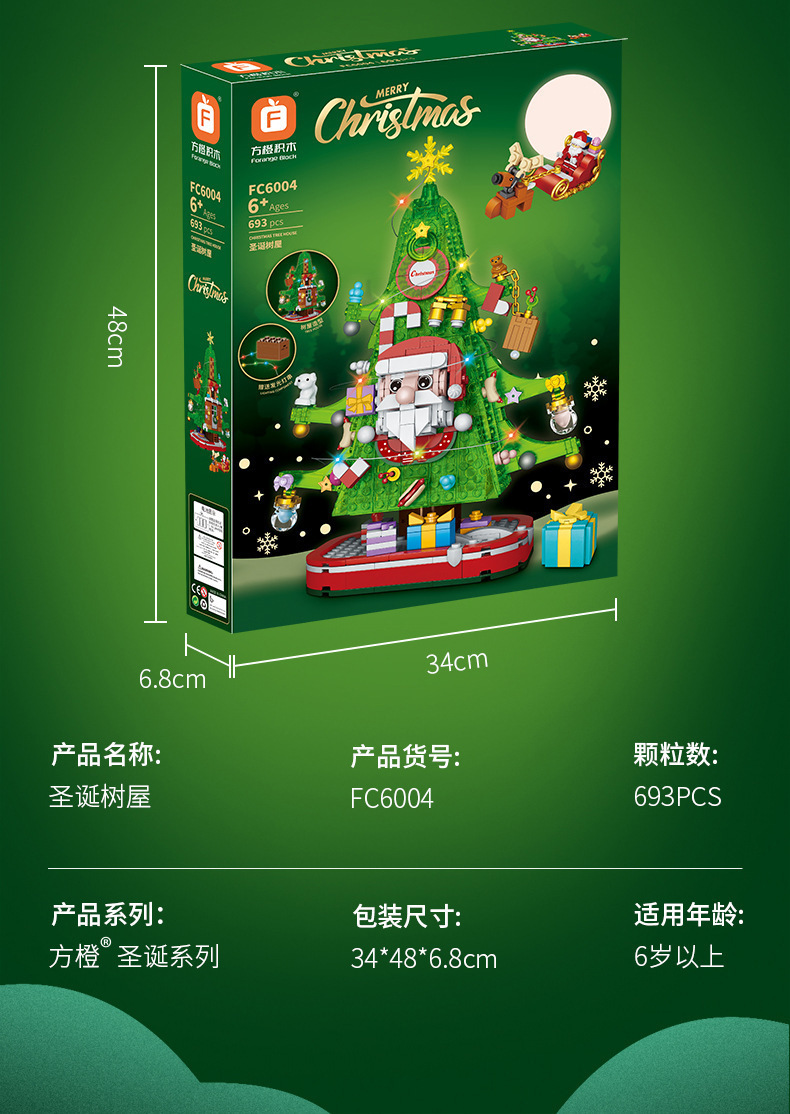 【赠发光灯串】方橙圣诞系列圣诞树屋 圣诞老人 小颗粒拼装玩具 独特的灯光造型 围绕整个树屋 儿童圣诞摆件礼物