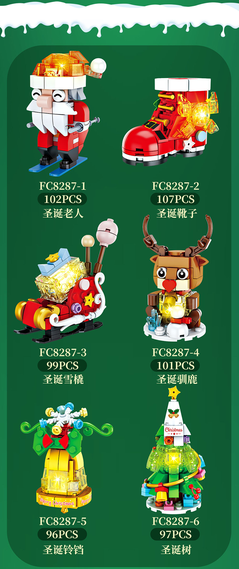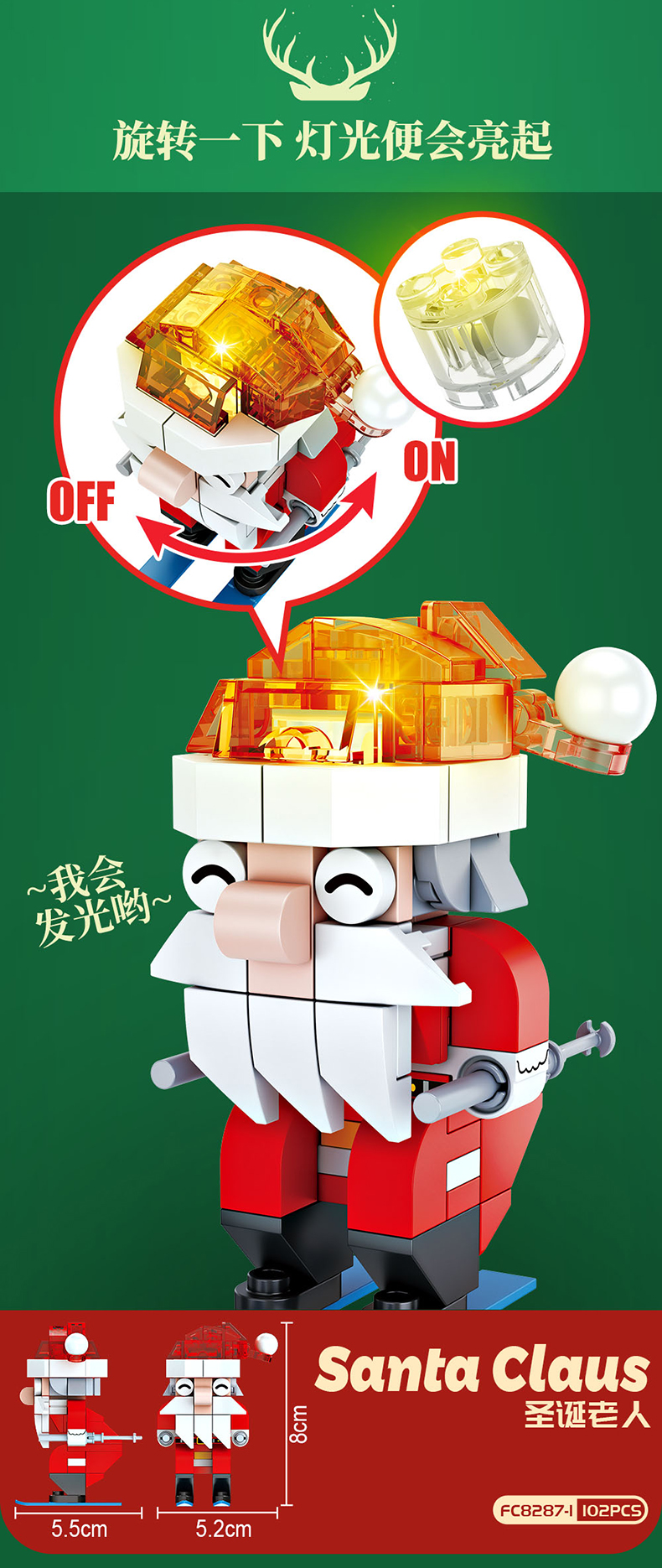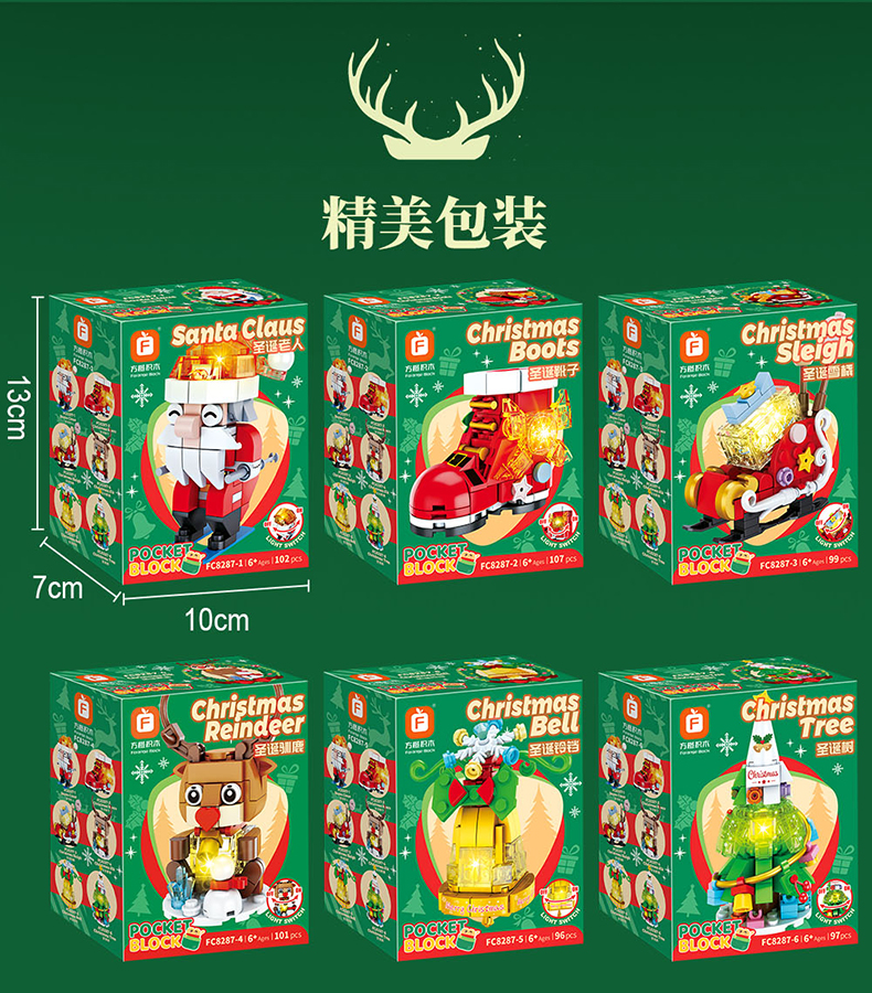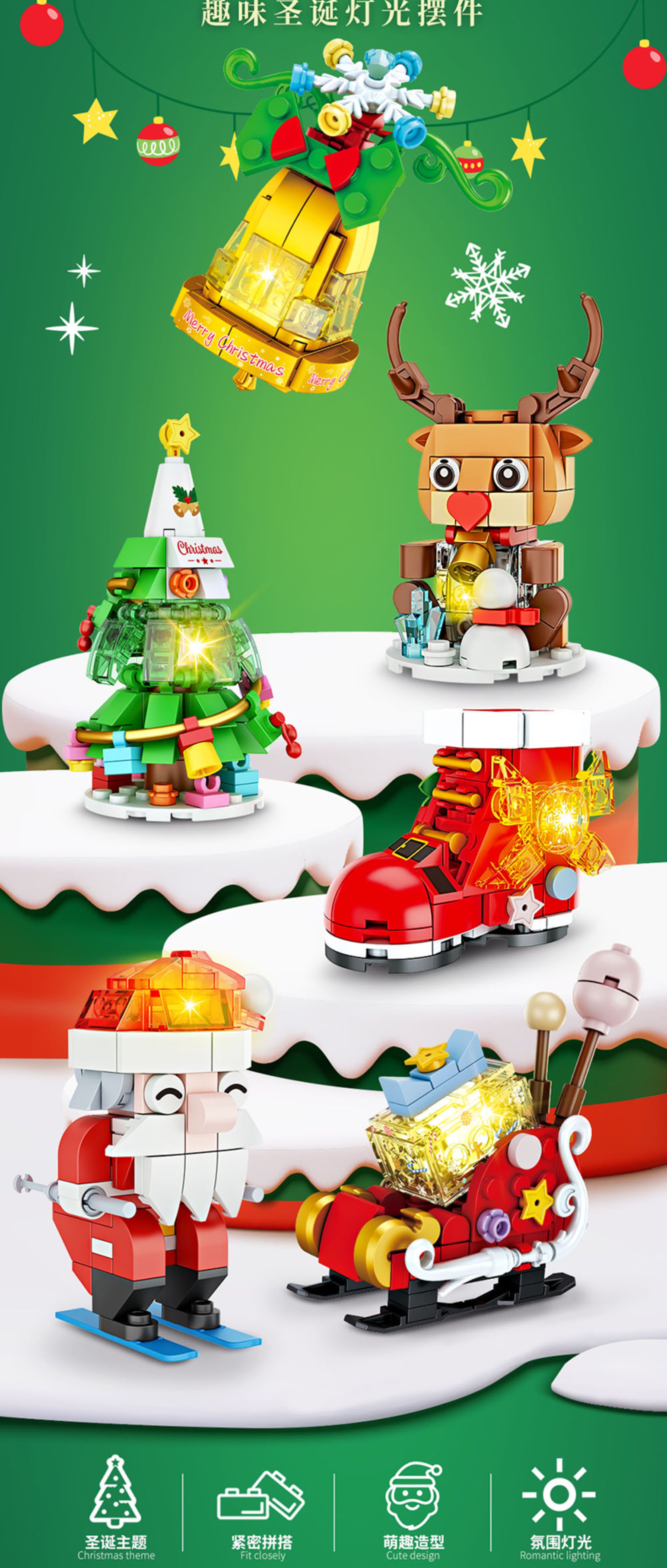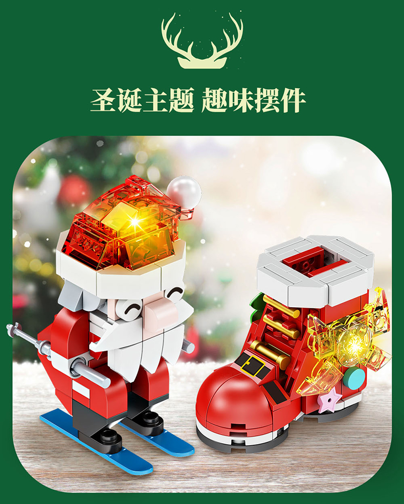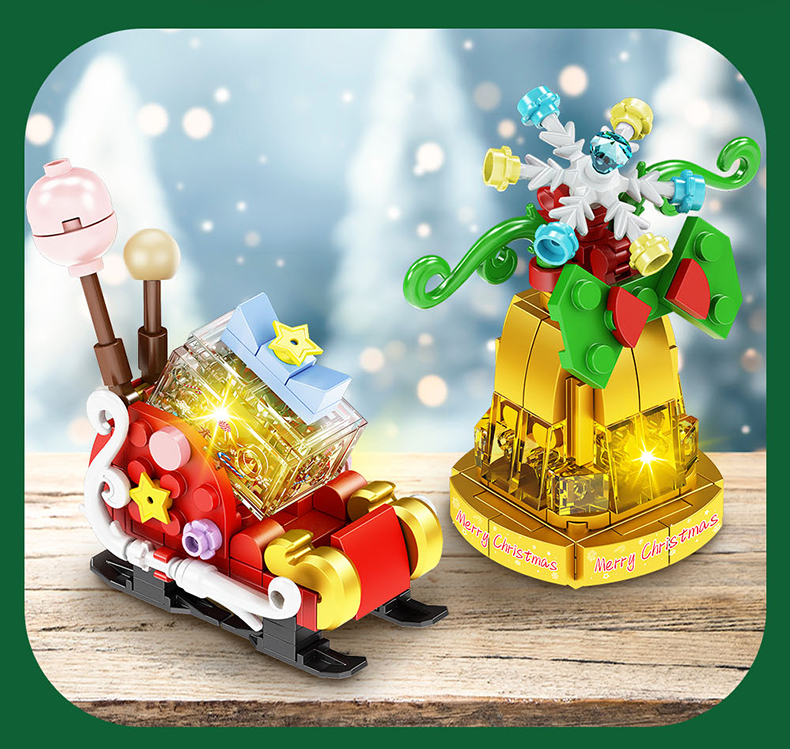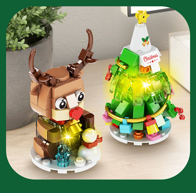 【赠发光灯串】方橙圣诞系列圣诞树屋 圣诞老人 小颗粒拼装玩具 独特的灯光造型 围绕整个树屋 儿童圣诞摆件礼物