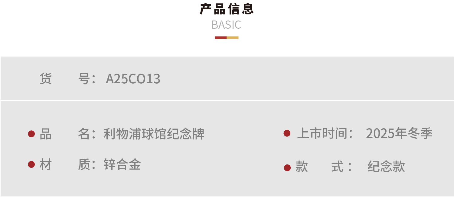 【官网同款】利物浦俱乐部 | 球馆纪念牌安菲尔德球场球迷周边