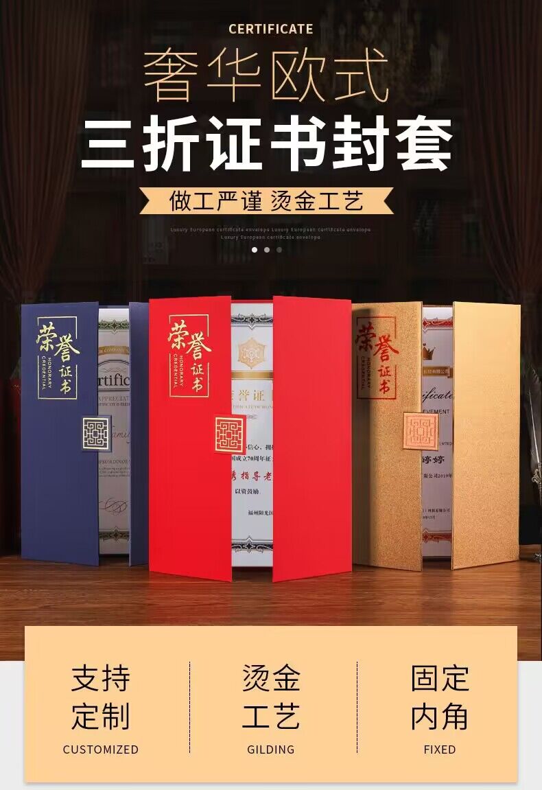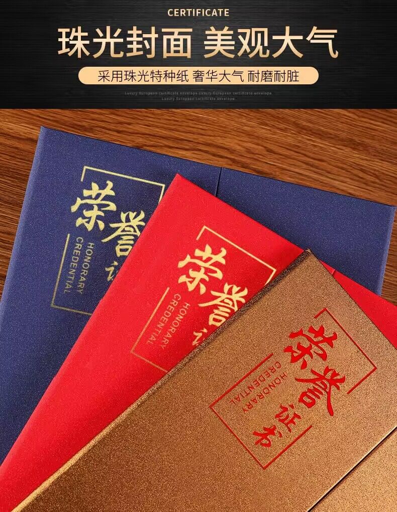 荣誉证书A4珠光面加厚磨砂高档聘书外壳封皮奖状证书定制颁奖