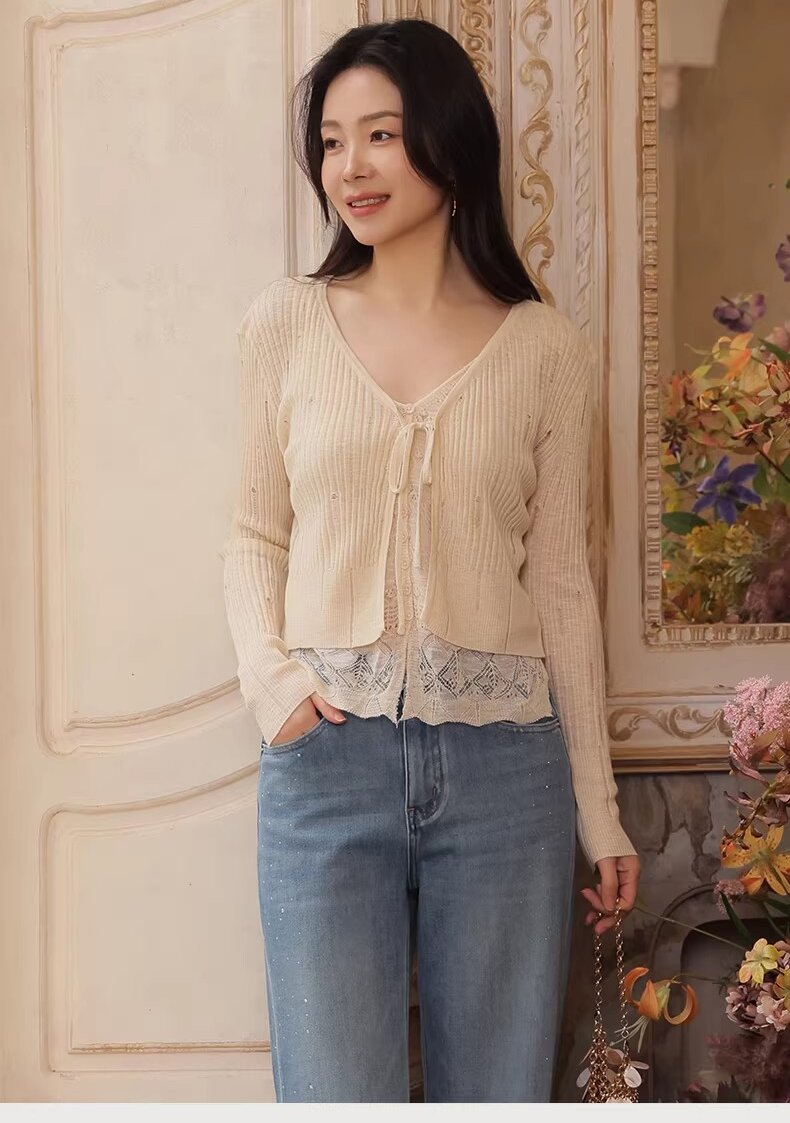【门店同款】ENJOY春季温柔木耳边开衫 169152296