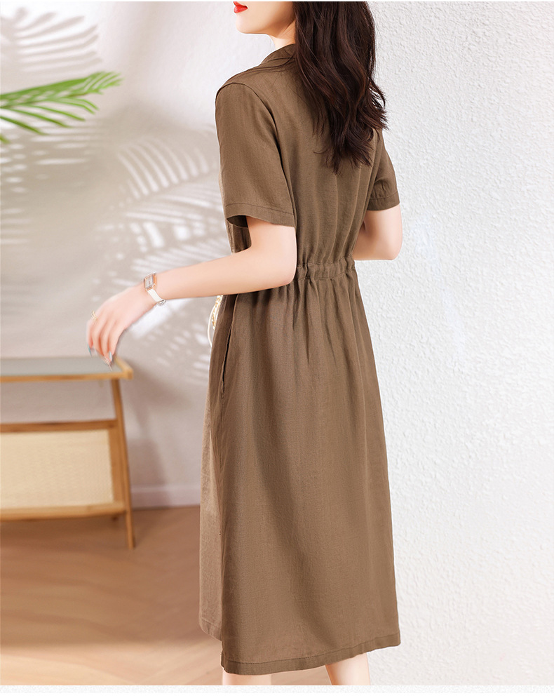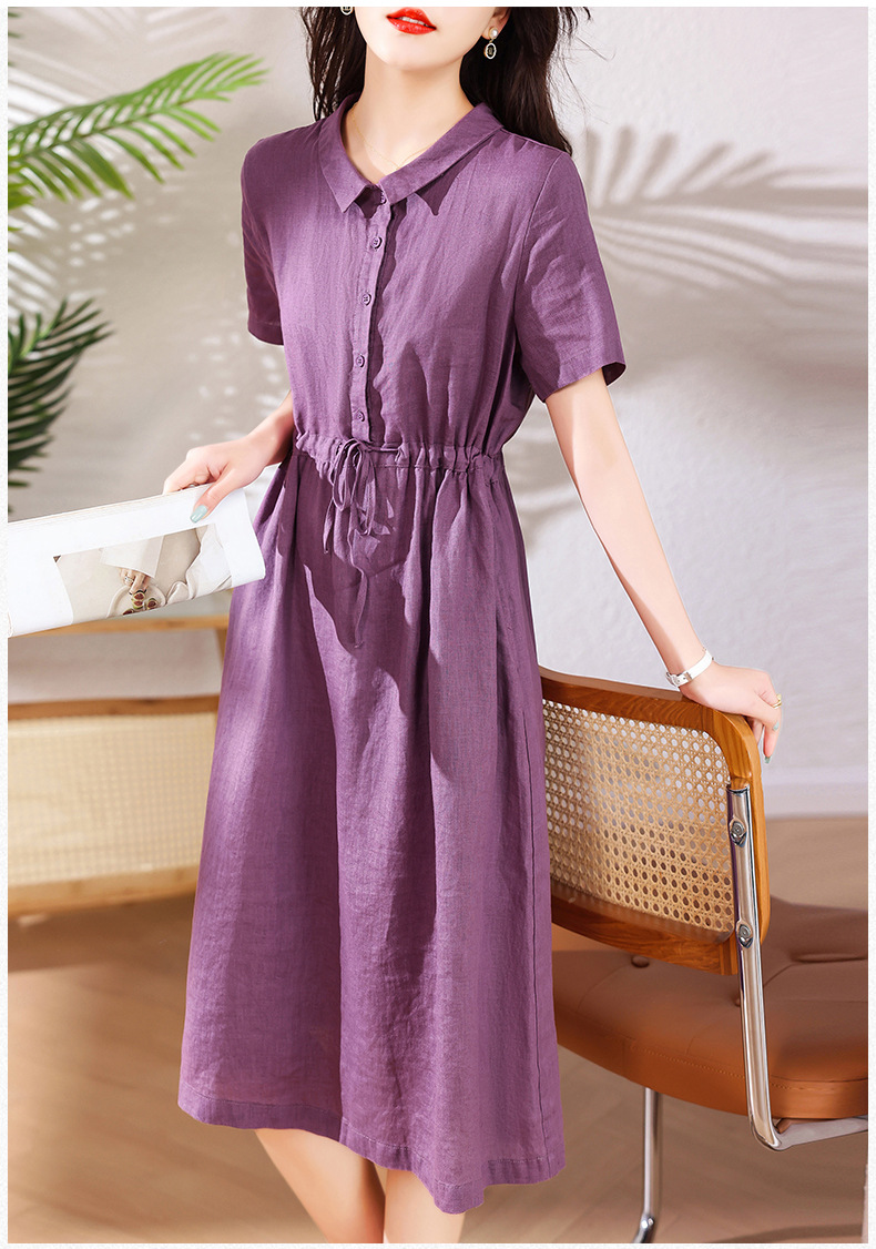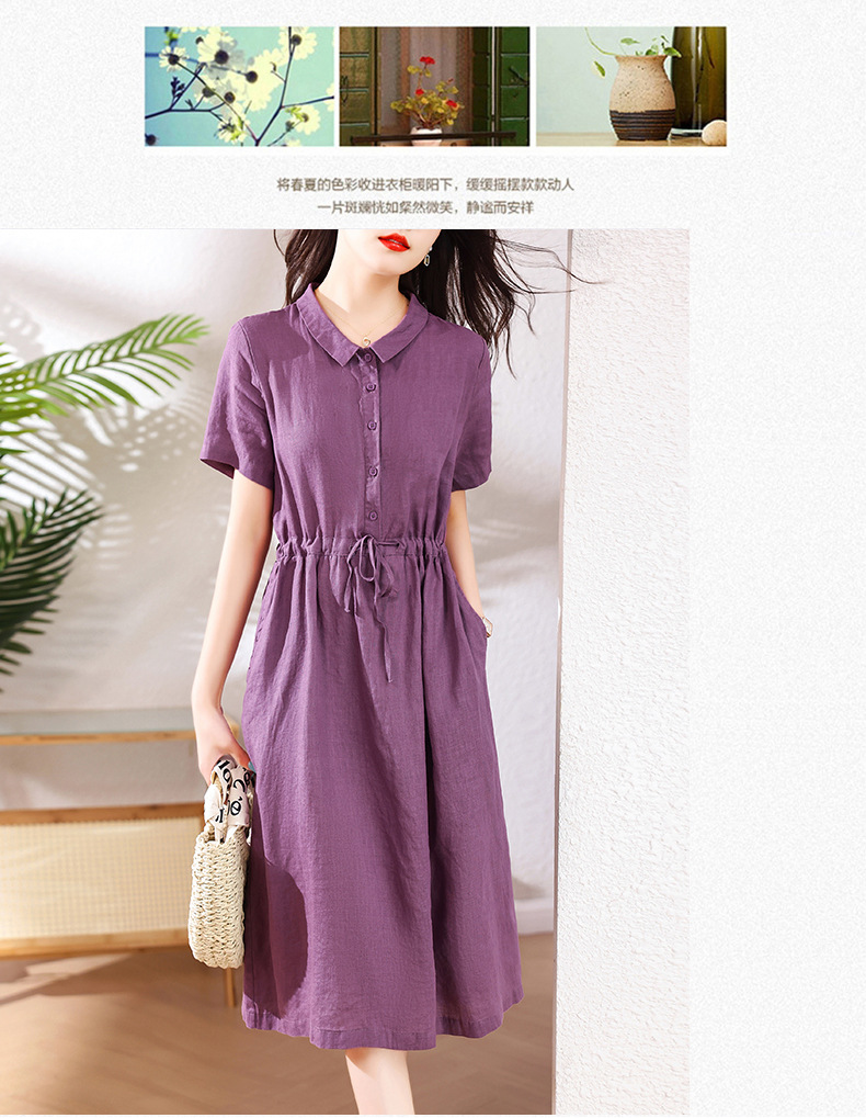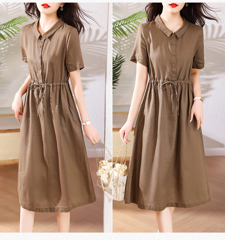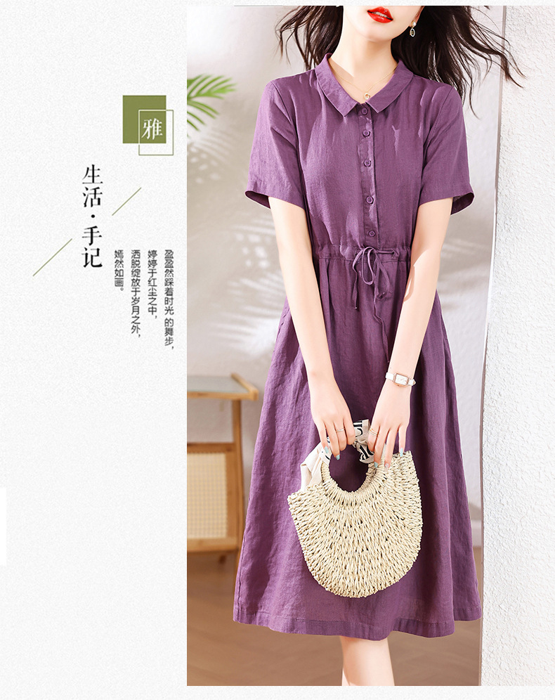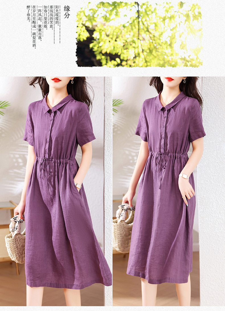 奢华时尚气质显瘦,亚麻棉绸年轻款裙子HR-SSBY6869