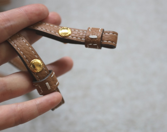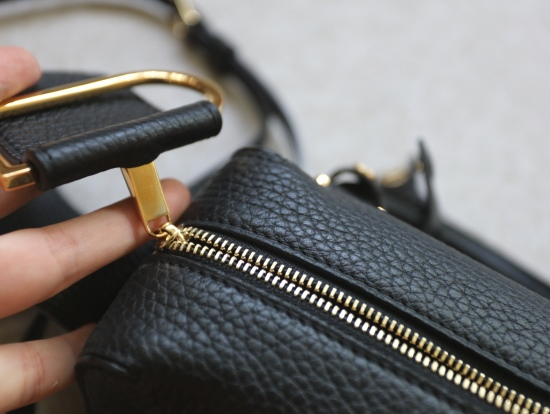 配金色五金 包扣拉链 就是D扣皮条 单侧缝制固定 不可拆
