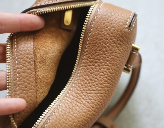 个头不大 内无托料 所以包不沉 表层压纹牛皮 内里翻毛皮