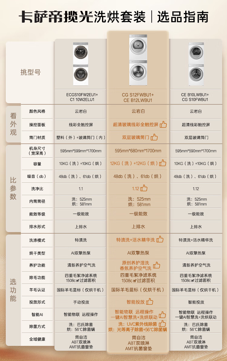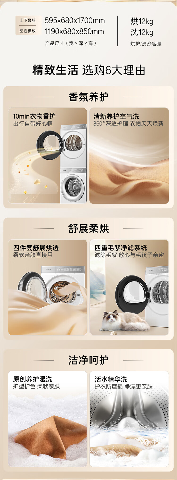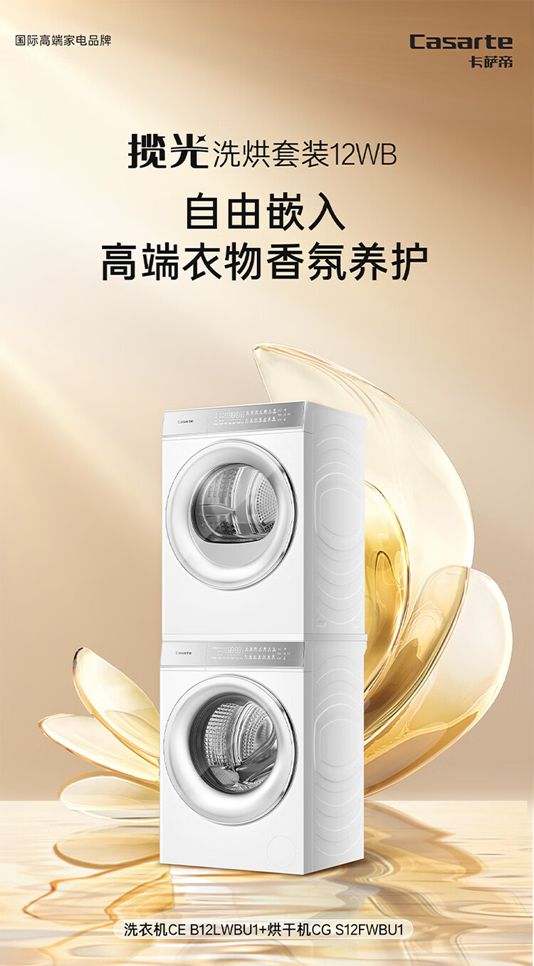 卡萨帝(Casarte)揽光WB洗烘套装 12KG滚筒洗衣机全自动+12KG双擎热泵烘干机 光等离子 家电国家补贴 12LWB+12FWB