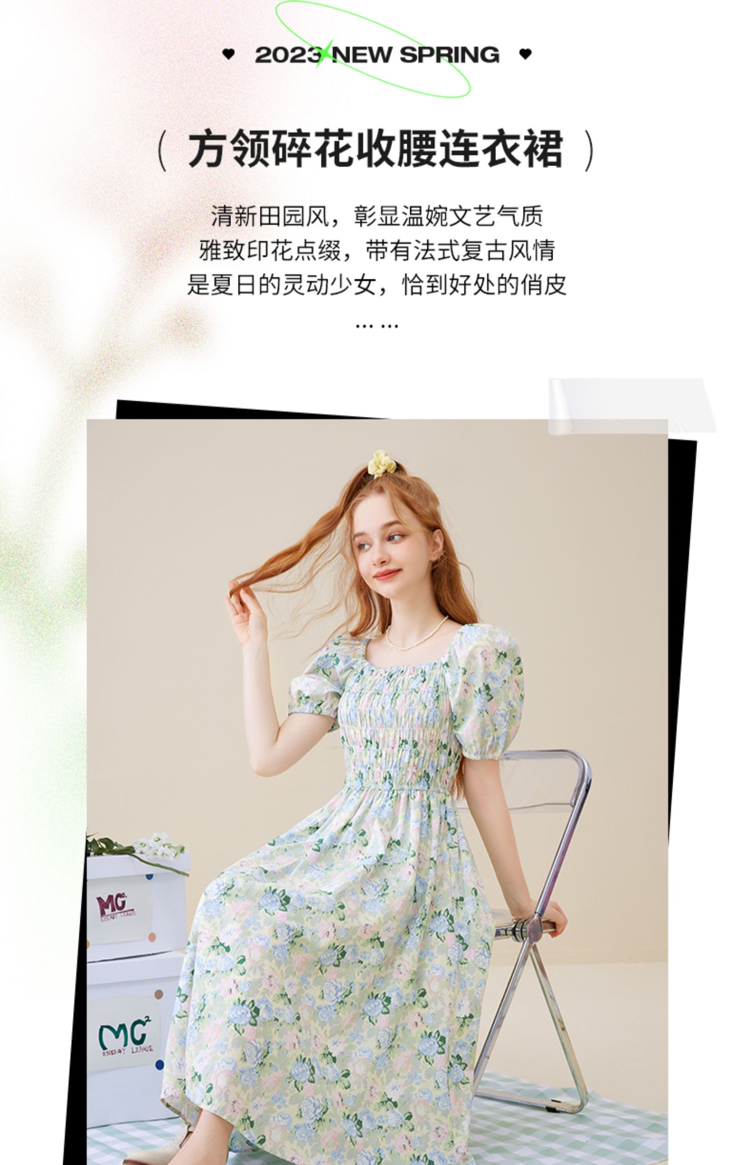 mc2波点碎花连衣裙套装女秋季新款茶歇法式收腰吊带裙气质显瘦