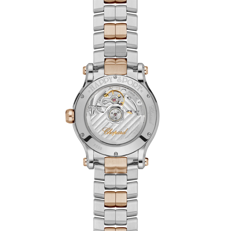 镜面材质 | 蓝宝石水晶玻璃 | 表盘 | 18K玫瑰金和精钢表壳 银灰表盘,中央饰有玑镂雕纹,饰有玑镂雕纹,7颗灵动钻石,罗马数字时标和锥形时针和分针,秒针 日期显示 透底 |