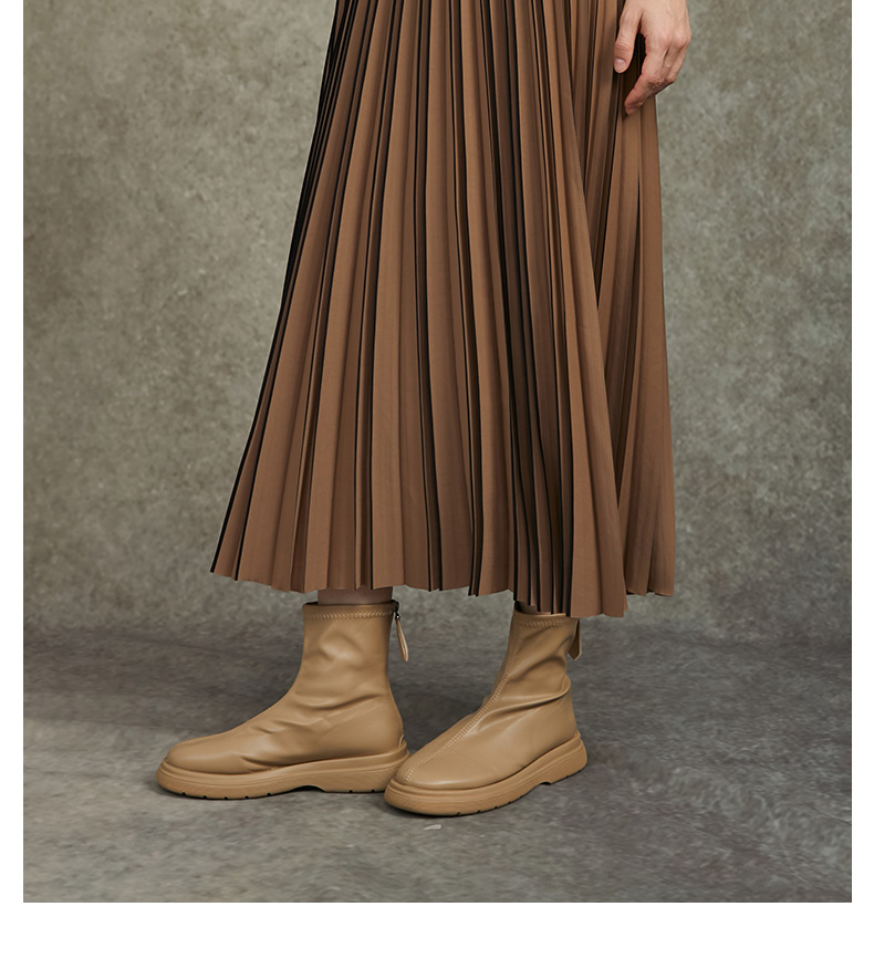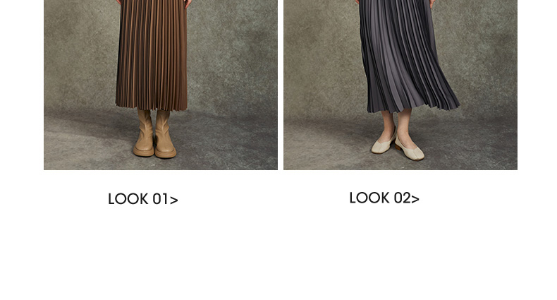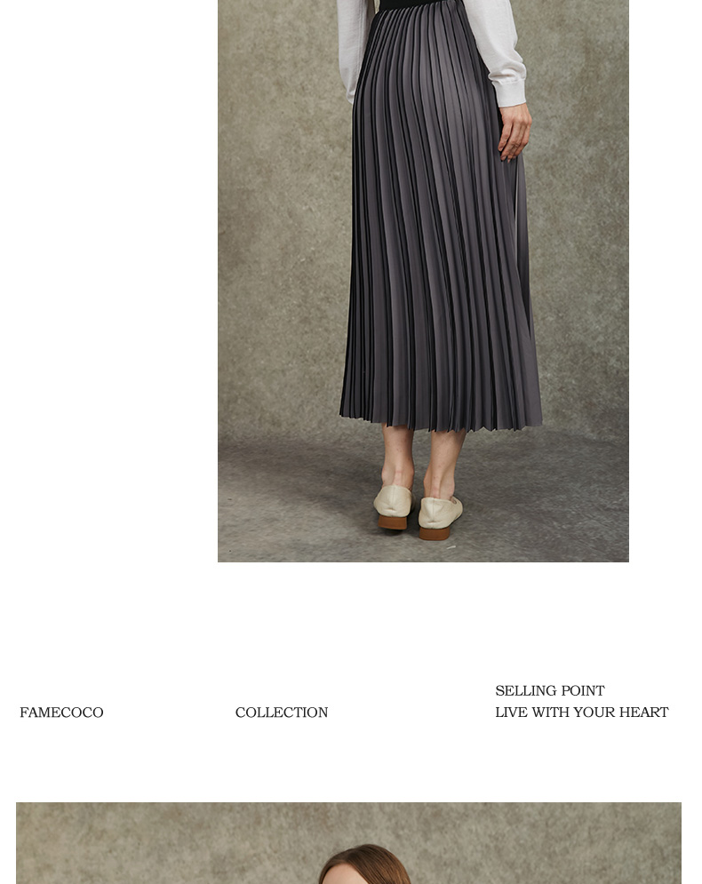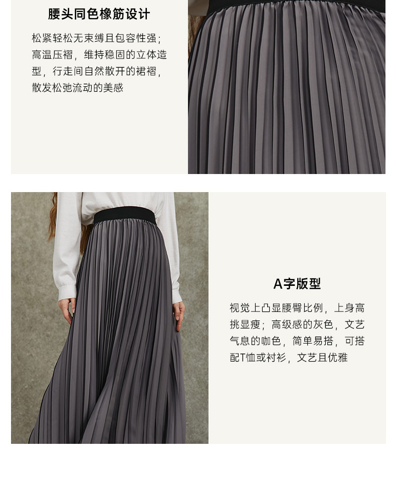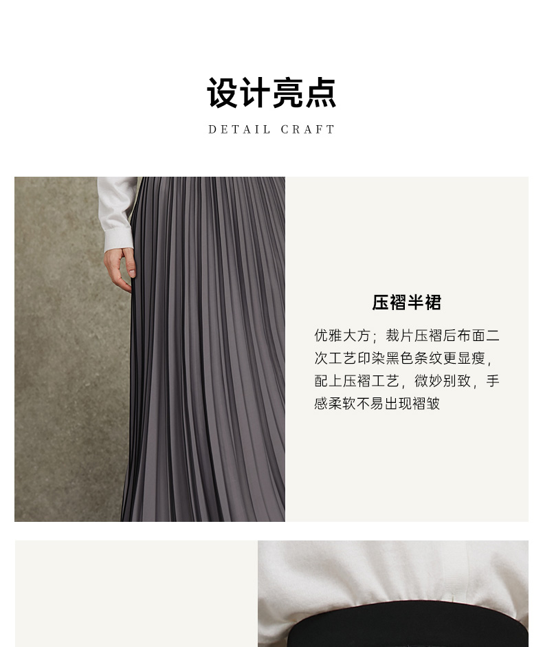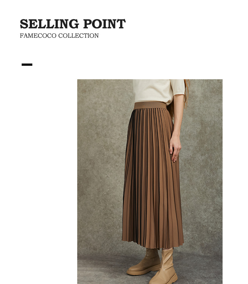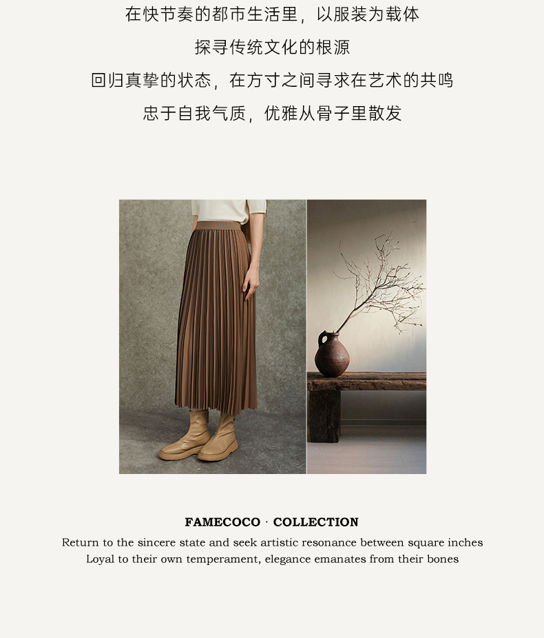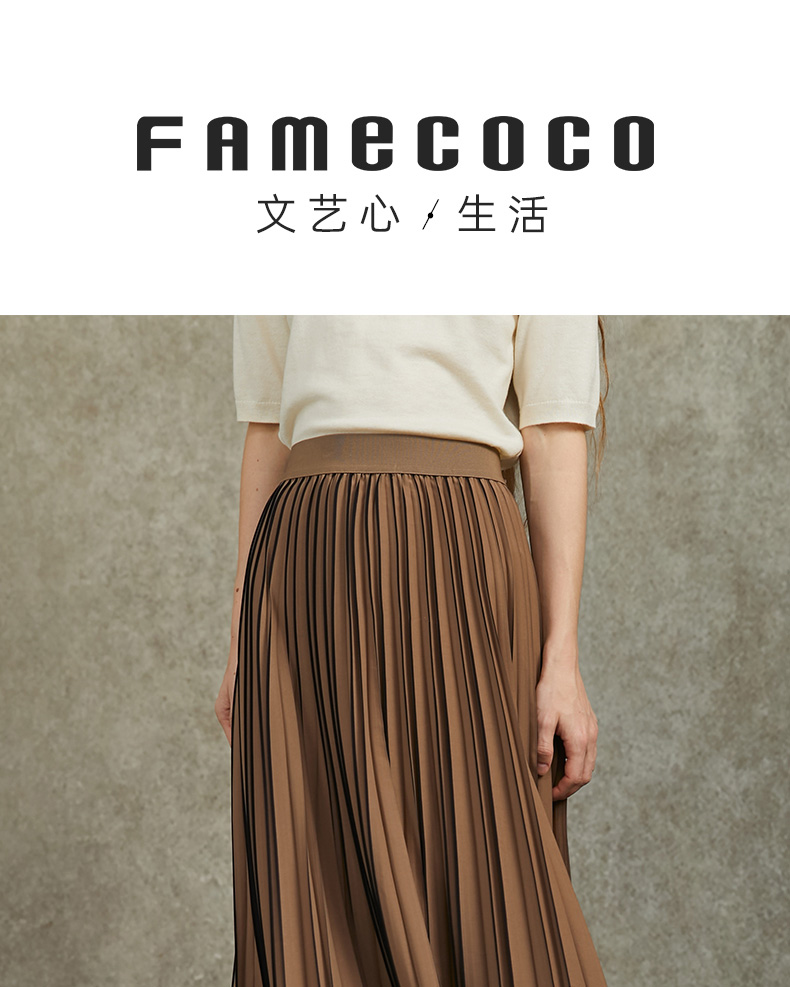 Famecoco范可儿压褶优雅半裙简约文艺长款A字裙FAC6HA001