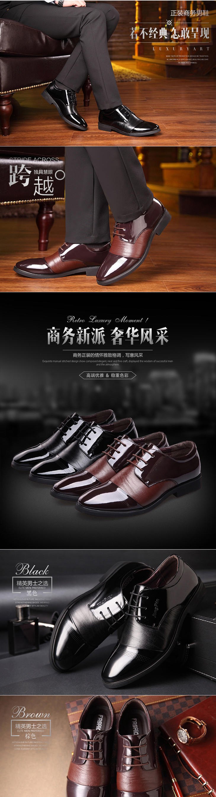 【服饰鞋包】男鞋子男士商务正装潮流皮鞋男尖头透气系带低帮鞋黑