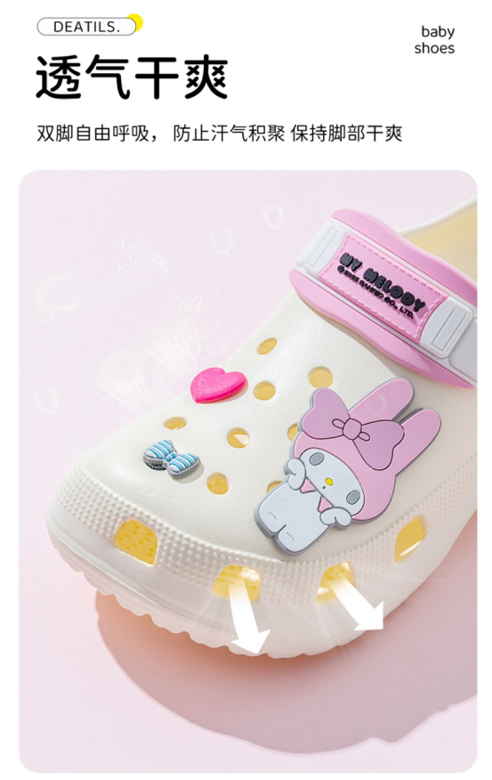 既是拖鞋也是凉鞋 超好穿‼️ 你家小宝的拖鞋是不是该换啦‼️材质很轻很软,上脚仿佛无感,柔软又防滑💪 搭配可爱卡通的装饰 脚感一级棒‼️让宝贝天天外出奔跑不热脚✔️ 居家穿着也能感受到极致的舒适✨ 超萌的三丽鸥卡通装饰 轻松俘获小朋友的童心