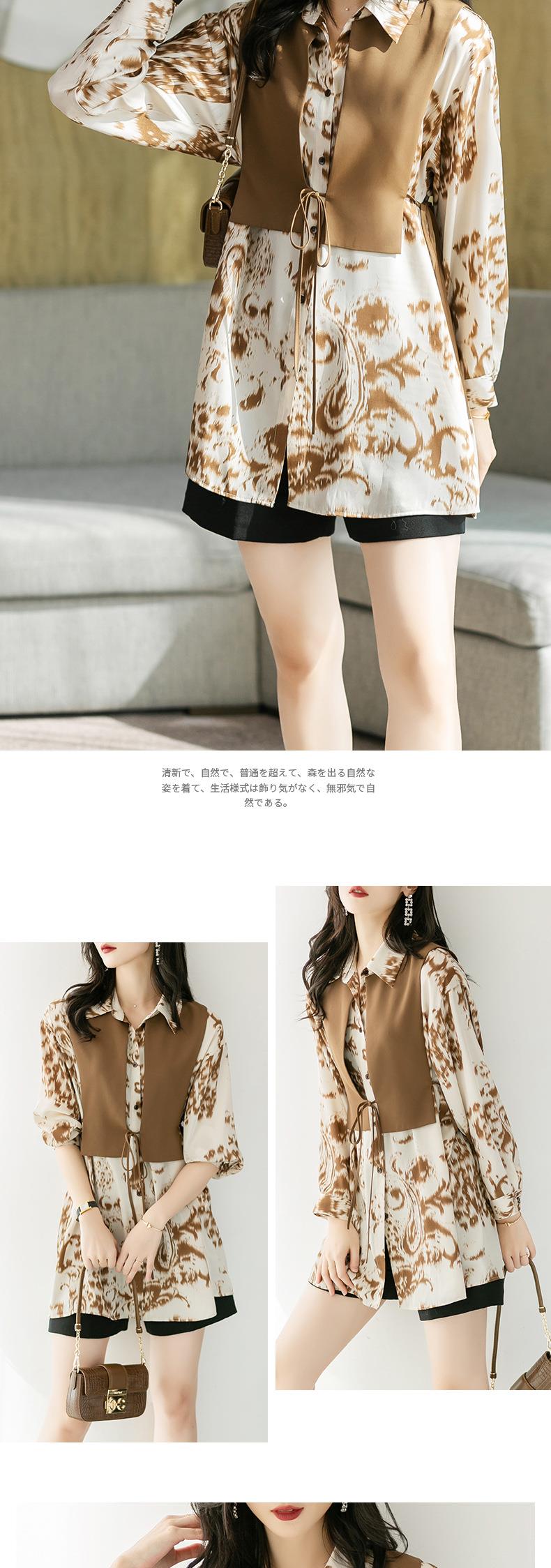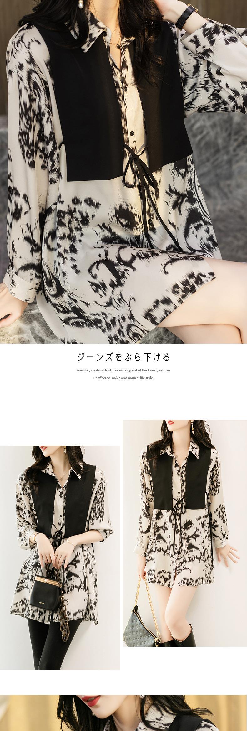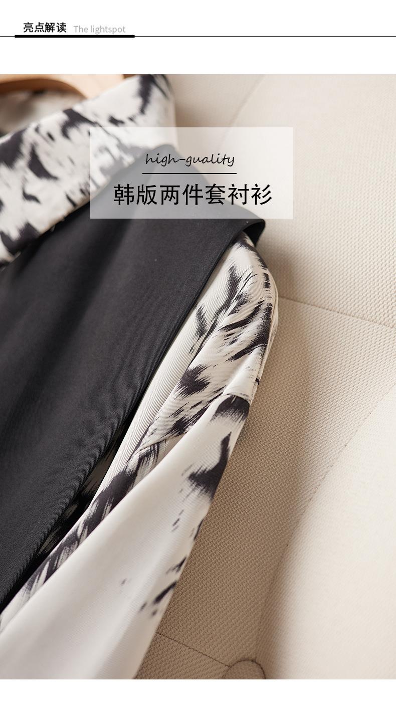 港风2023秋装新款两件套衬衫女长袖中长款女士衬衣2105