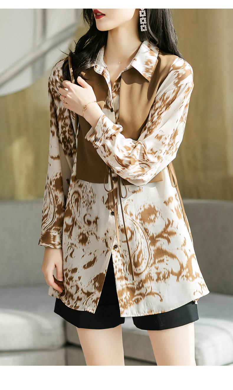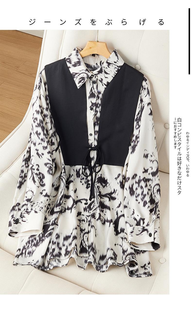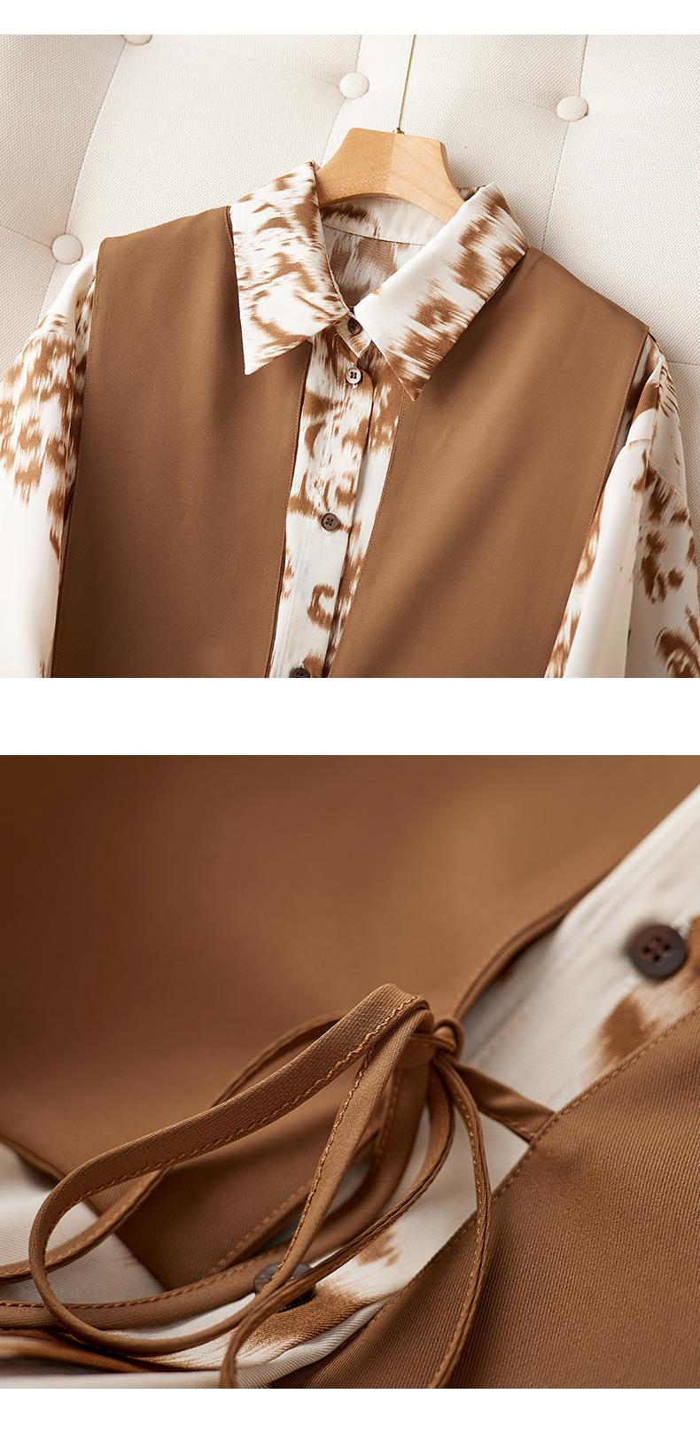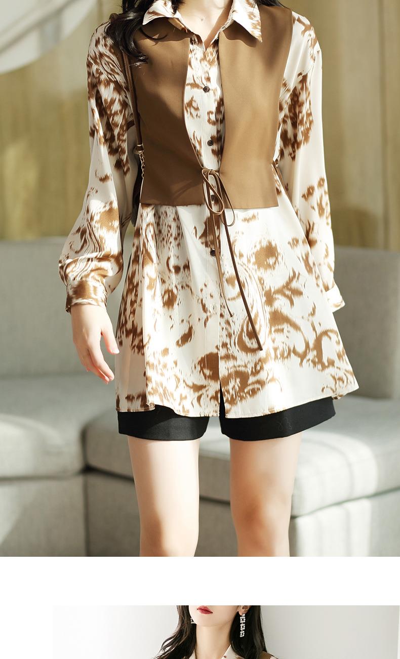 港风2023秋装新款两件套衬衫女长袖中长款女士衬衣2105