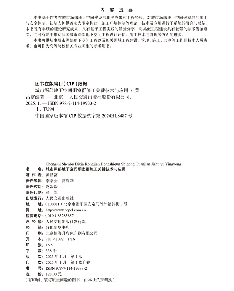 书名:城市深部地下空间硐室群施工关键技术与应用