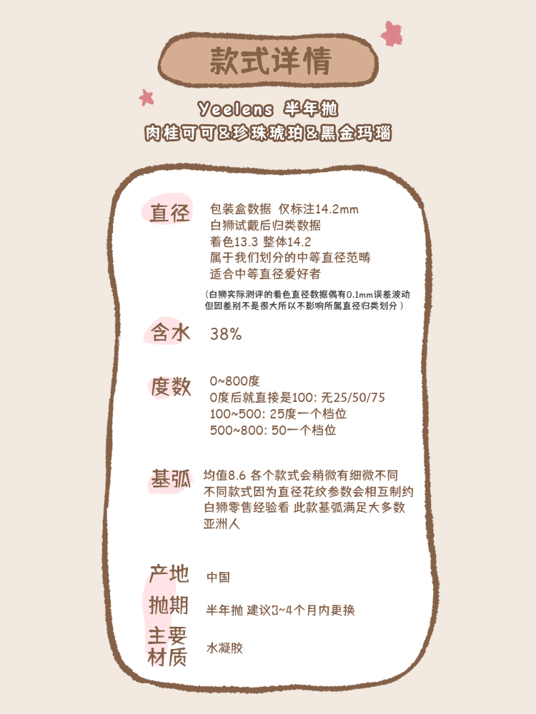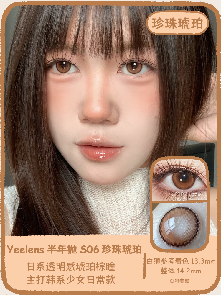 Yeelens旗下 半年抛· S05肉桂可可&S06珍珠琥珀&S07黑金玛瑙 14.2mm白狮参考着色中等直径 2片