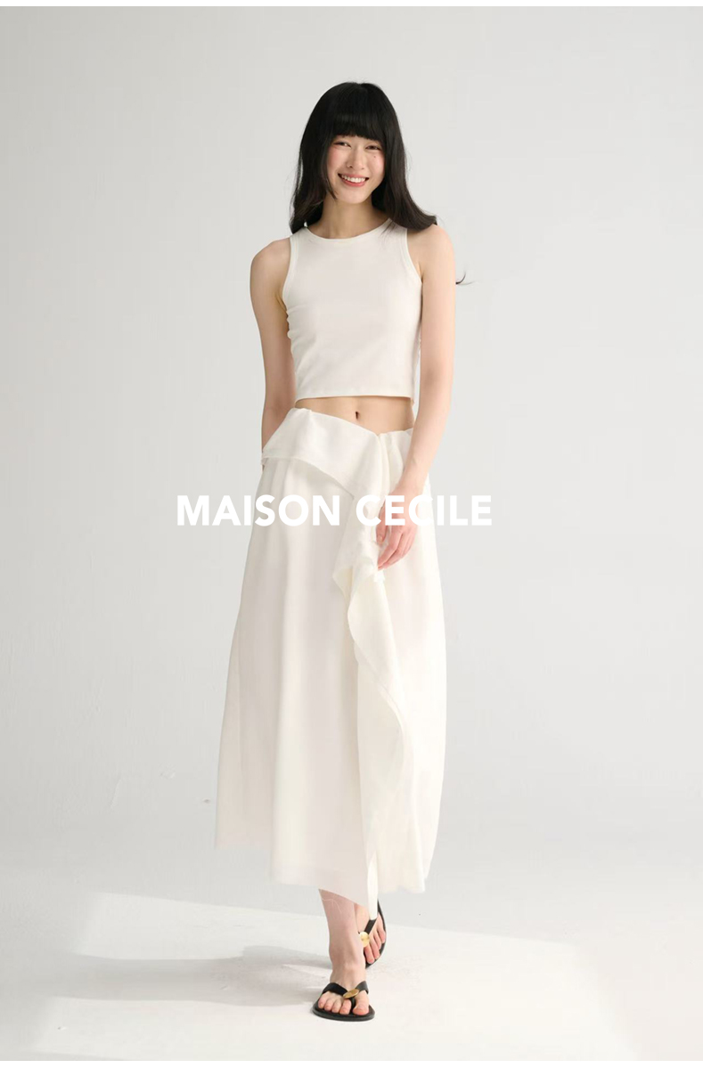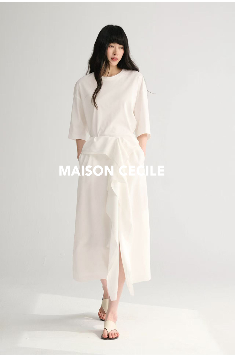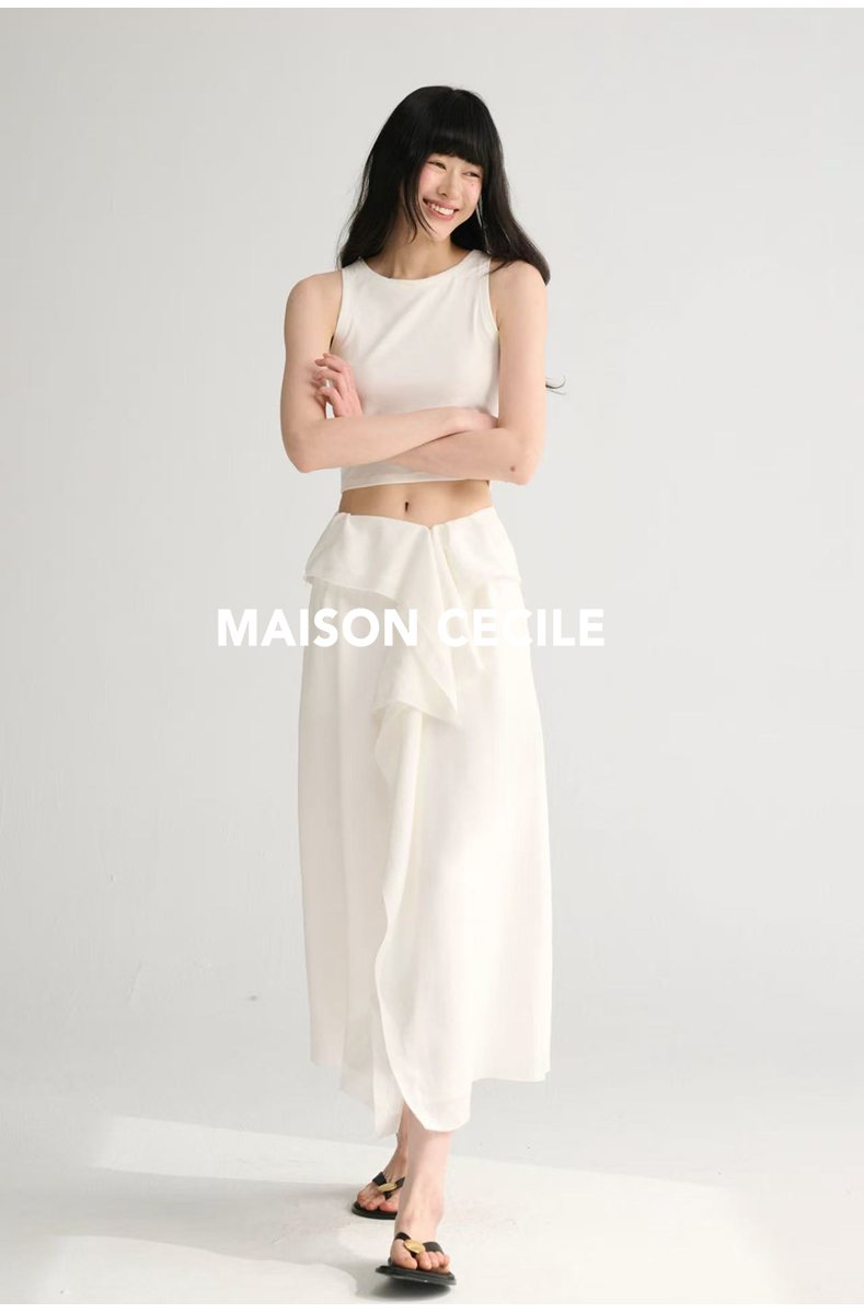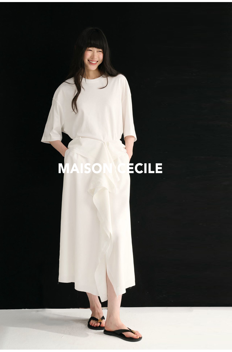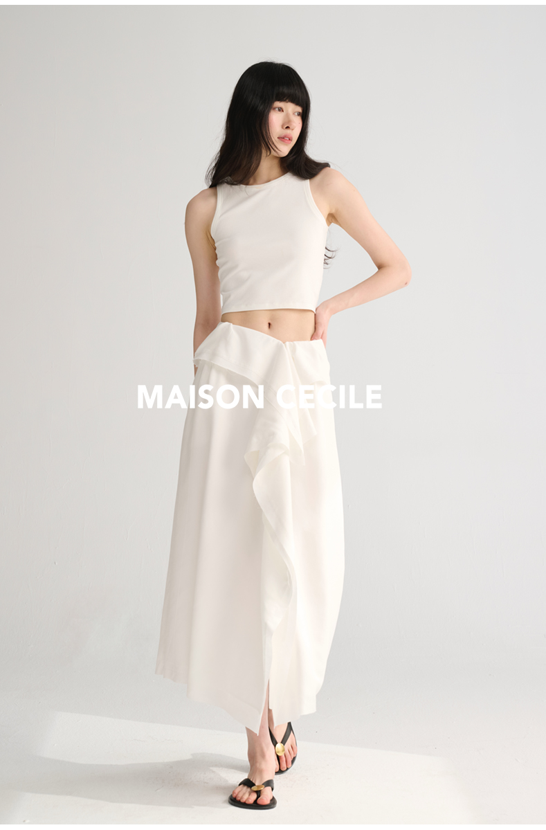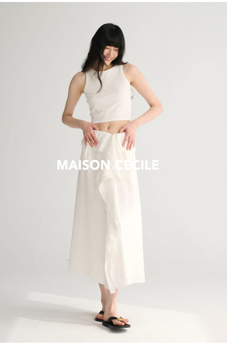 MAISON CECILE 法式极简立体荷叶边设计感开衩半身裙长款