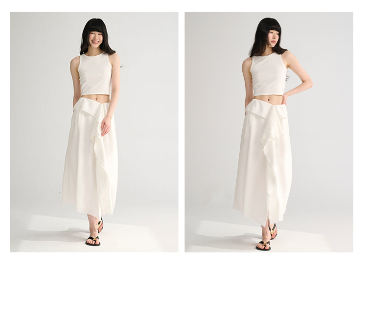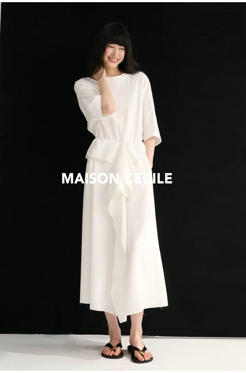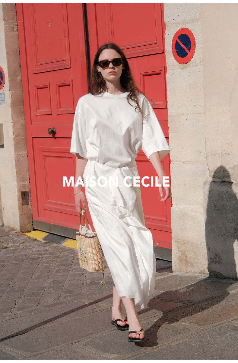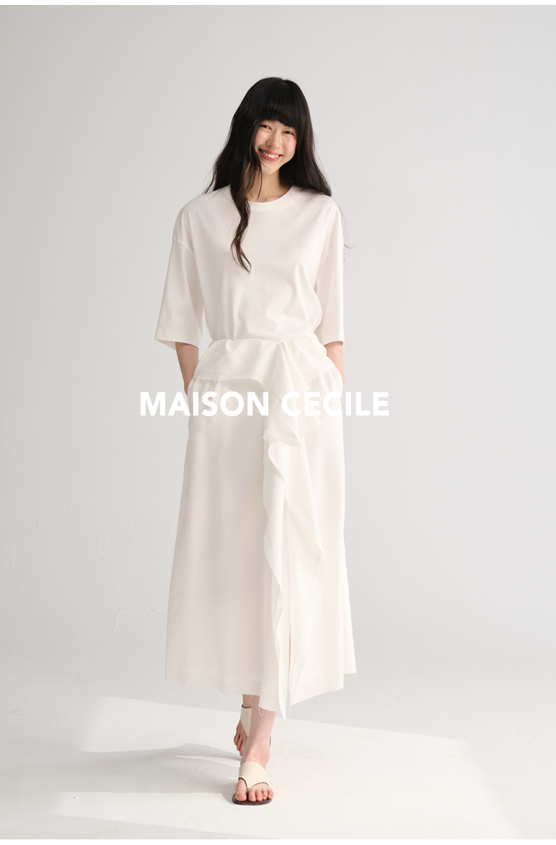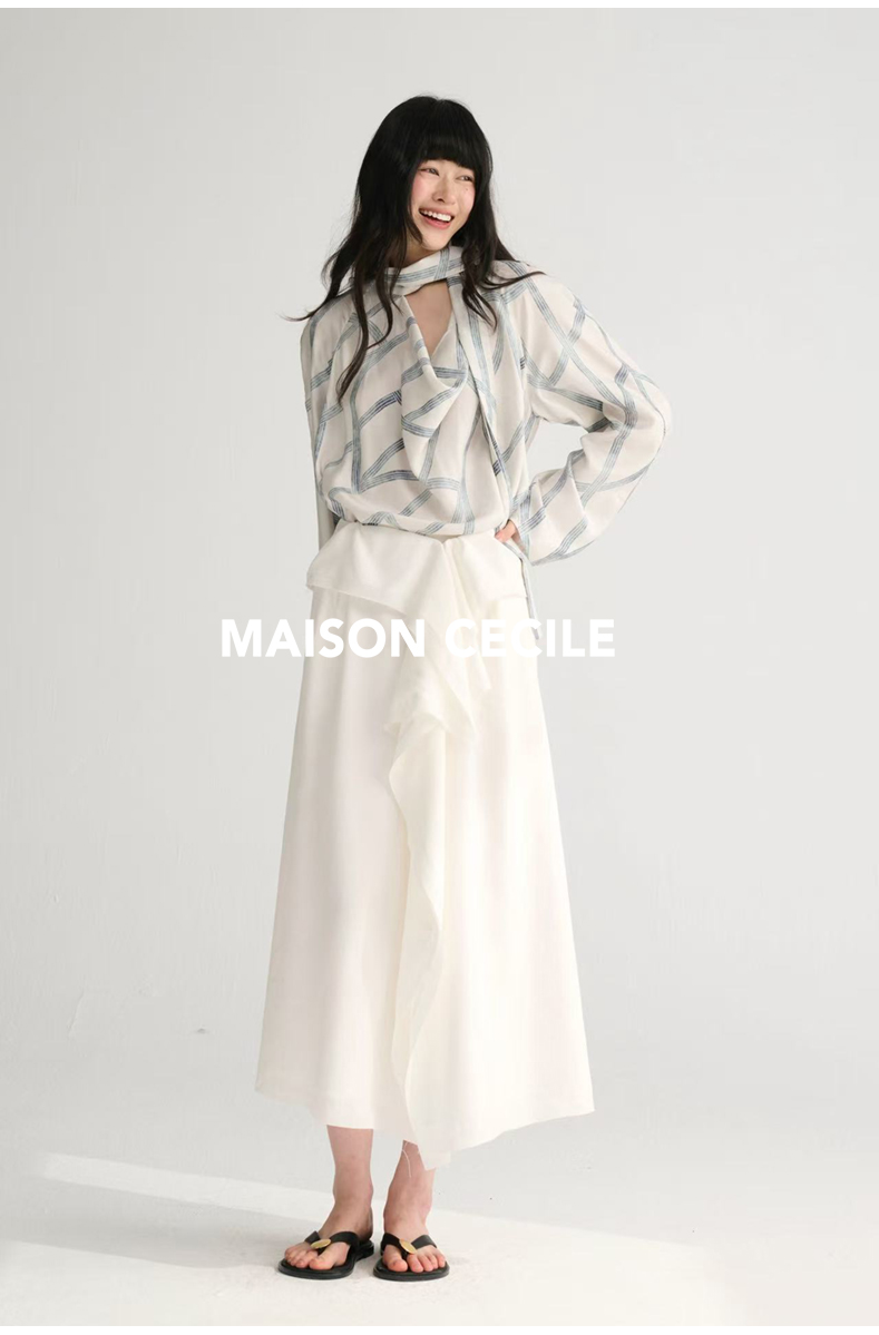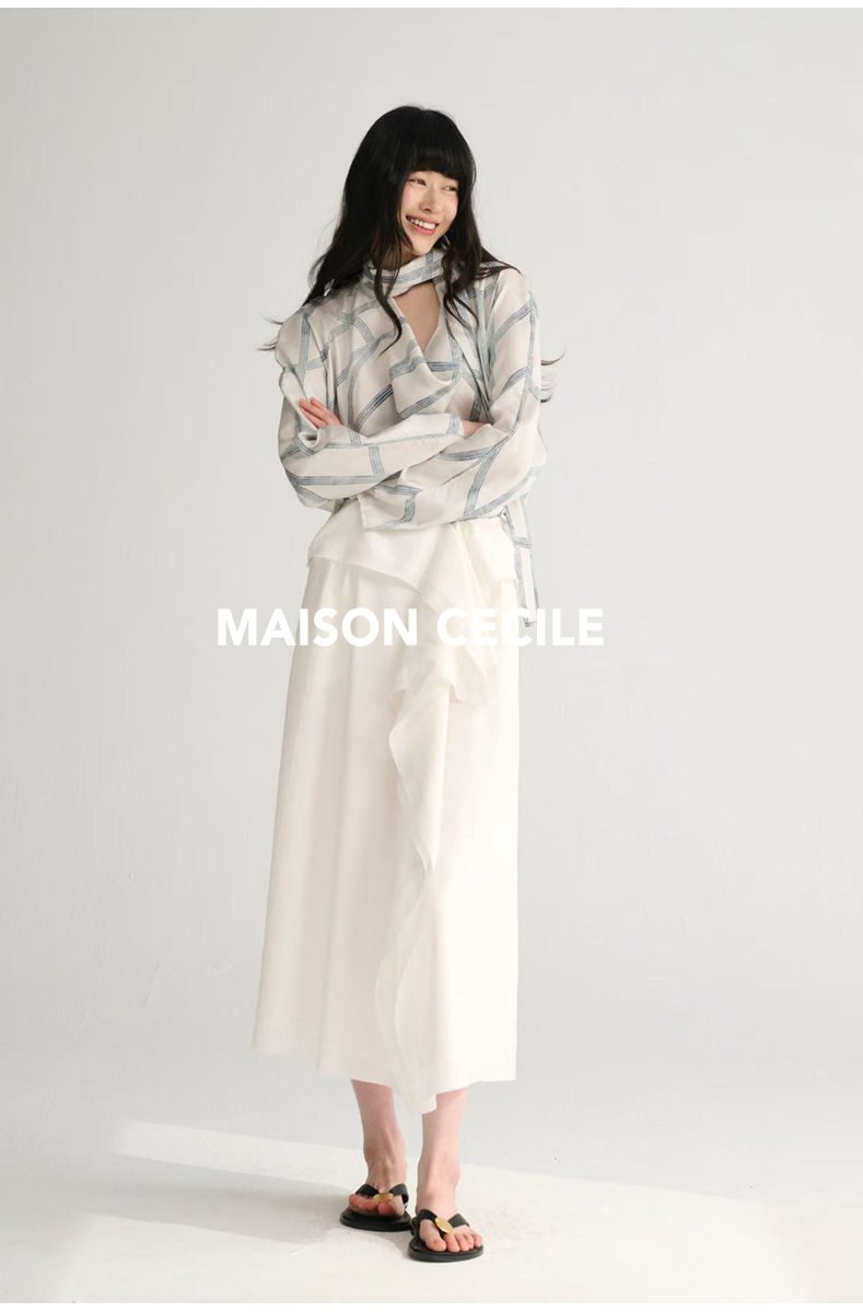 MAISON CECILE 法式极简立体荷叶边设计感开衩半身裙长款