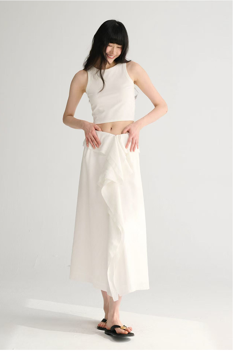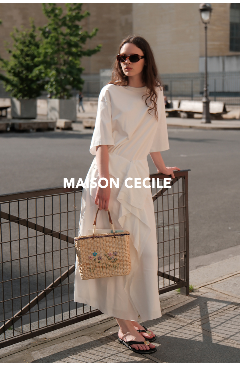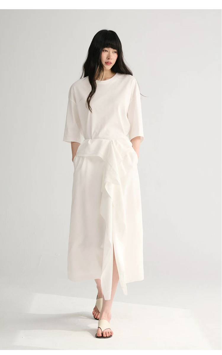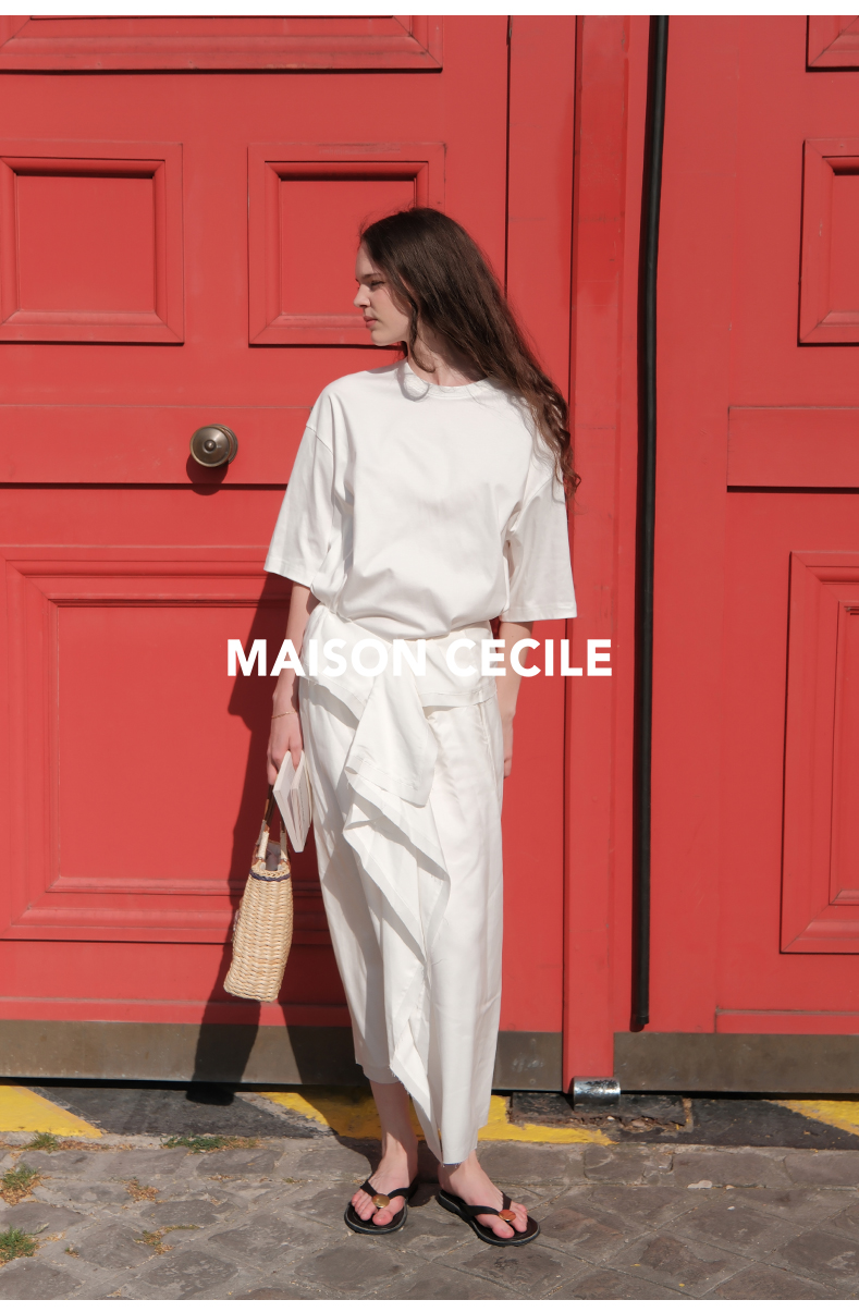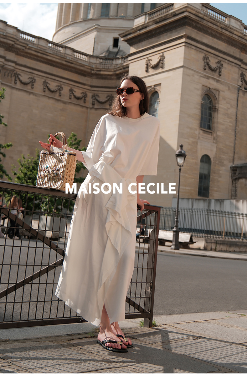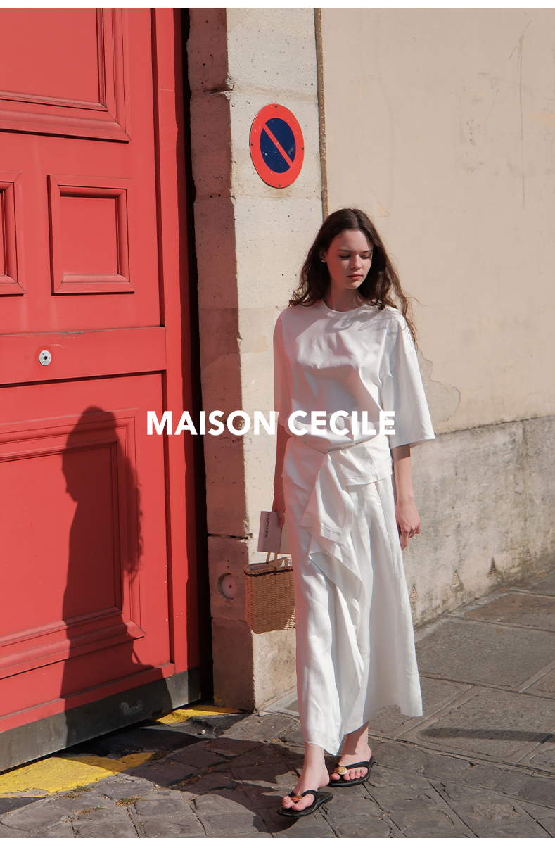 MAISON CECILE 法式极简立体荷叶边设计感开衩半身裙长款